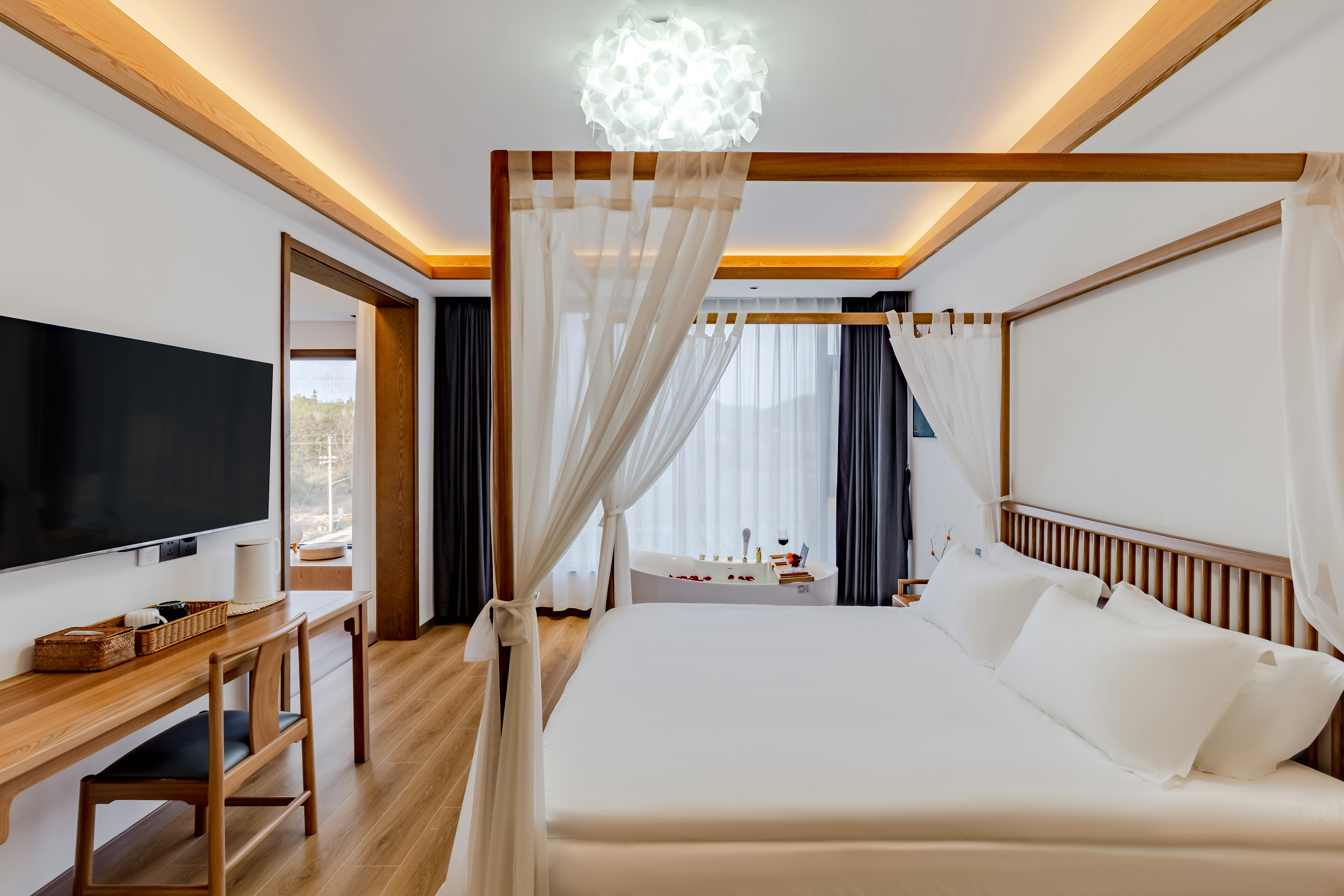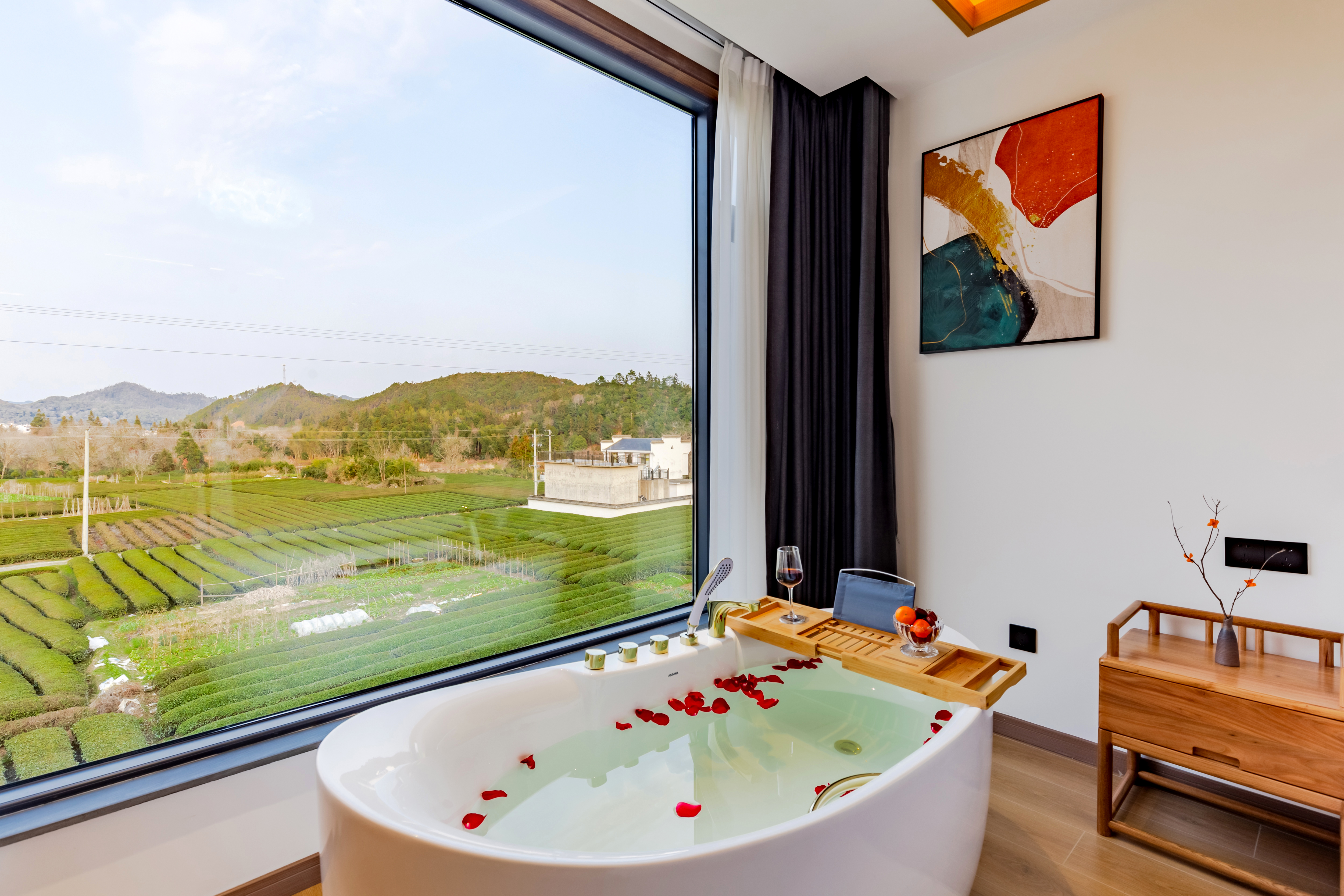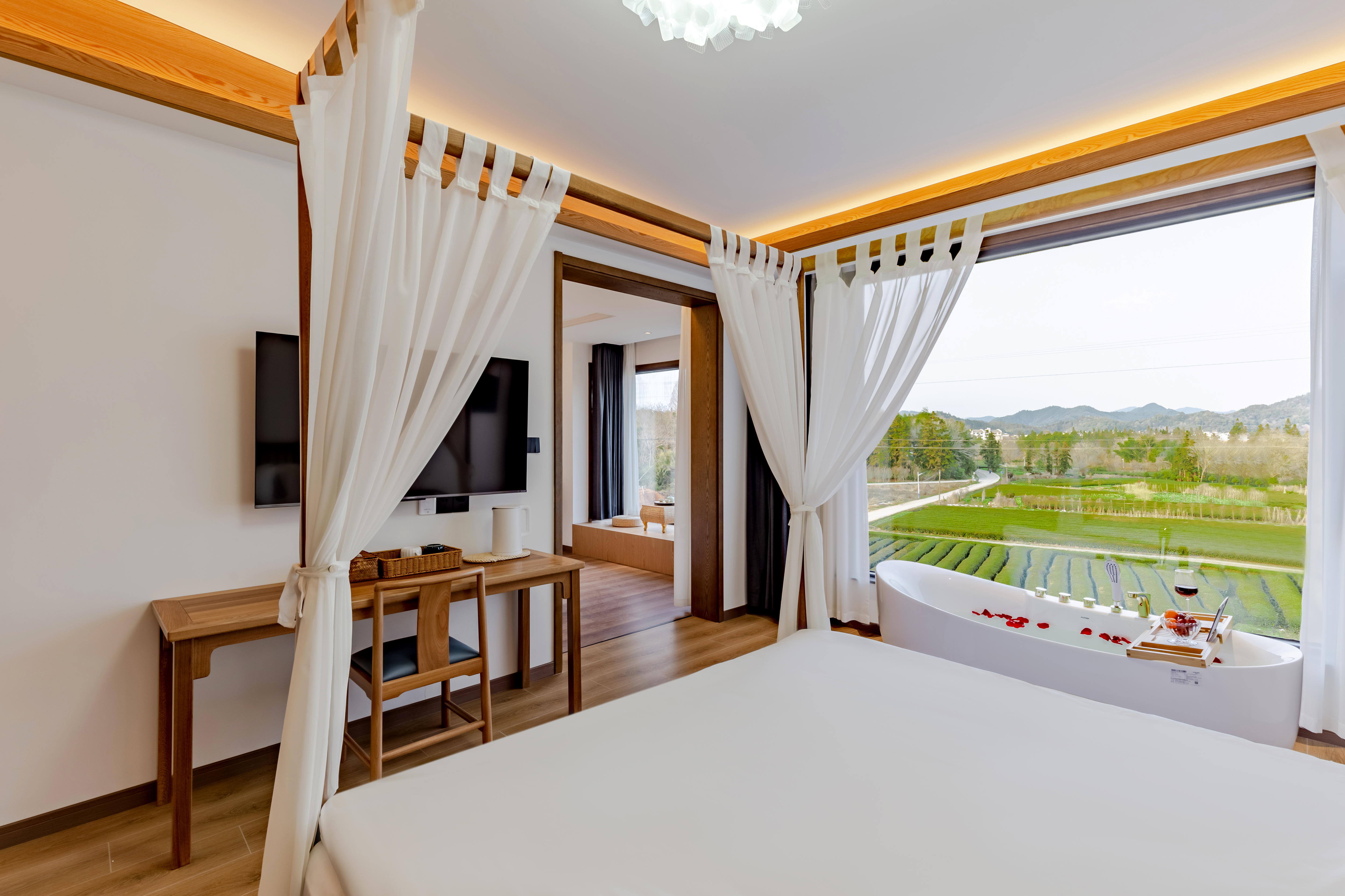 Moment Shadow Twin Suite With Dual Panoramic Floor-to-Ceiling Windows, Trendy Private Hot Spring, And Unmatched Tea Plantation&Cloud Sea Views