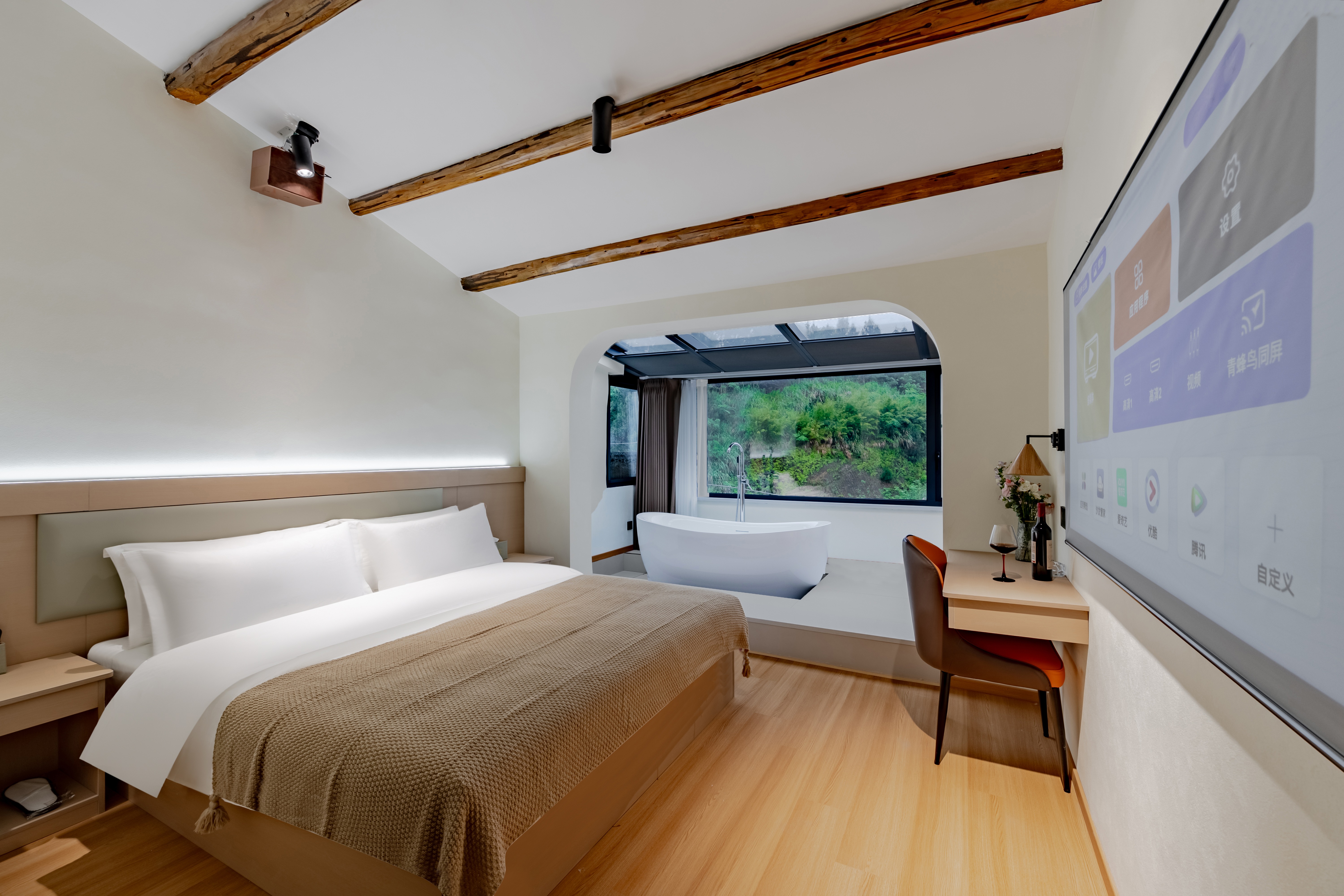 Leisure Two-Bedroom Scenic Projector Suite (Projector With 100-Inch Screen + Tub + Scenic Terrace)