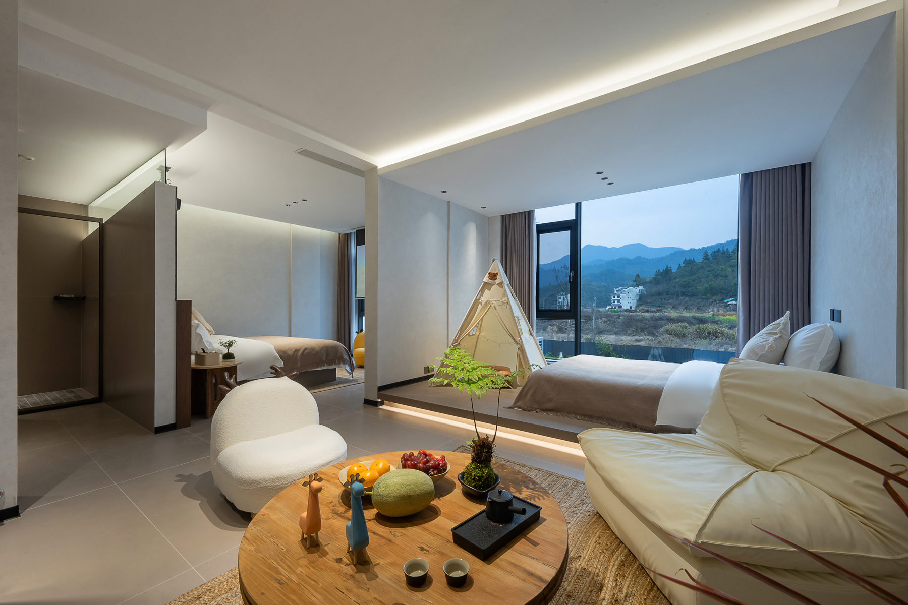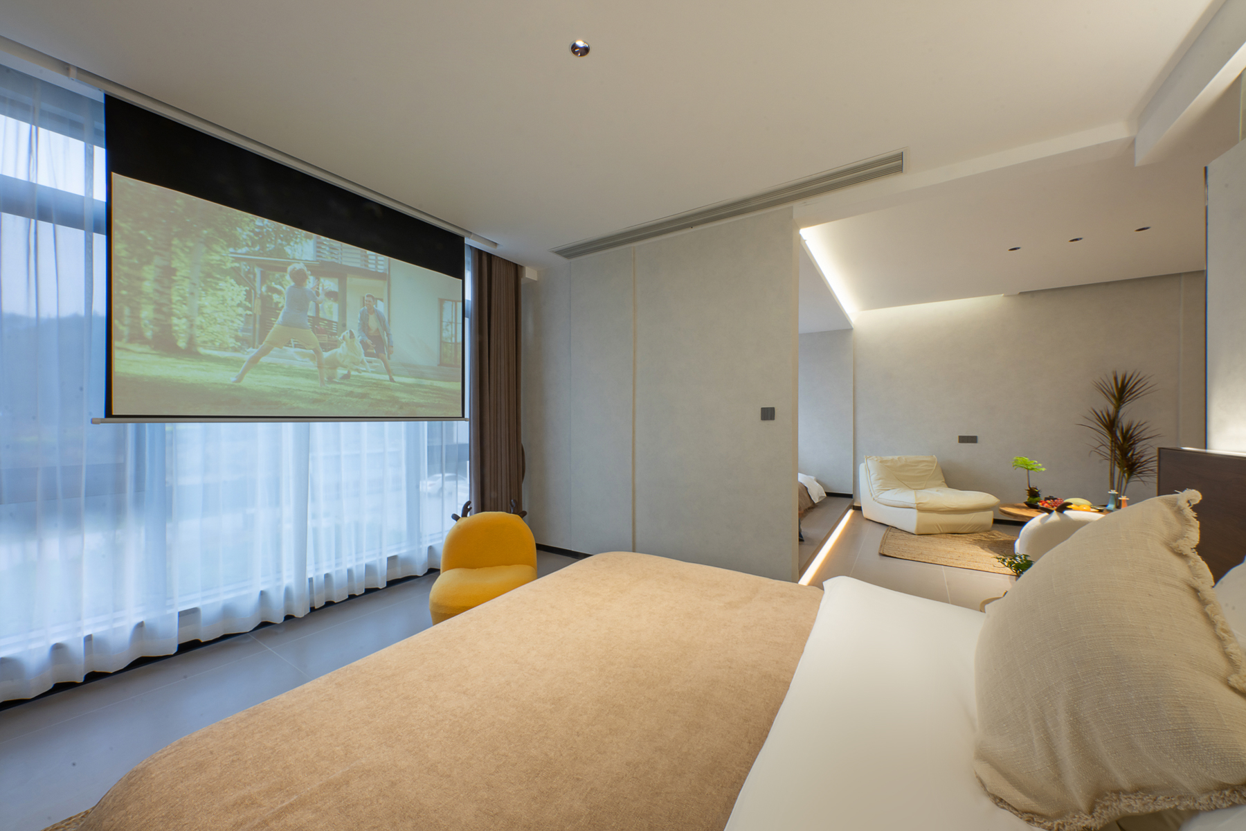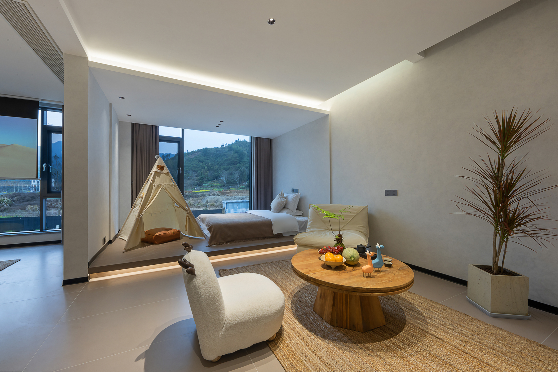 Mufeng Family Scenic Room With Projector Screen, Smart Toilet, Smart Makeup Mirror, Automatic Curtains, Comfortable Sofa And Children's Tent