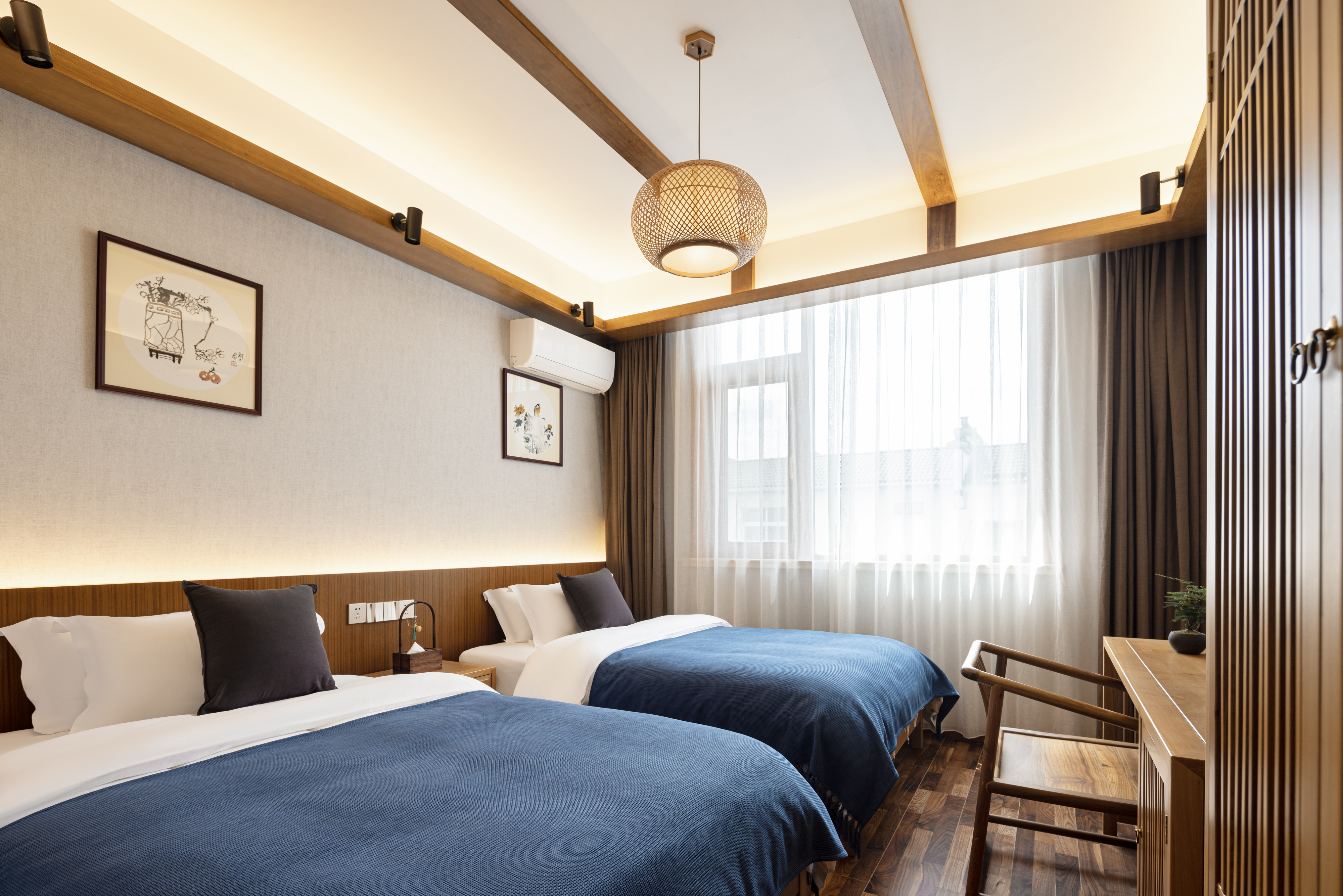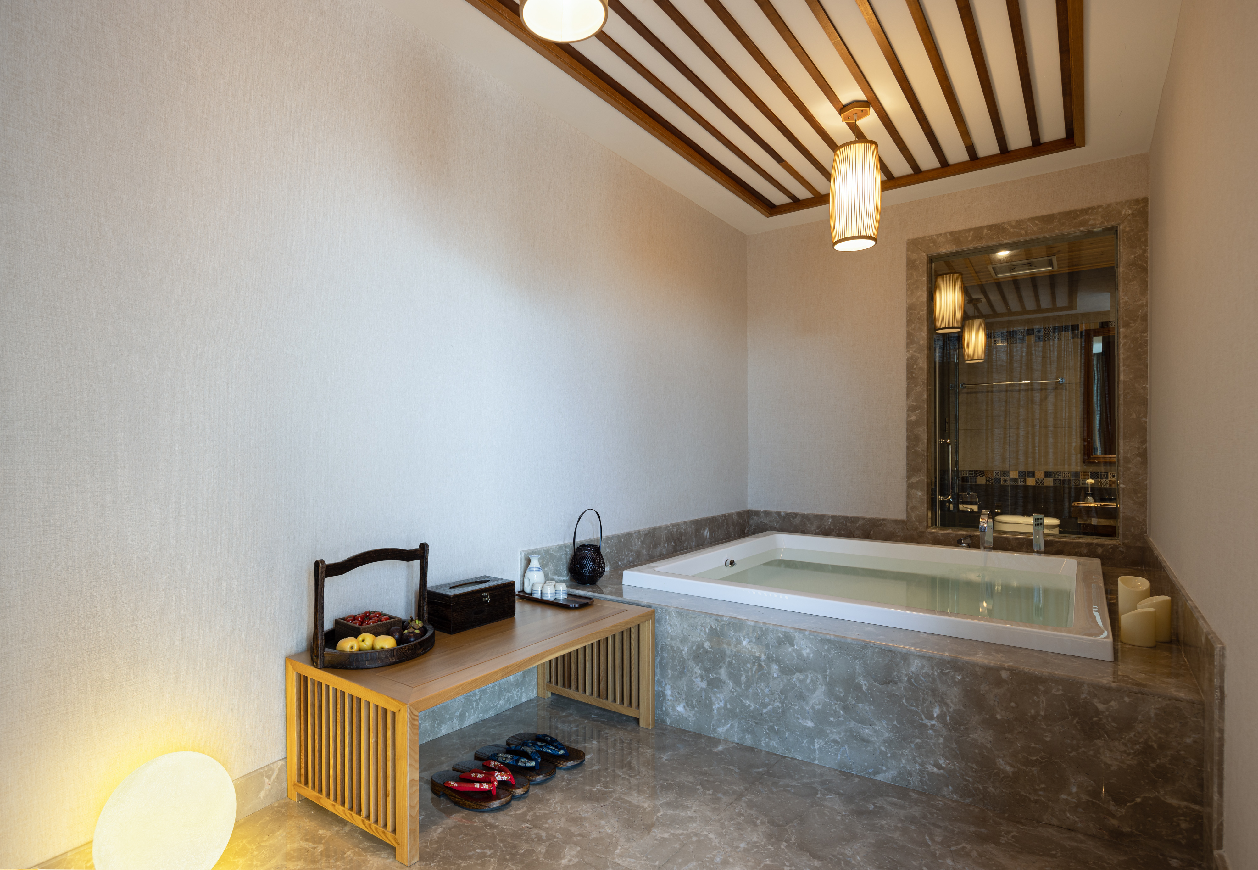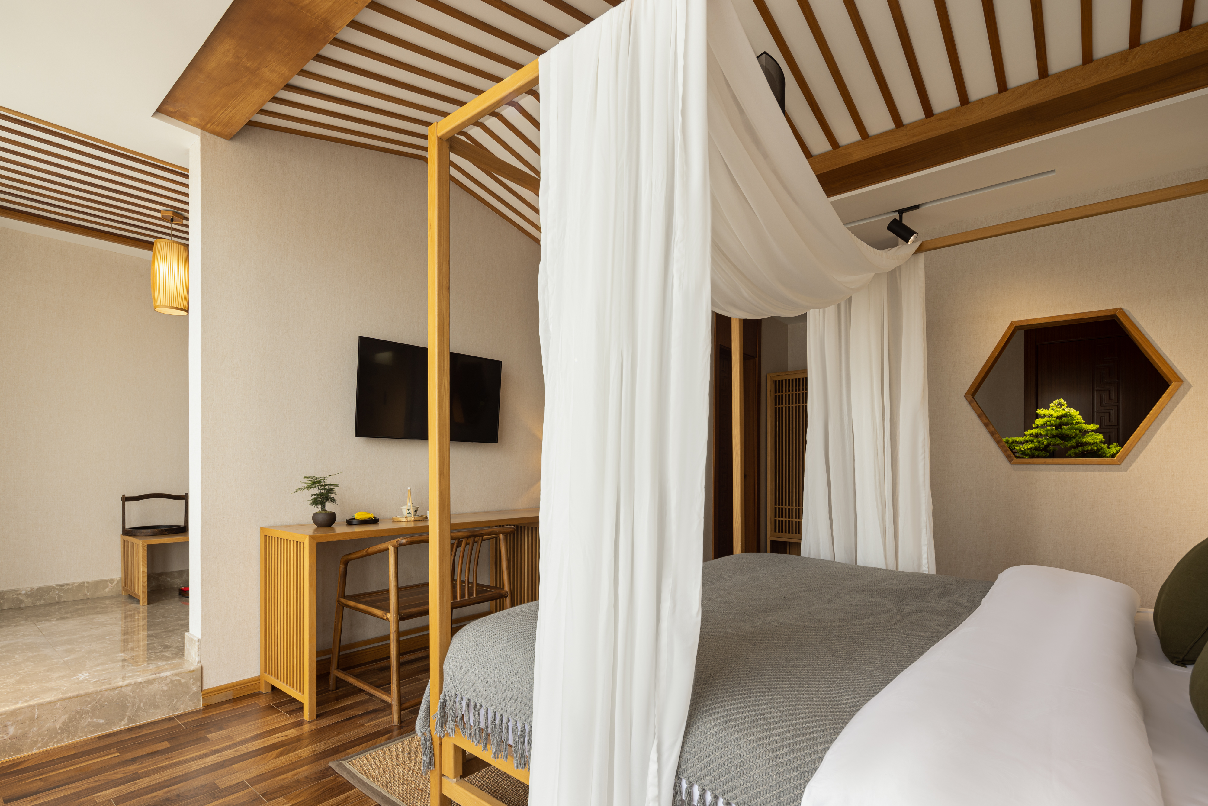 Fangtang Light Luxury Double Bed Room With Tub And Chinese Style Bed Canopy And Spacious