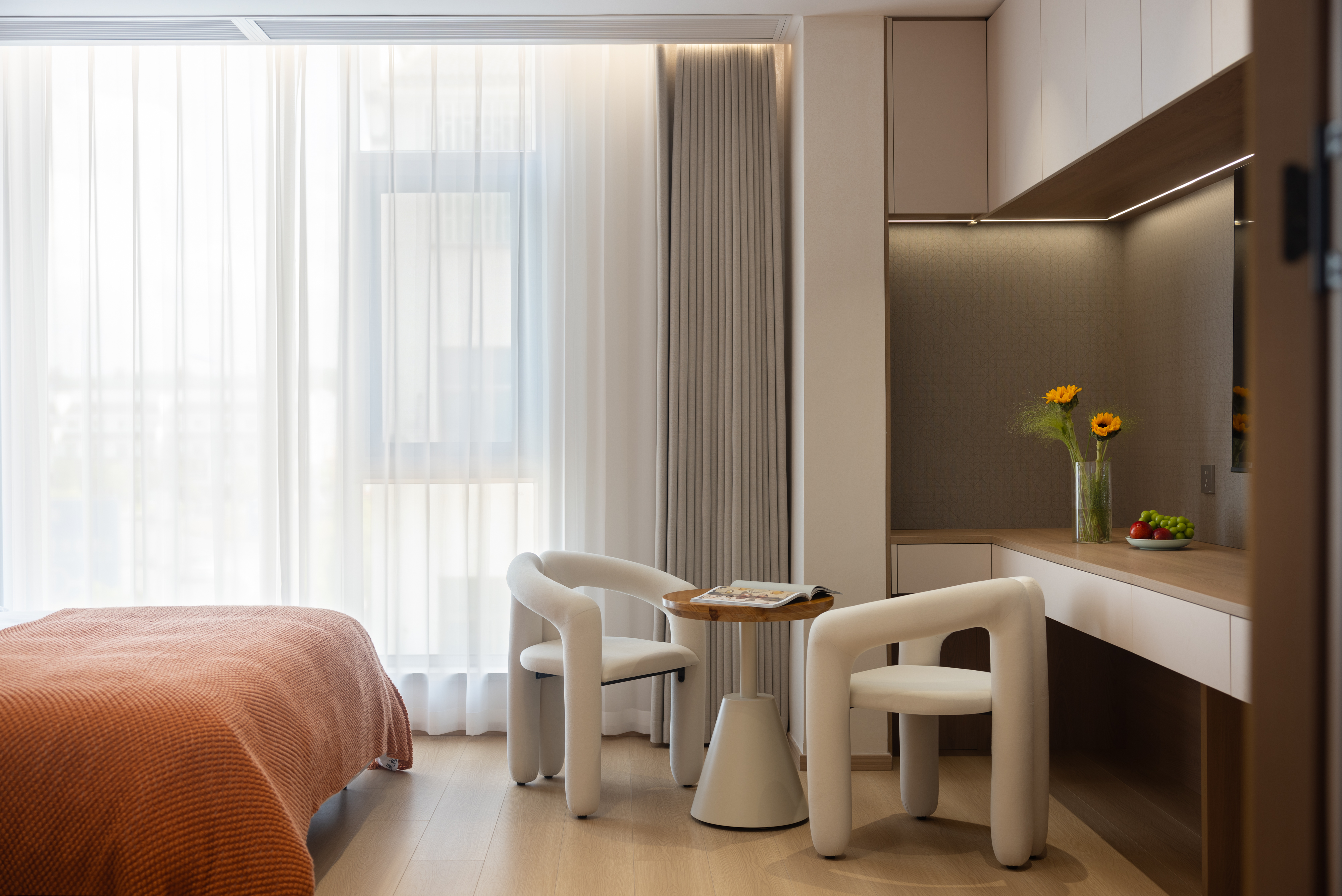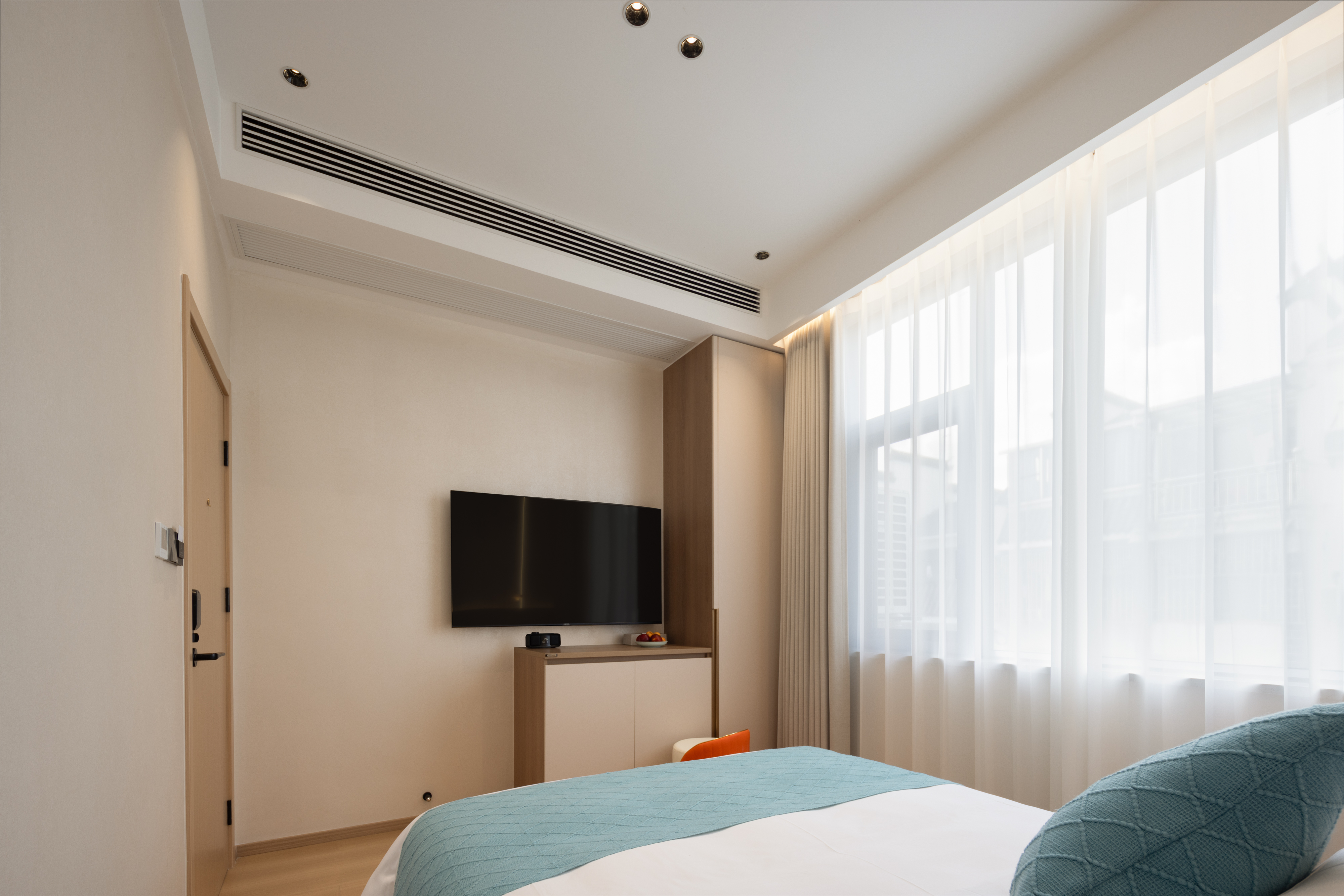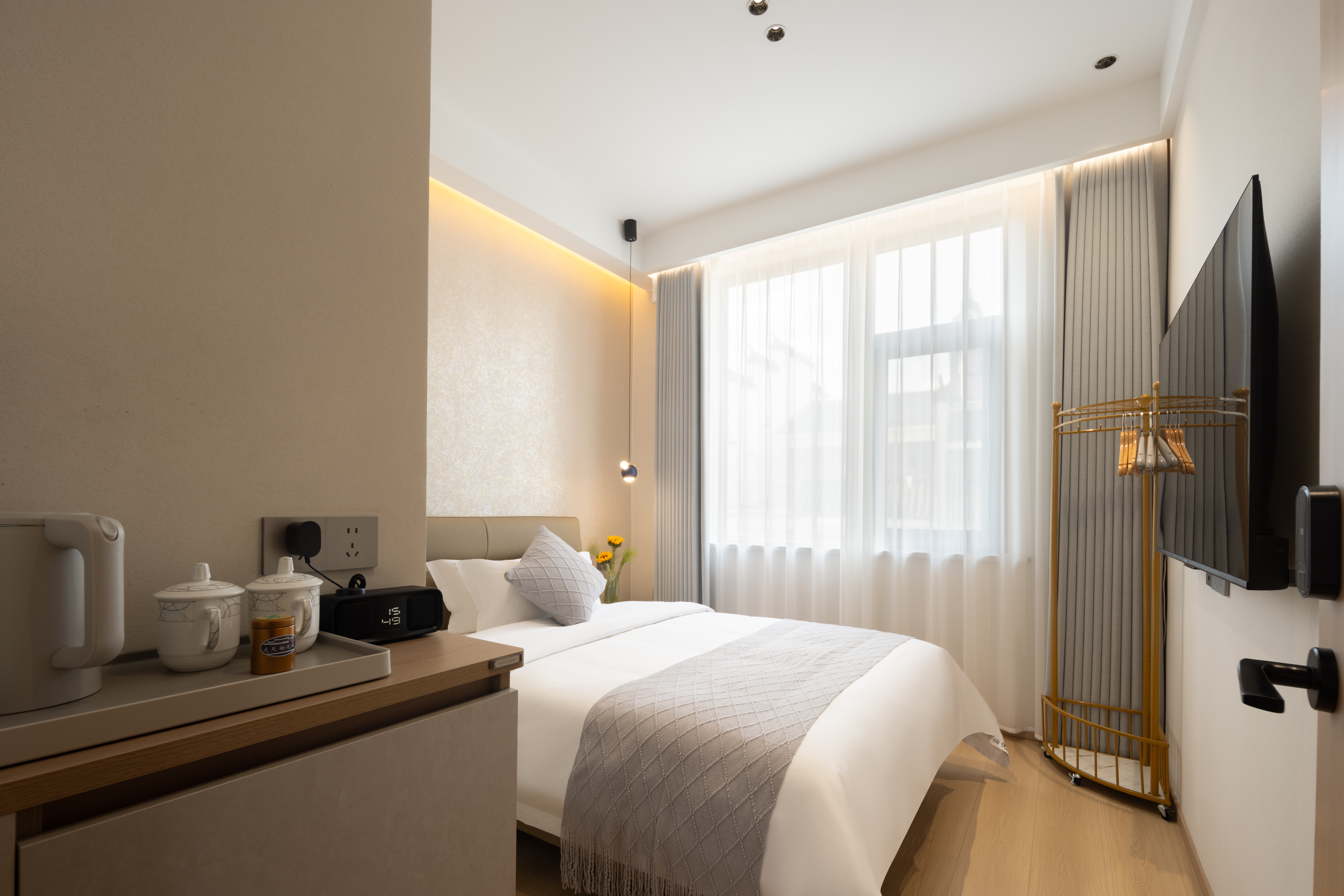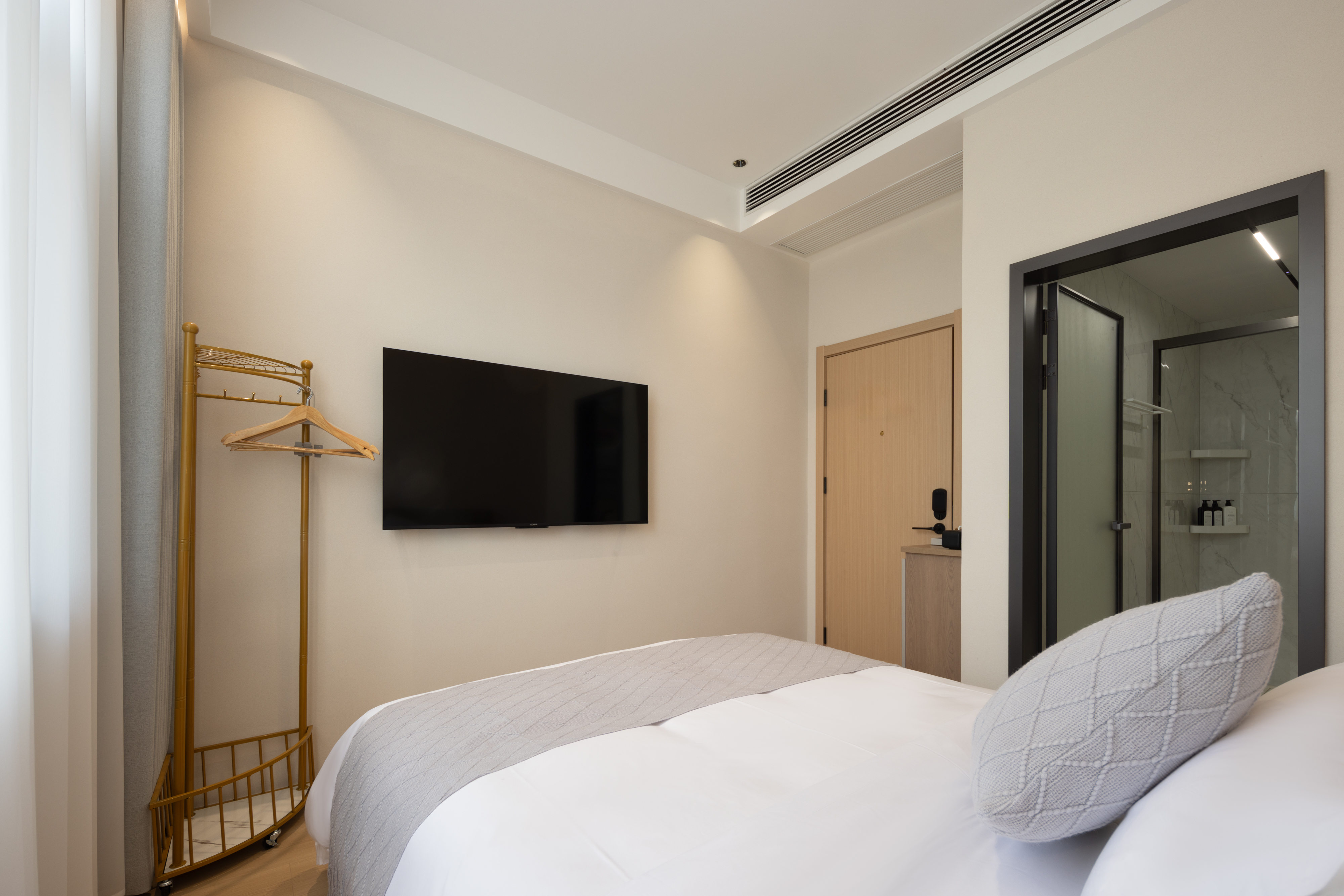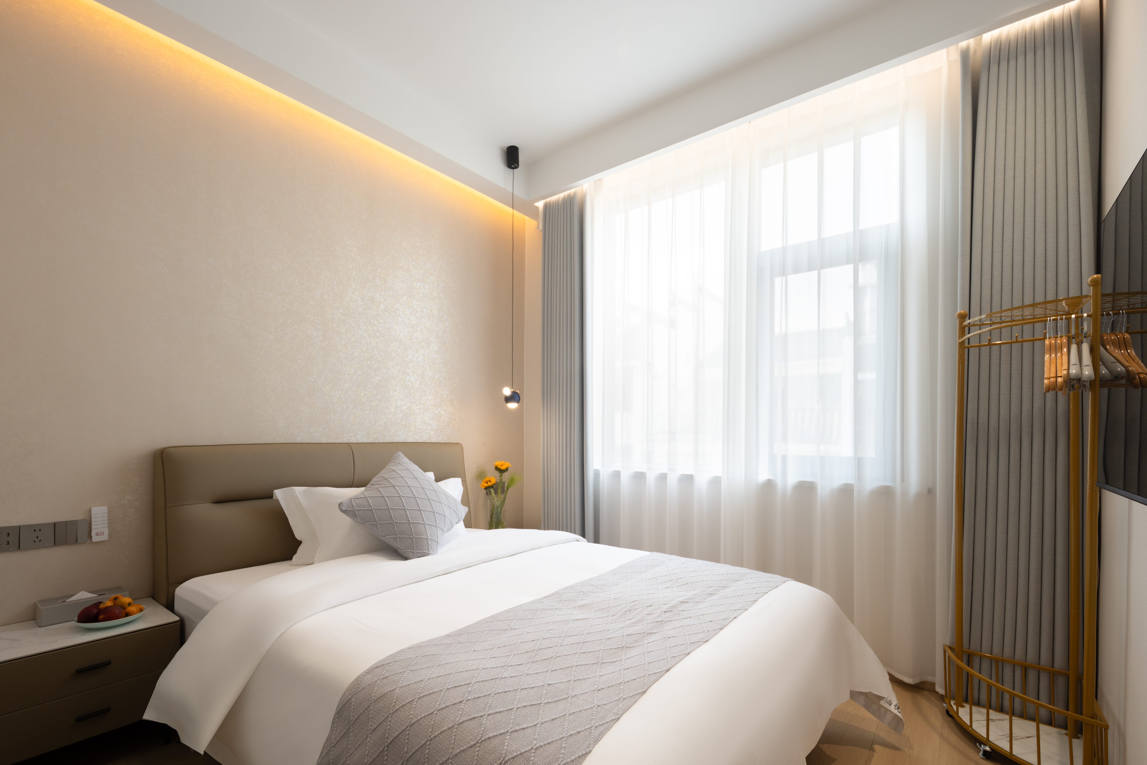 Qi Yun City-View Twin Room | Smart Guest Control + 55-Inch Tv + Branded Genuine Leather Bed + Latex Mattress