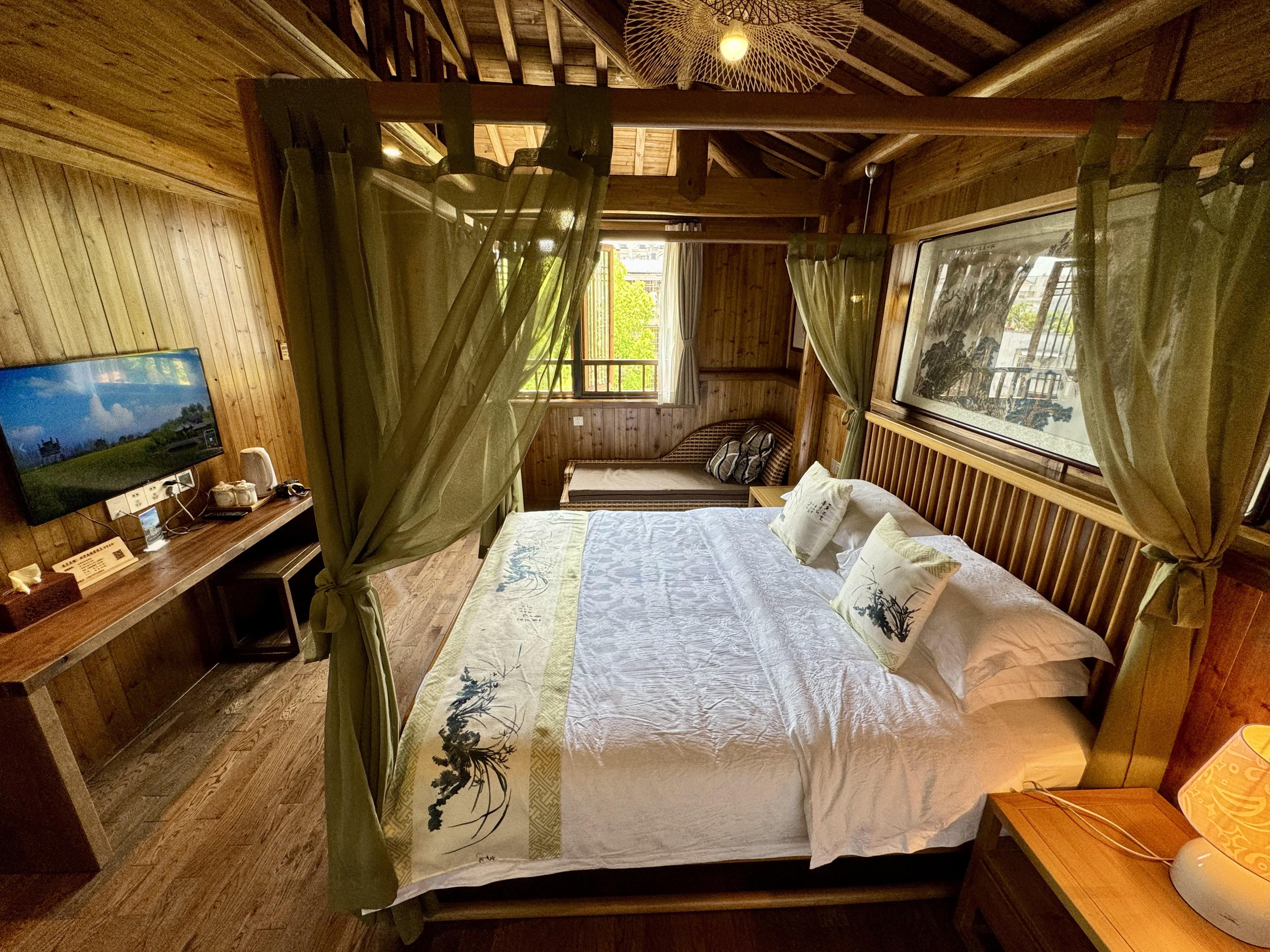 Elegant Wooden Cabin Double Bed Room With Tea Table (Smart Toilet Seat + Whole House Water Purification + Graceful Canopy Bed)
