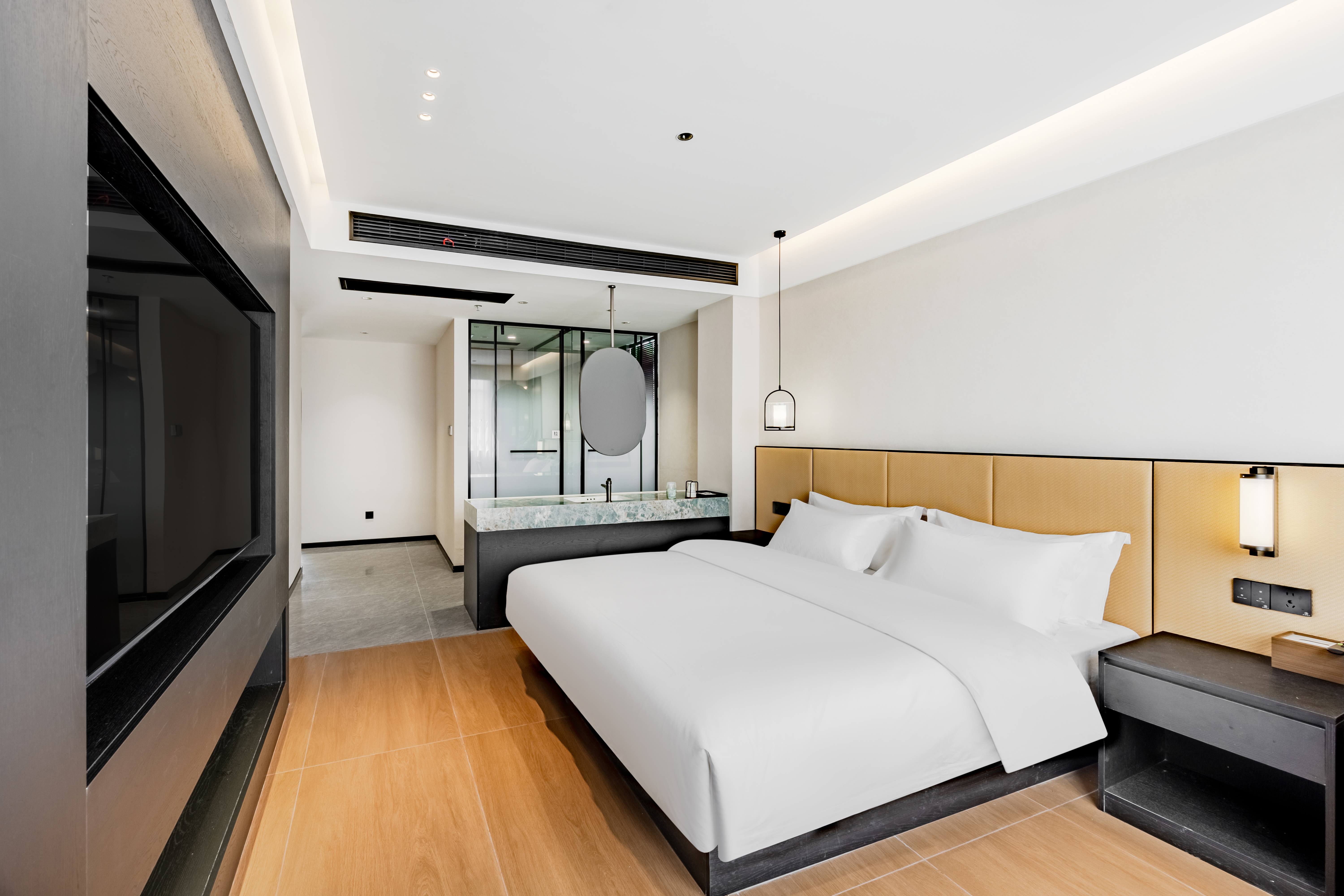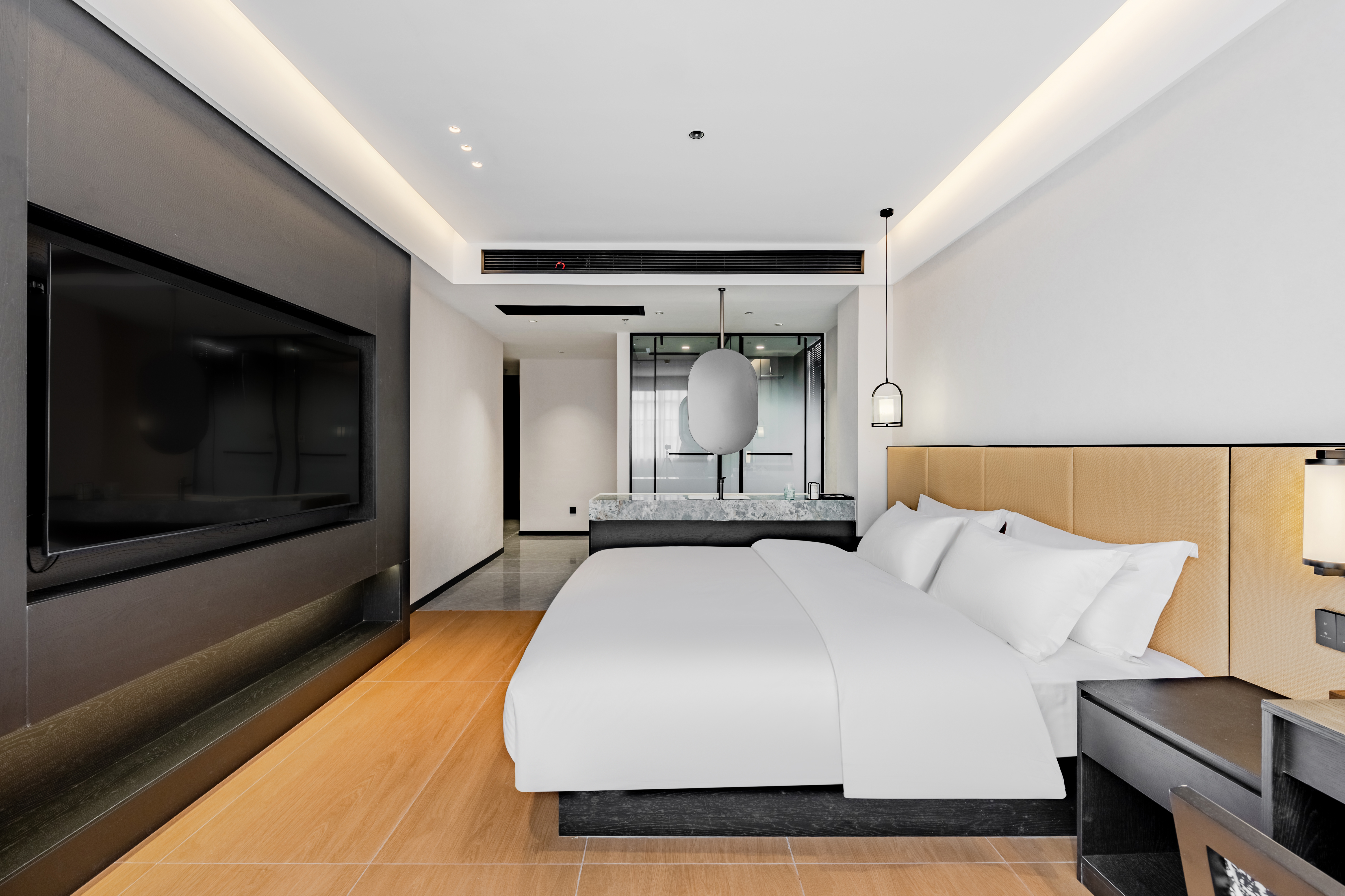 渼仑?商旅大床房『静音睡眠+65寸投屏电视+办公桌椅』