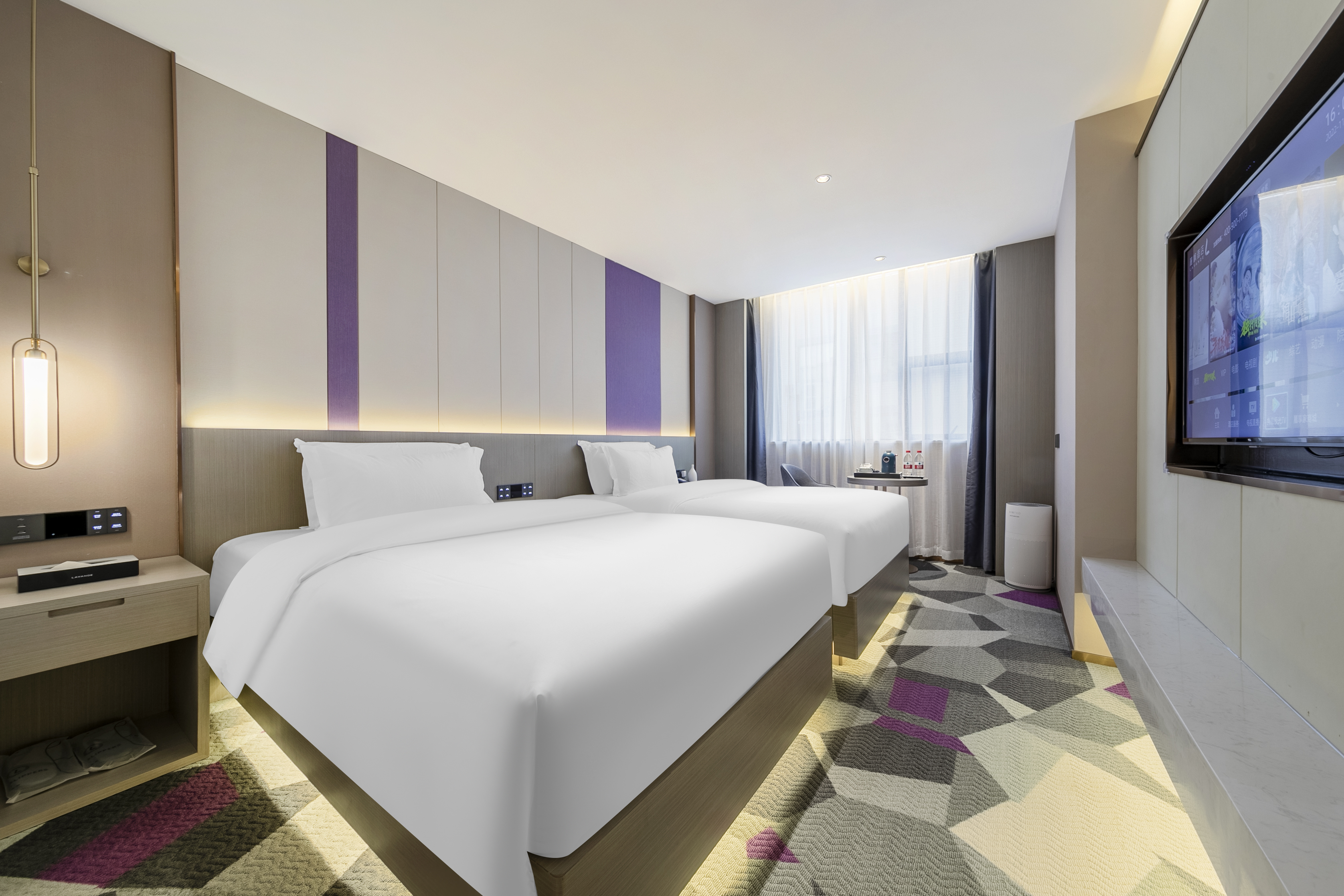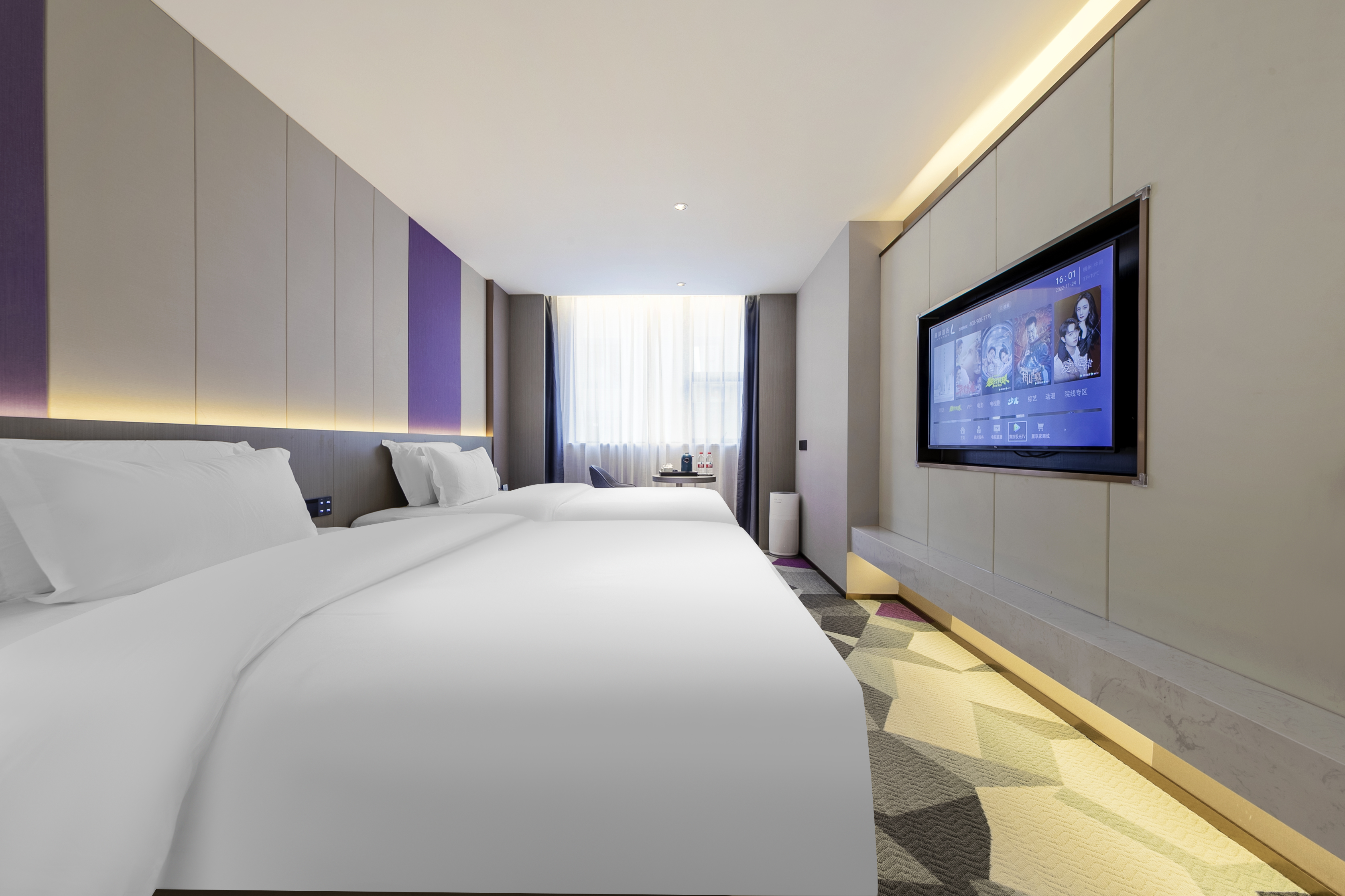 純凈雙床房(慕思深度睡眠|記憶棉枕|50寸大投屏|藍牙音樂|香薰儀|空氣凈化器)