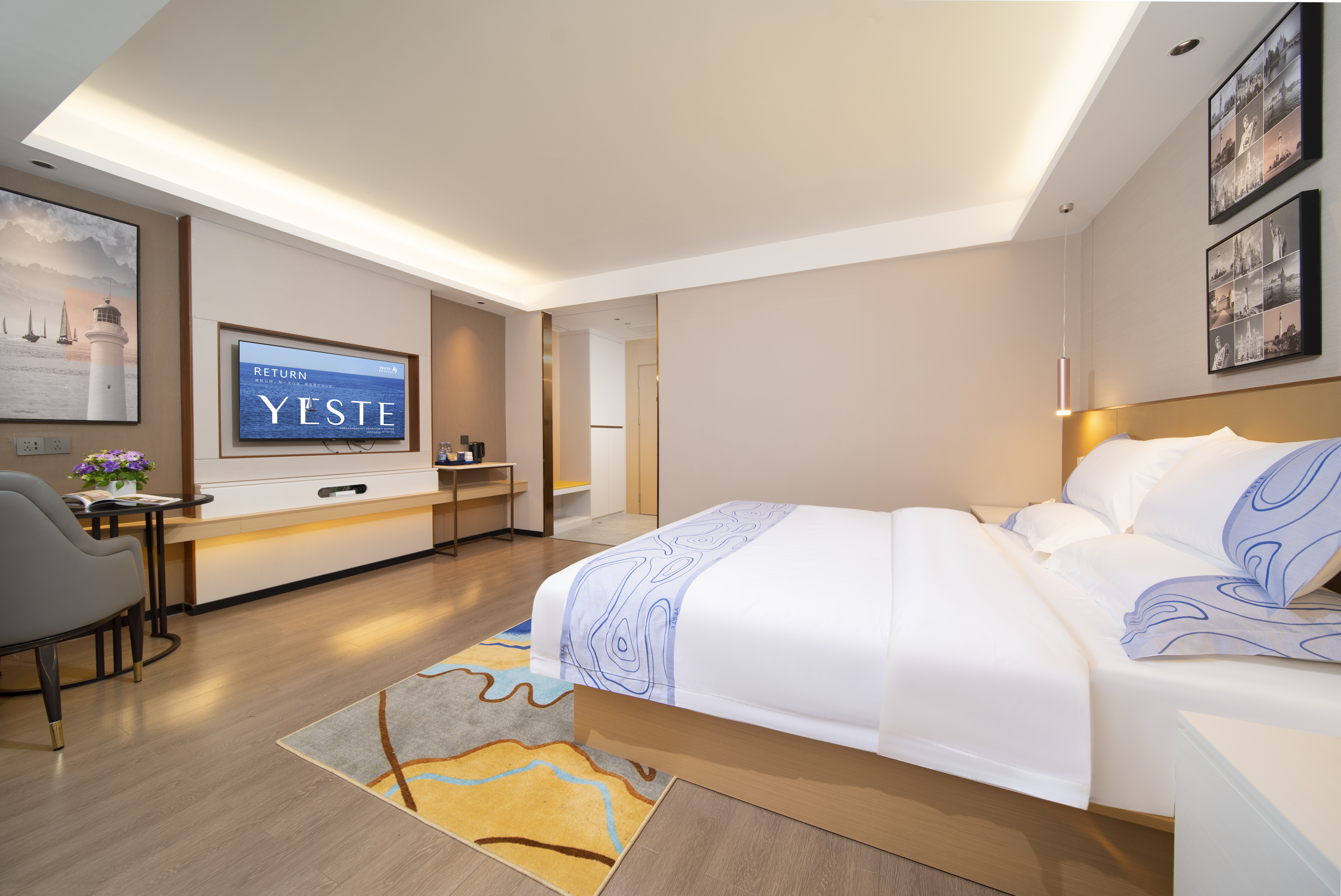 雅致大床房|智能客控|乾湿分离|宽敞房间|休闲桌