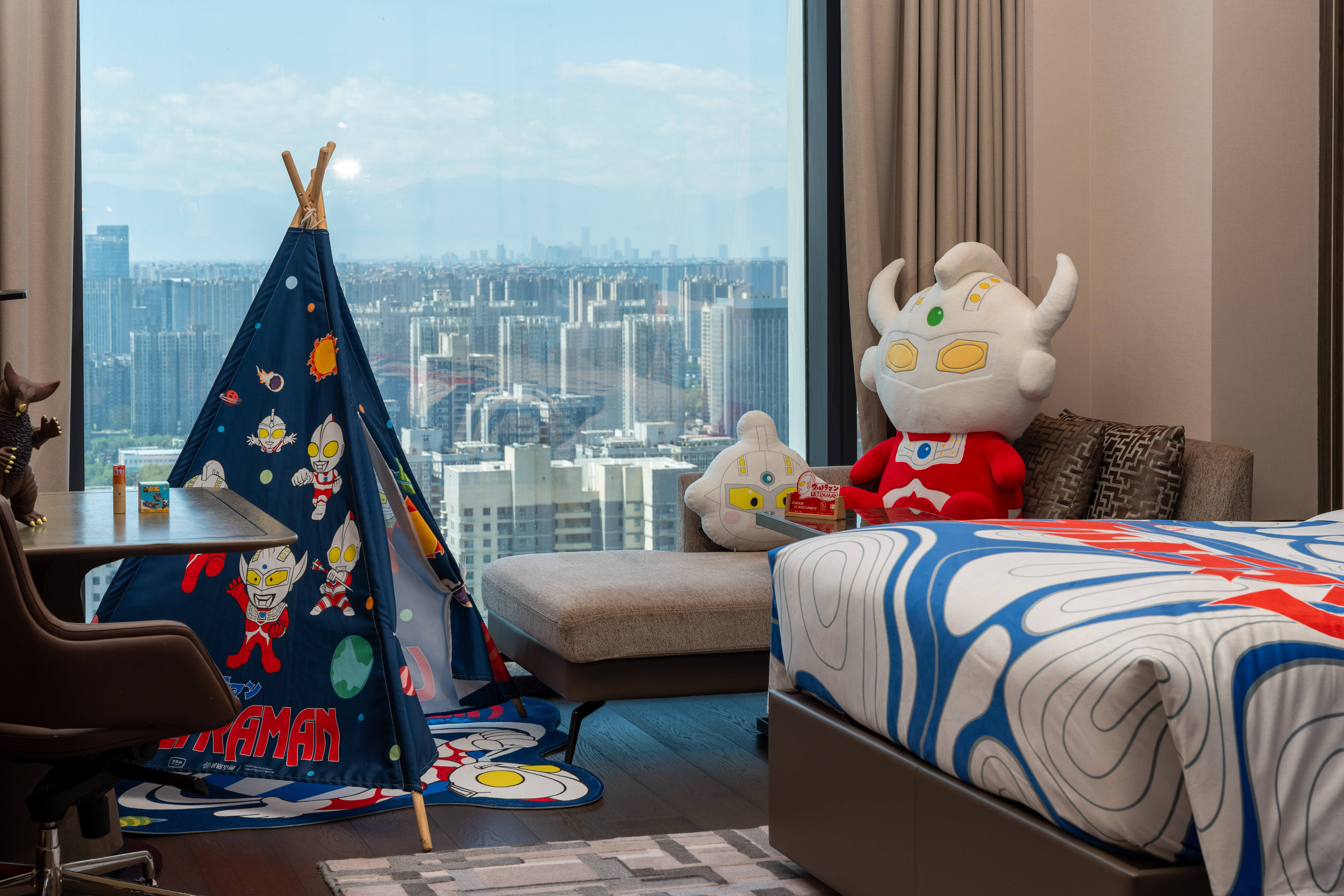 奥特曼主题双床 | 高空180度城景 +童趣帐篷+玩偶