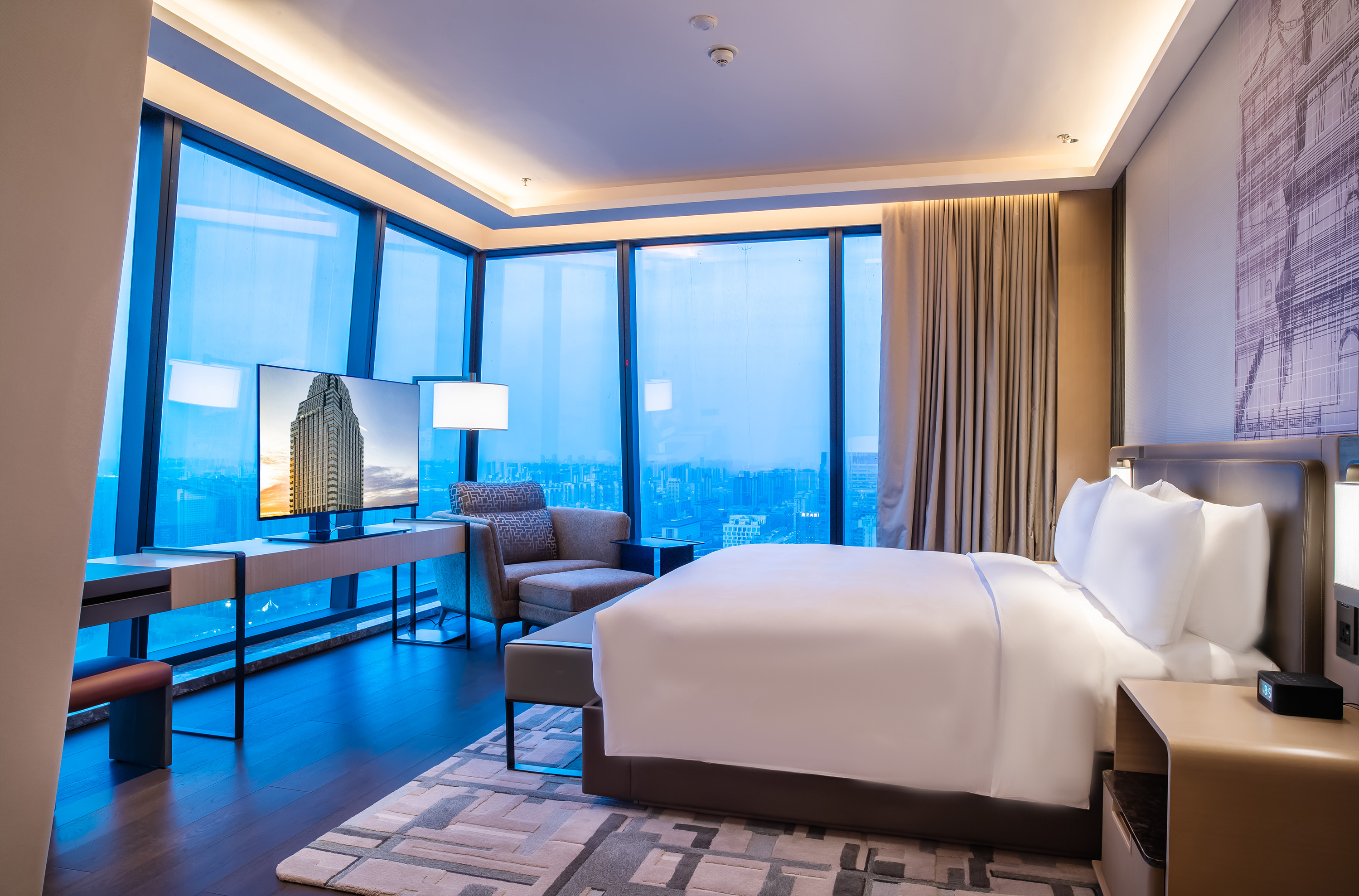 行政全景大床房-270°全景落地窗高空落日晚霞