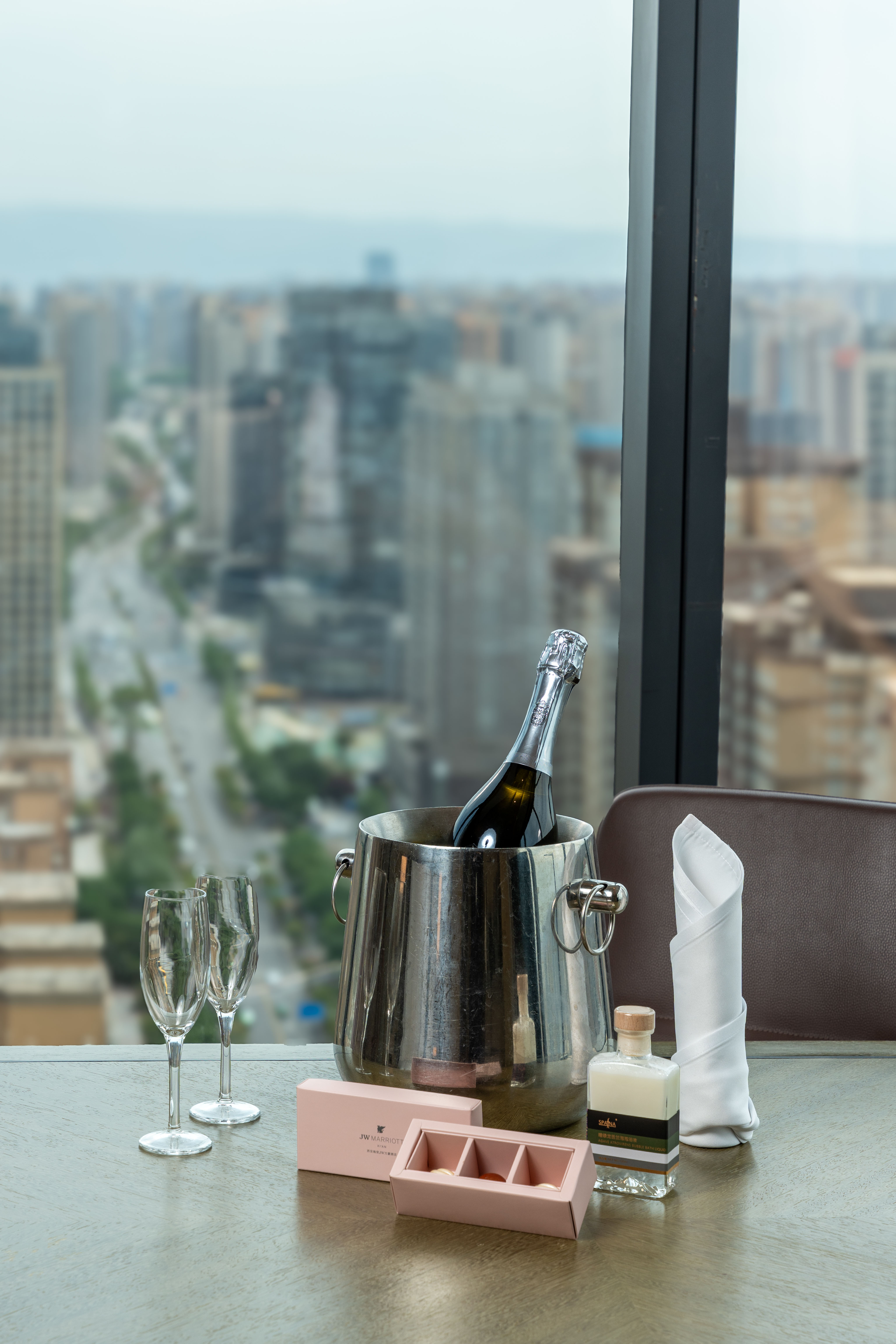 180度落地窗俯瞰璀璨之夜高空双床房