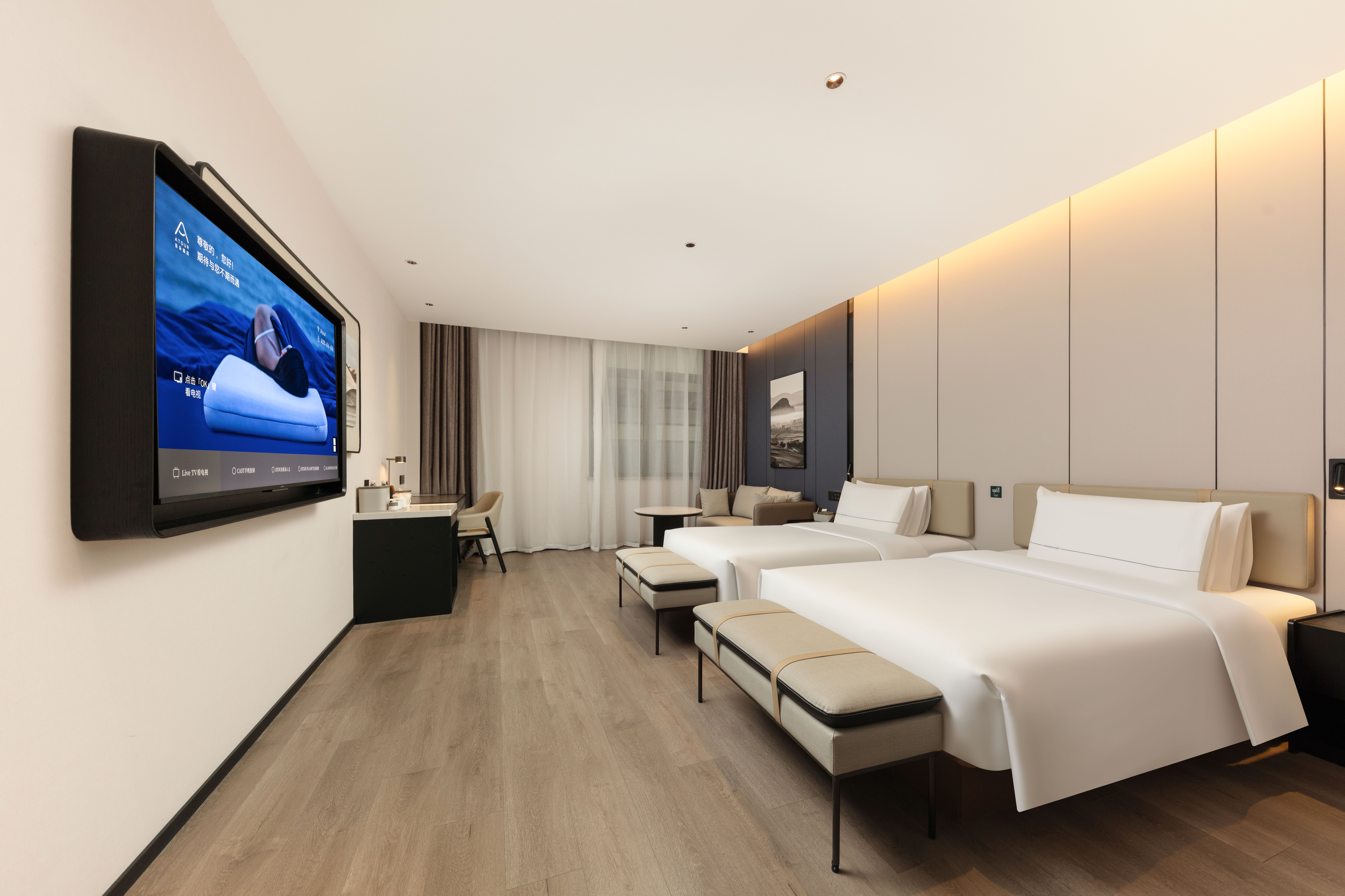 尊享双床房【亚朵深睡床品+65寸投屏电视+Mini冰箱】