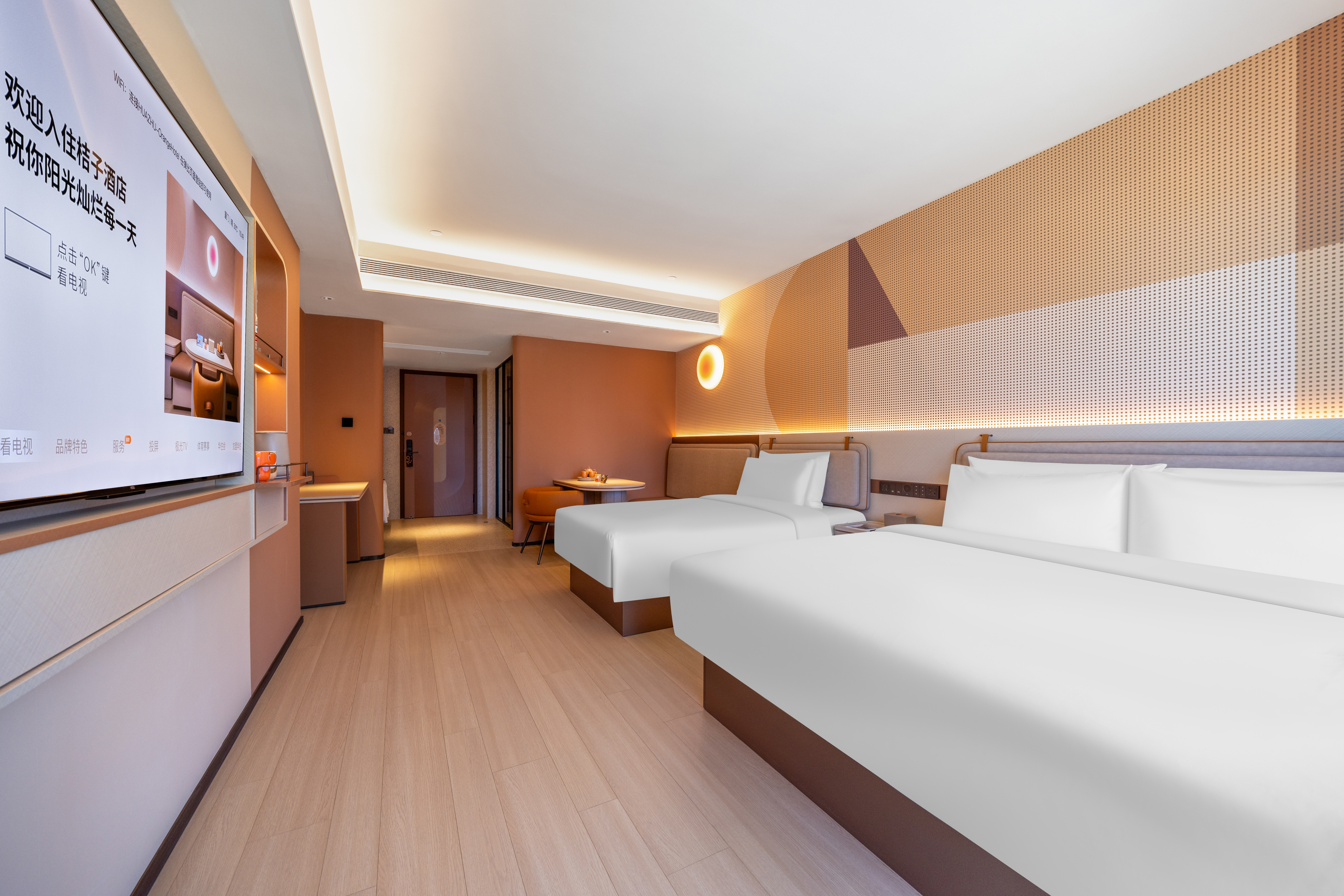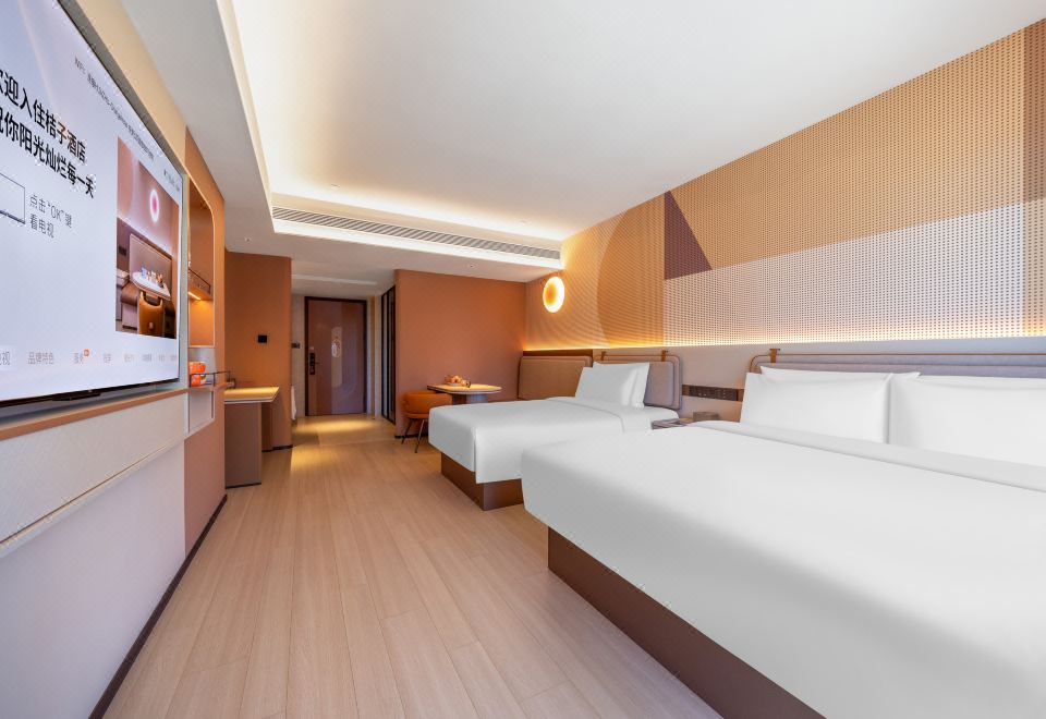 豪华家庭房(65寸电视投屏+1大1小床+全景落地窗)