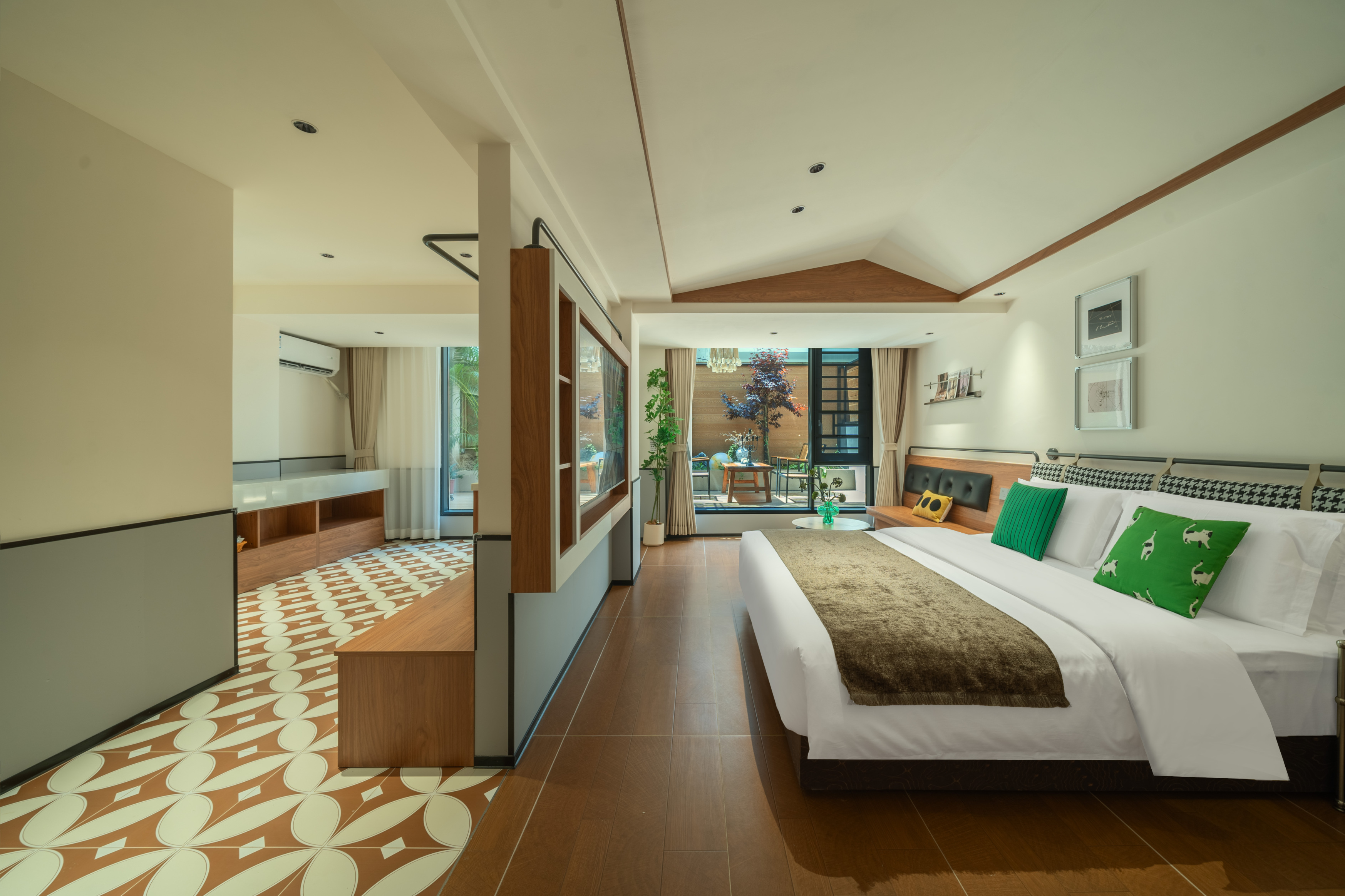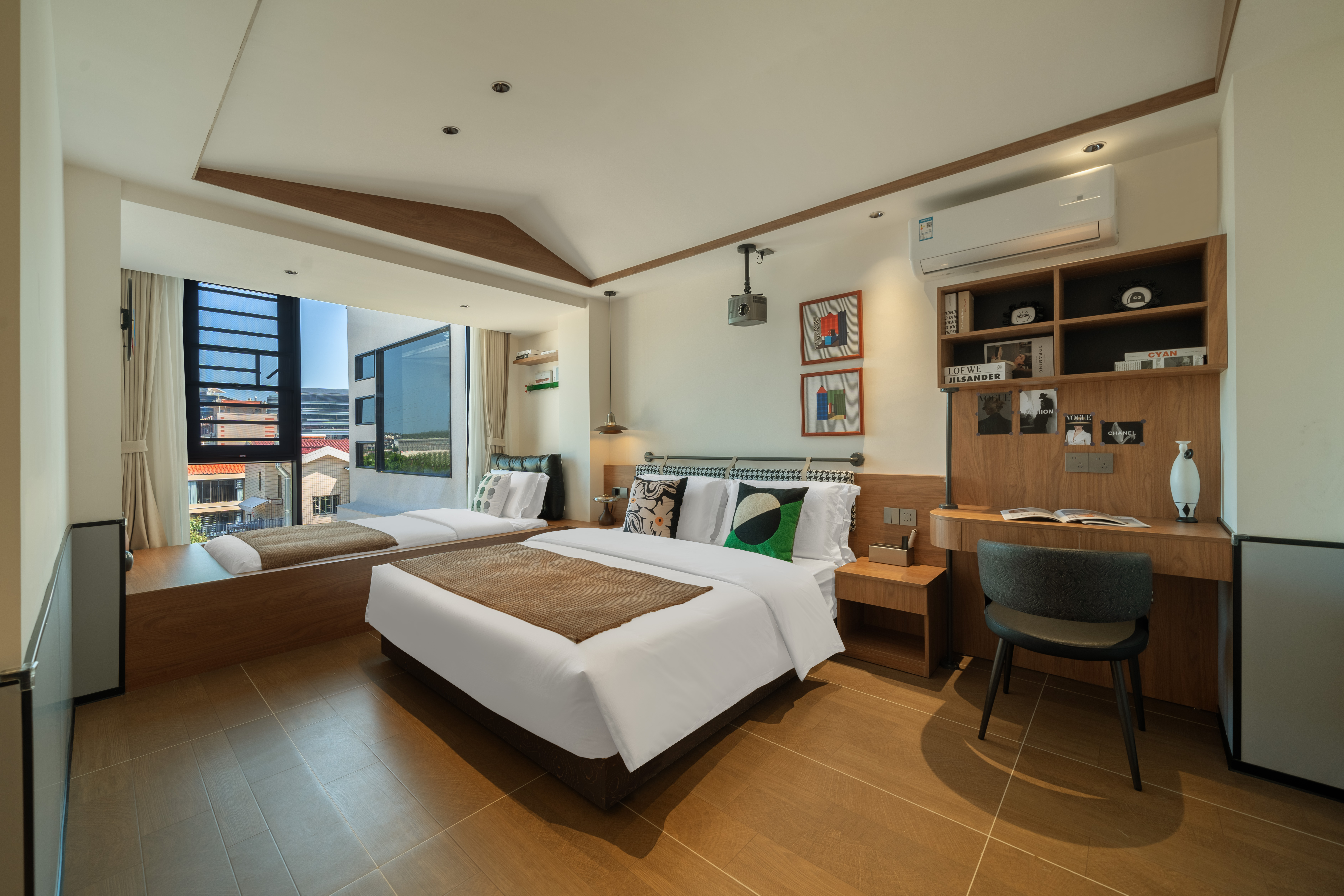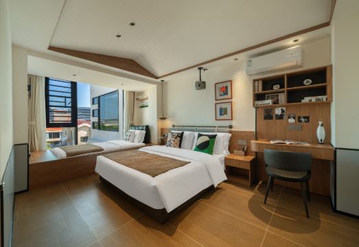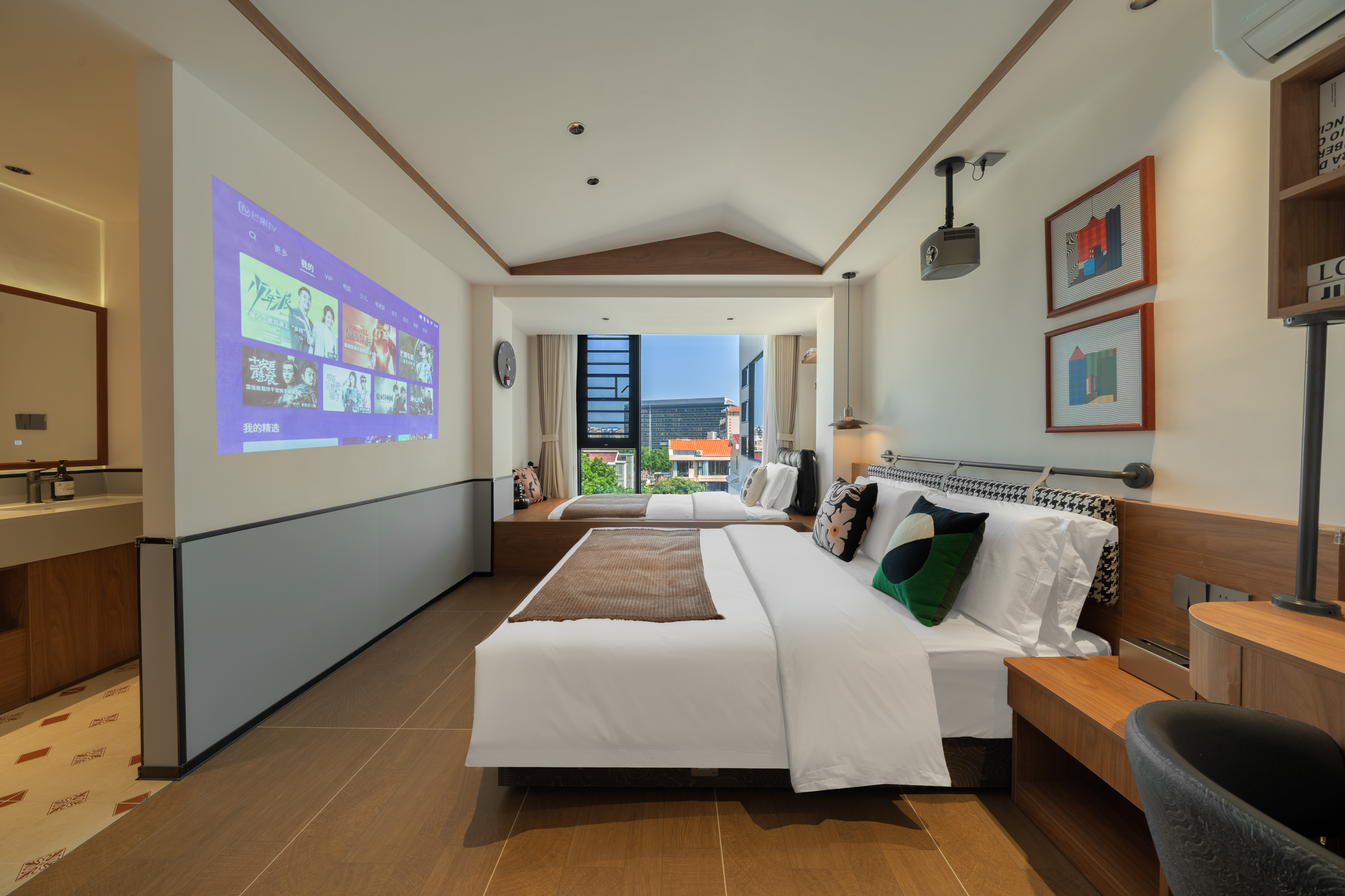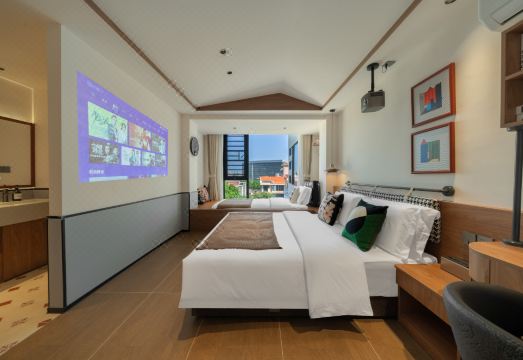 Garden閲山-榻榻米双床房(记忆床垫+巨幕投影+冰箱)