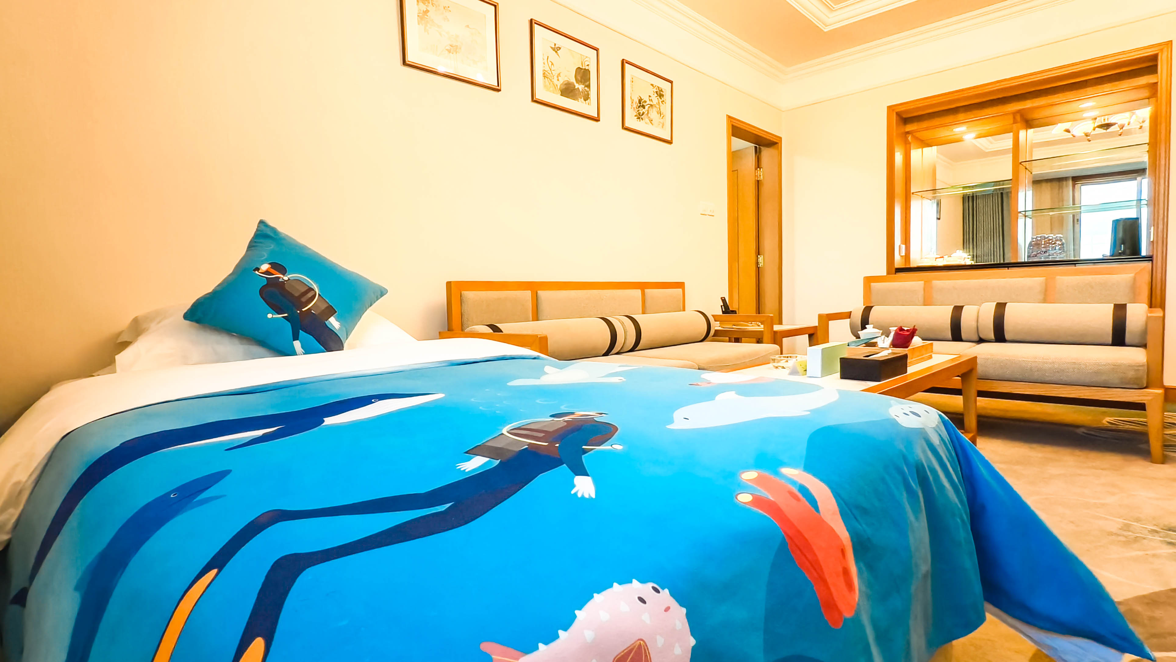 海底小纵队主题房(卡通布置+沙发茶几+超大洗浴间)