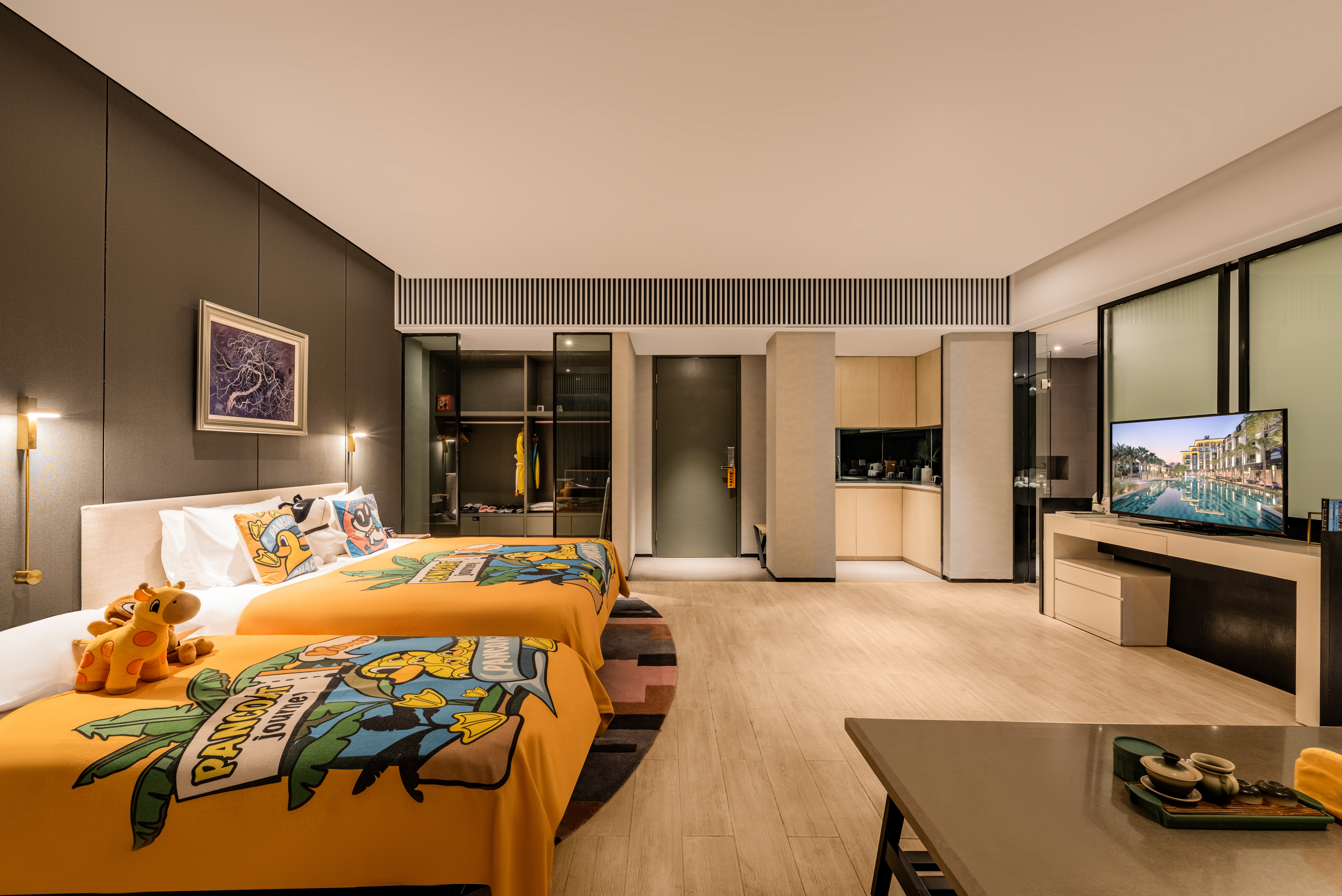 小黄鸭主题套房(双人主床加单人床+私享网红露台)