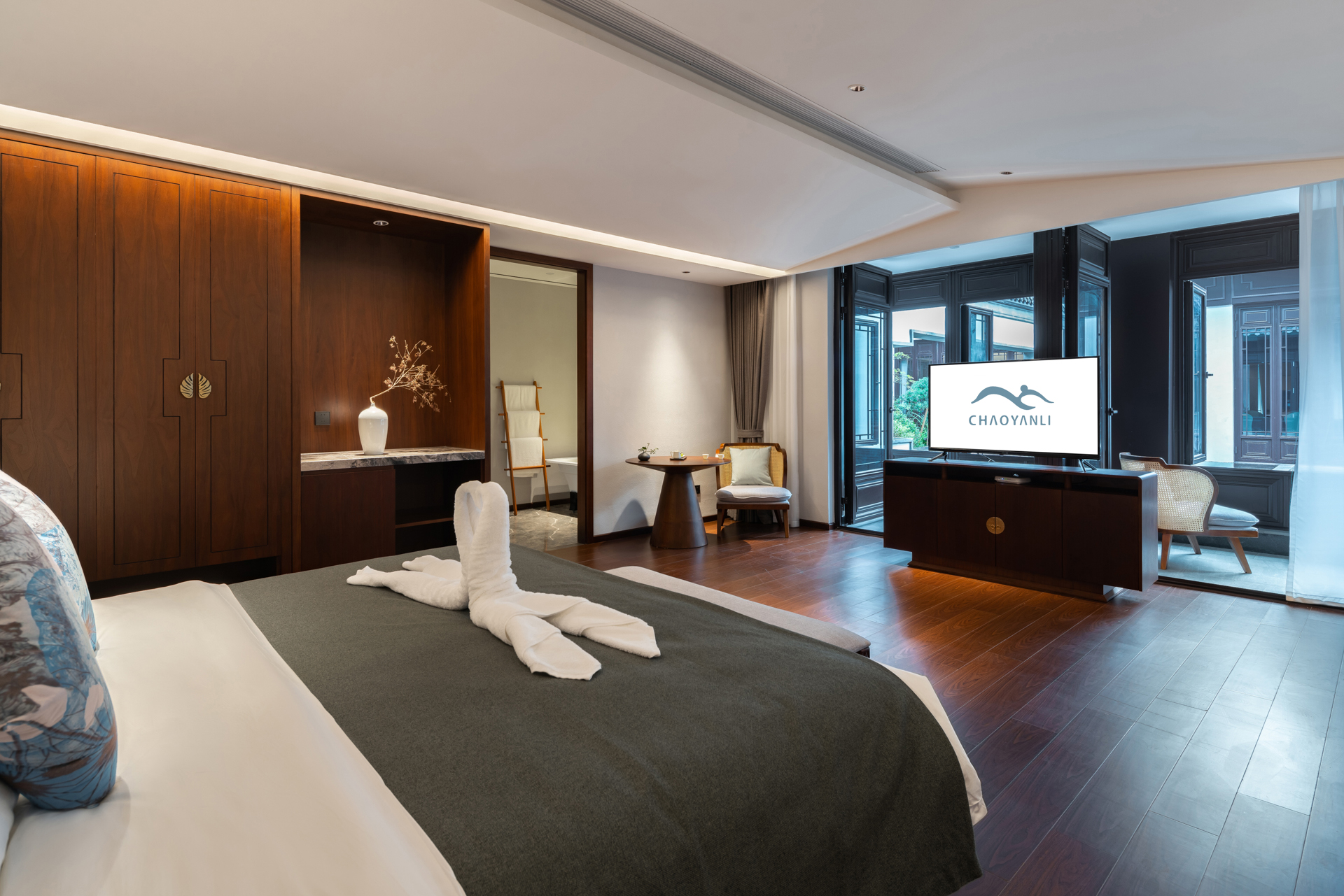 Two-bed room with creek view