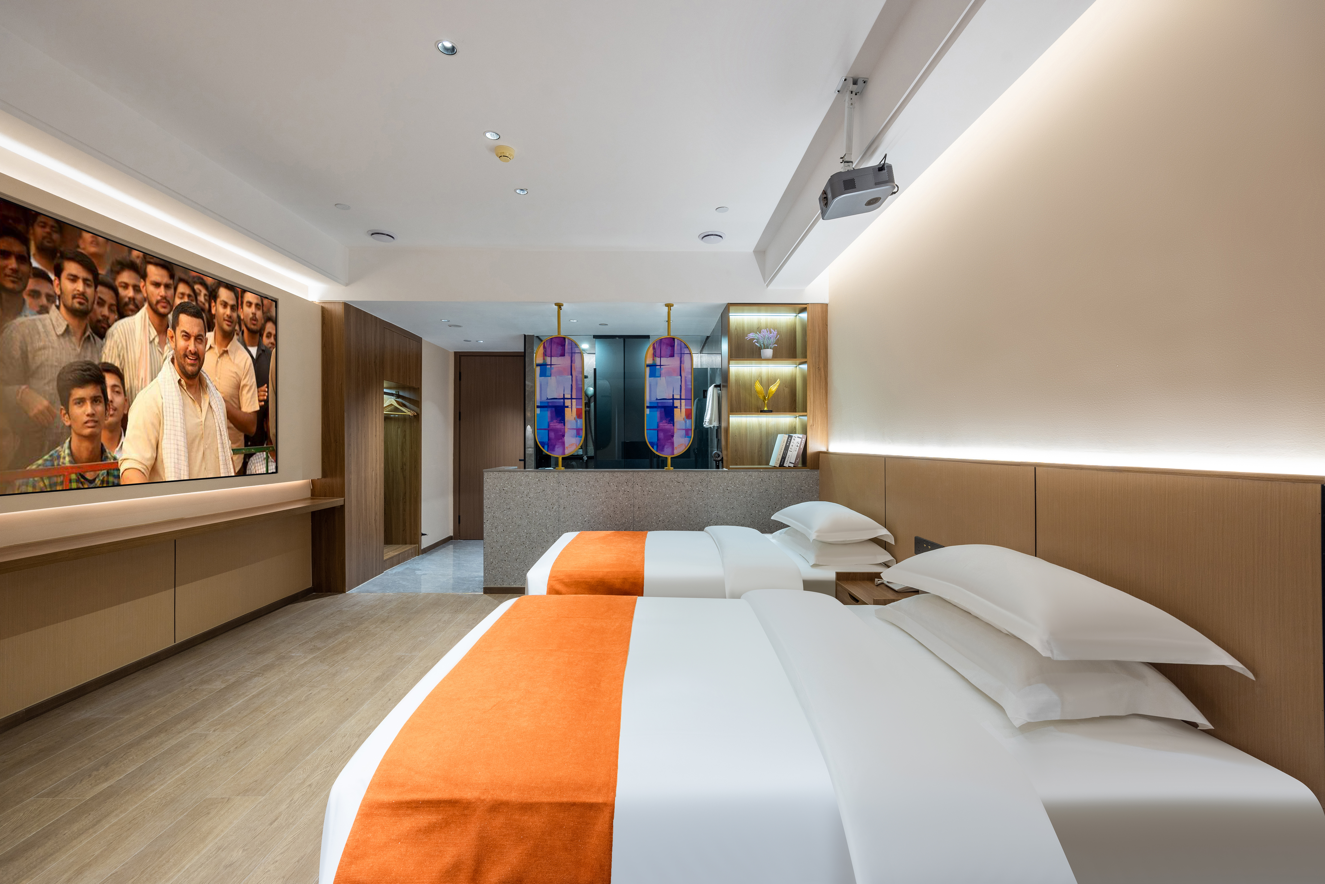 Deluxe Smart Cinema Twin Room (100-Inch 4K Ultra Hd Screen + Smart Toilet + Ai Assistant)