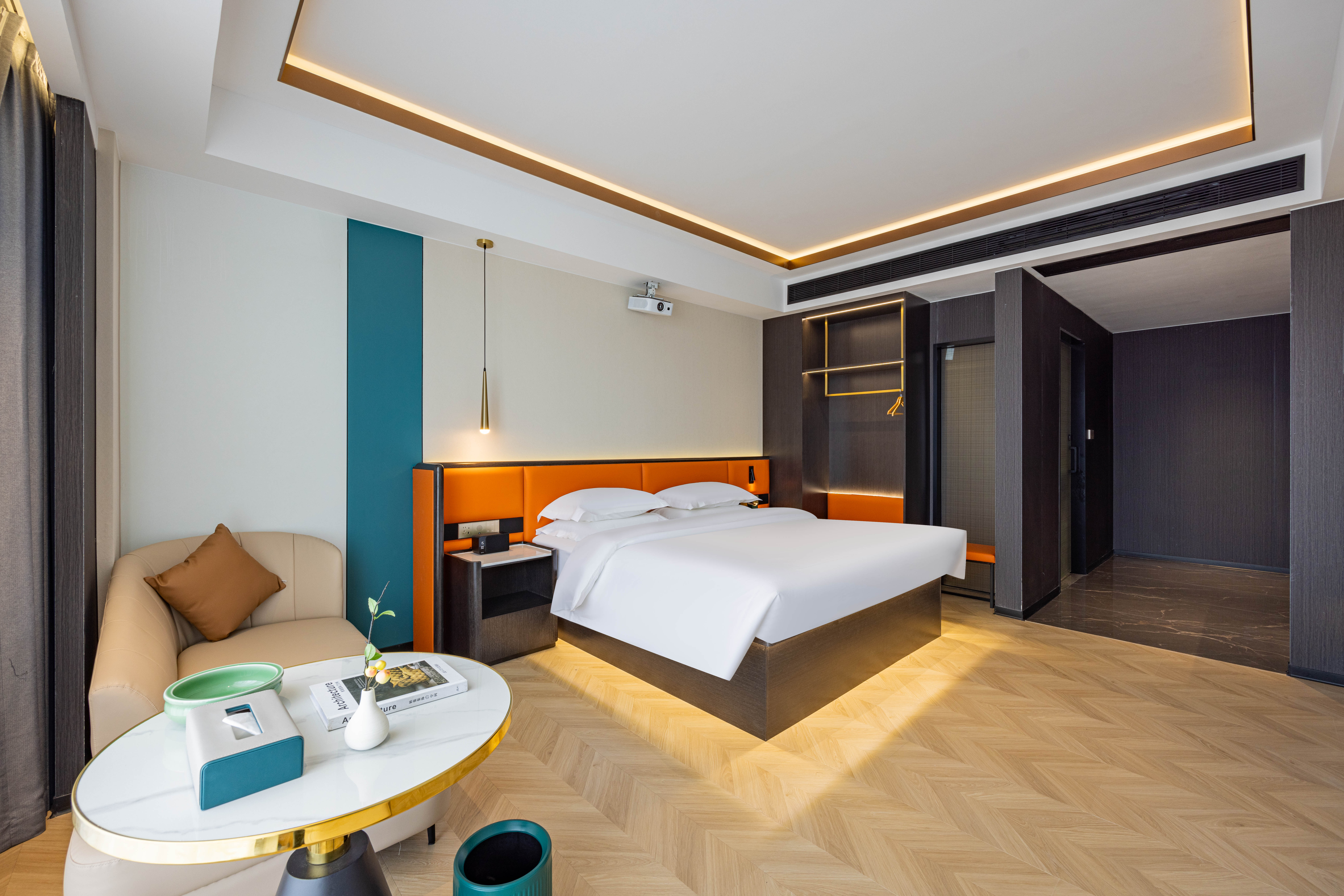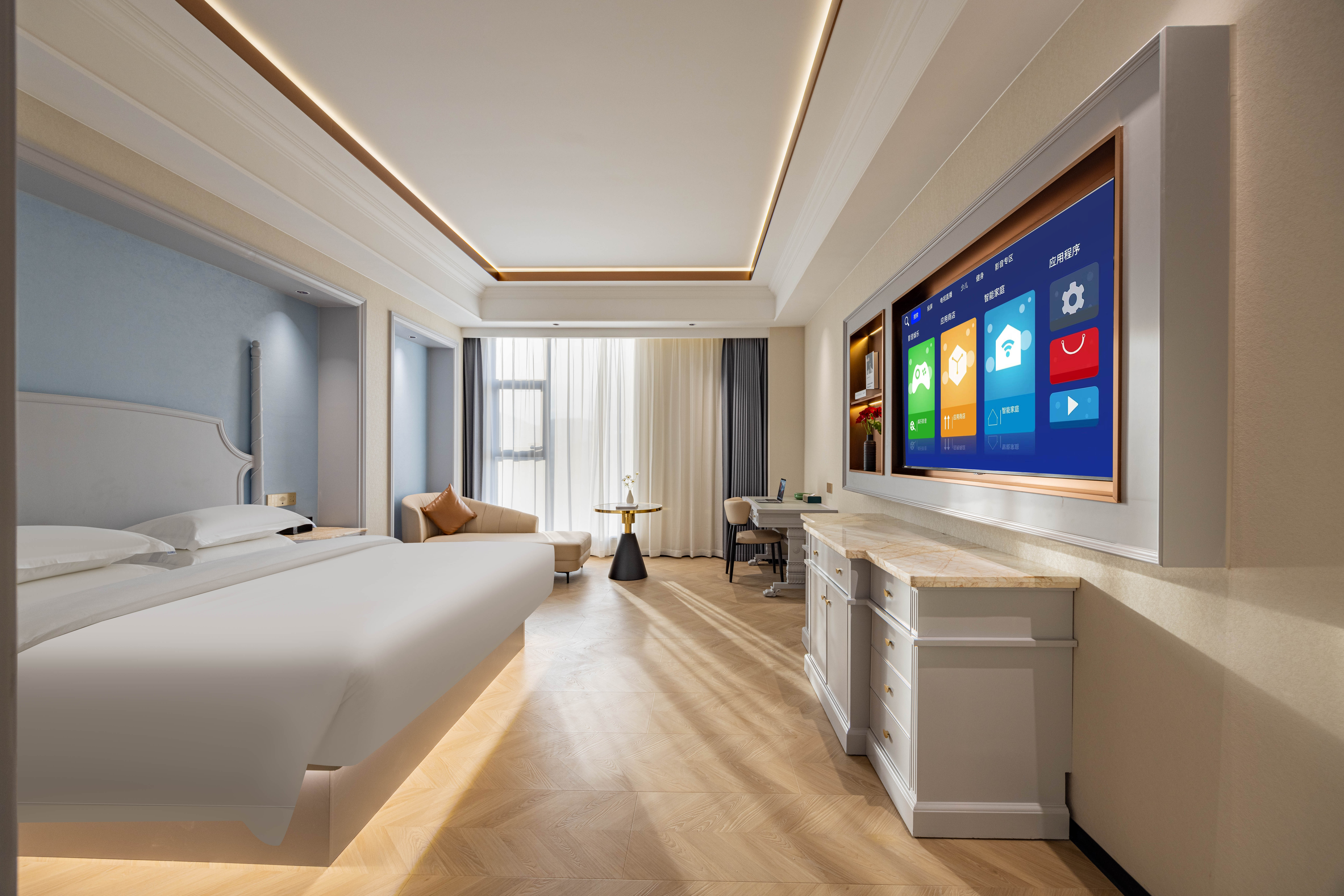 180°智享大床房-120寸巨幕投影+负离子高速吹风机