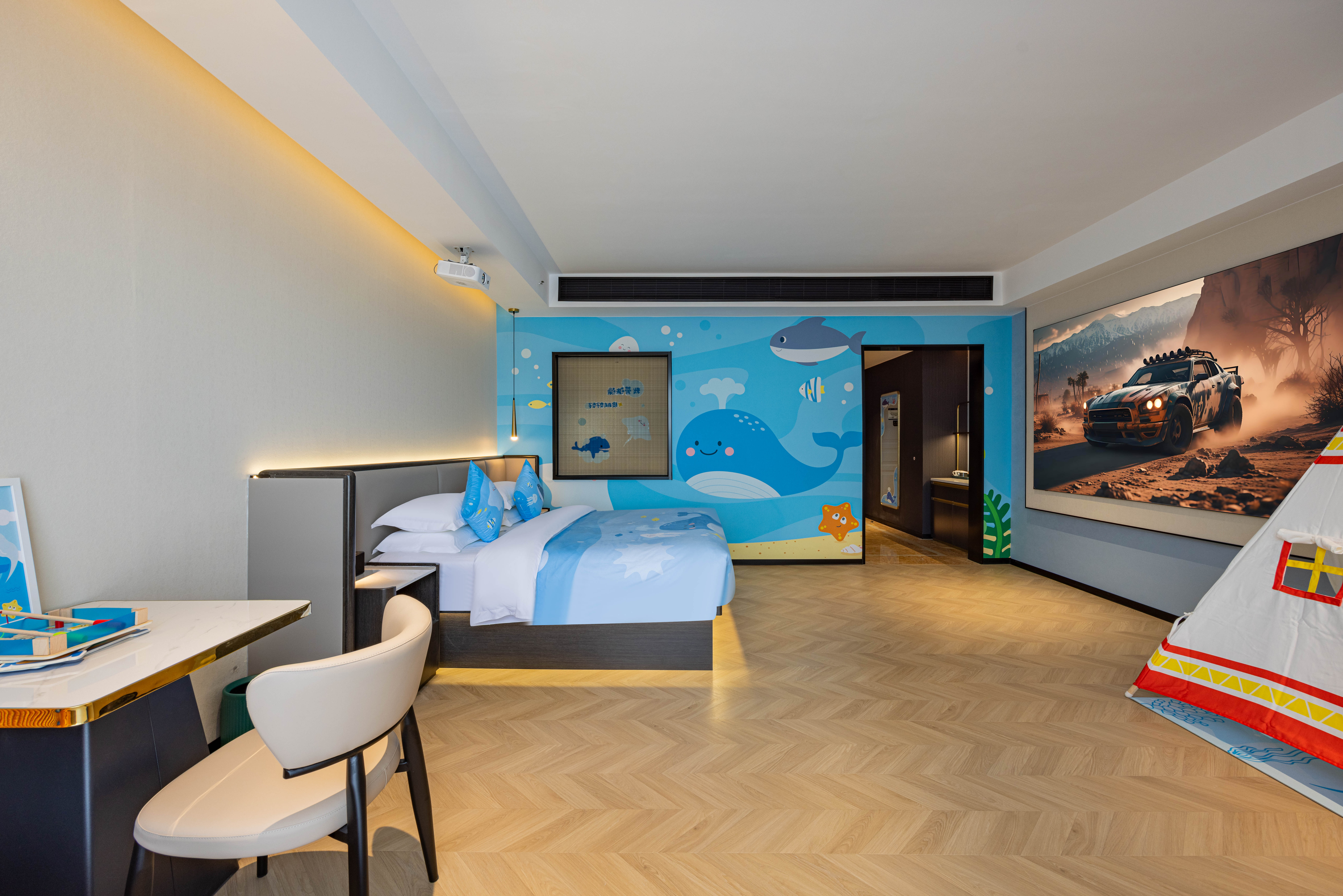 180°智享大床房-120寸巨幕投影+负离子高速吹风机