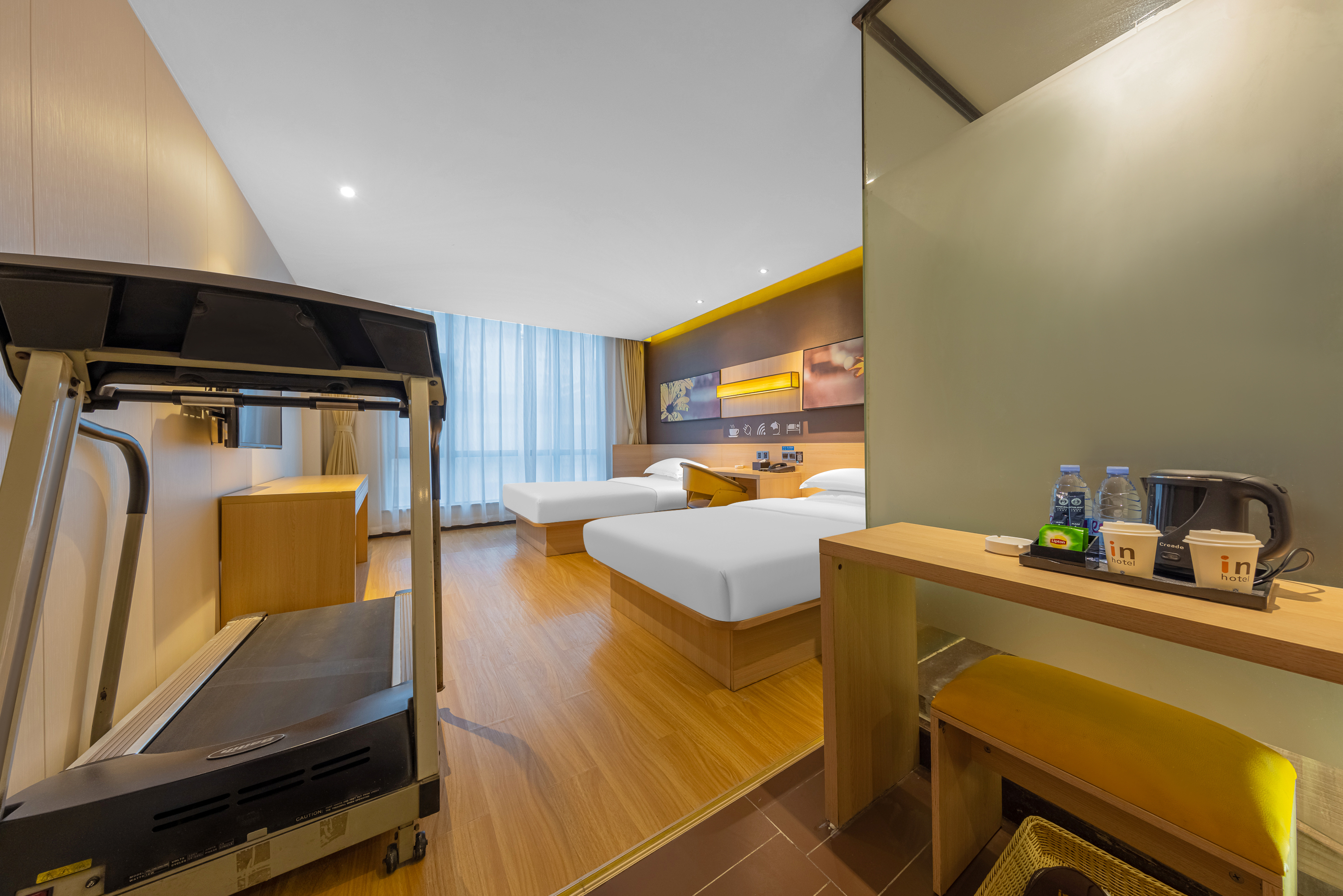 格調健身雙床房(柔軟大床舒適睡眠+超大落地窗)