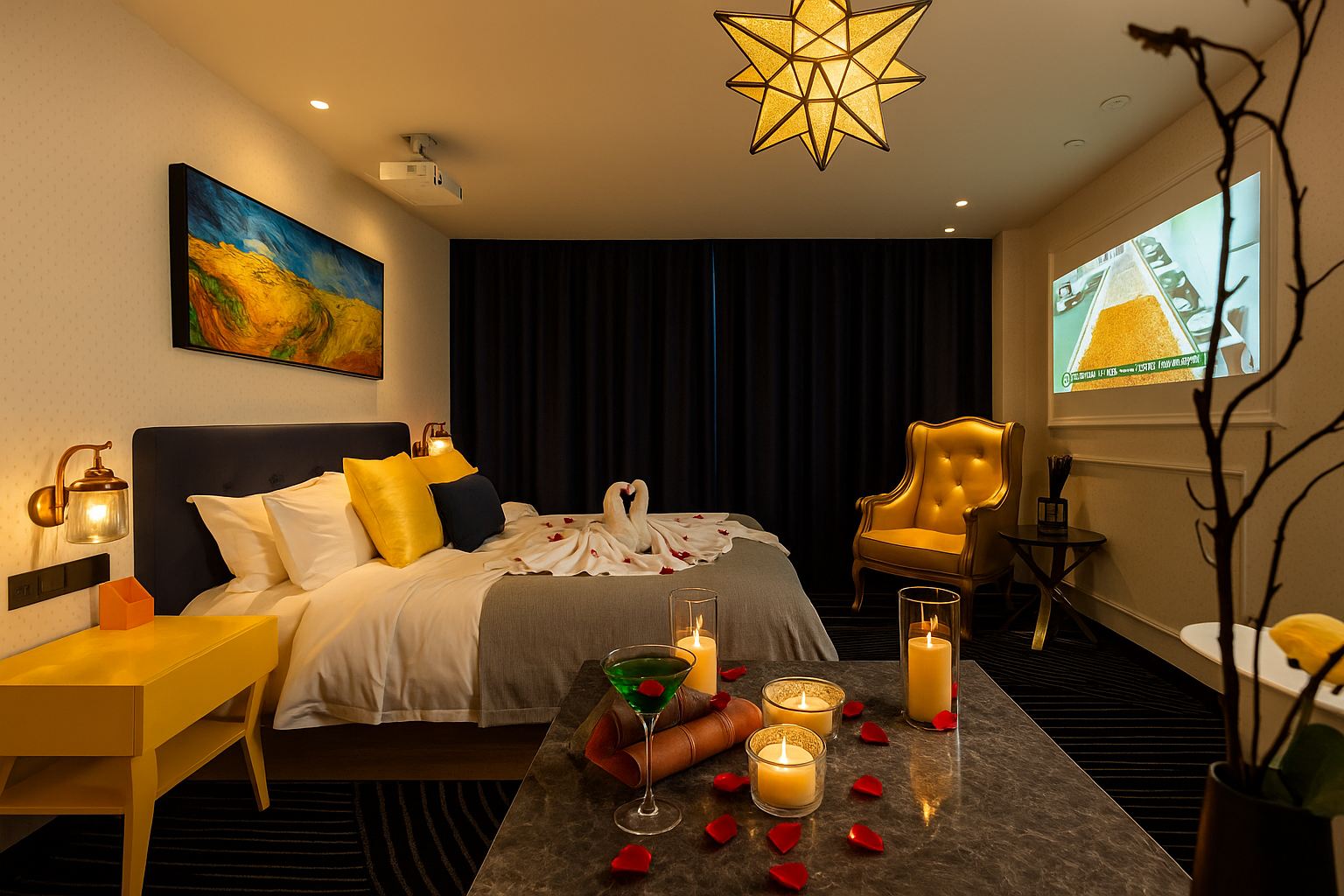 高清·影院大床房「光学变焦高清投影+慢回弹零压床垫」
