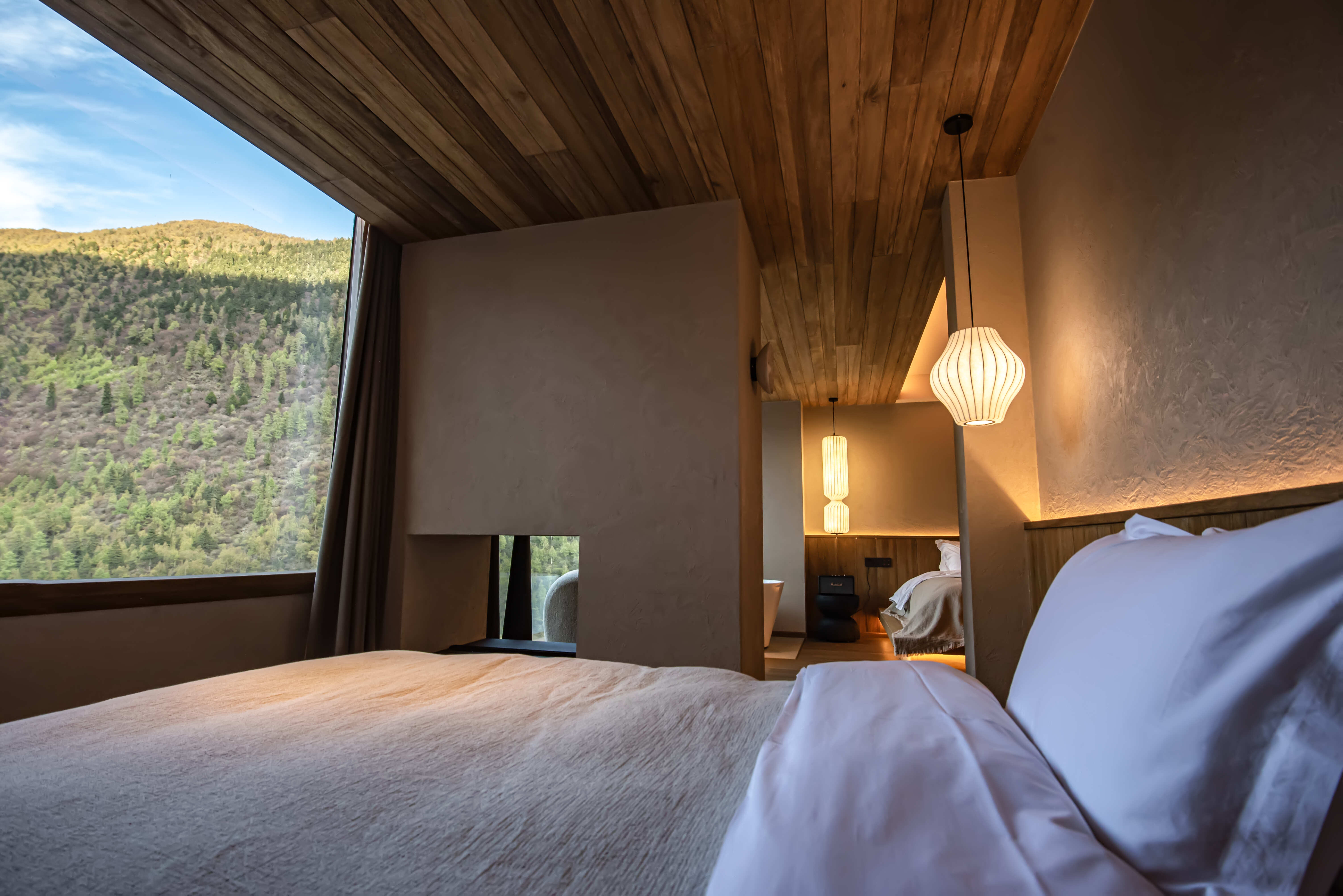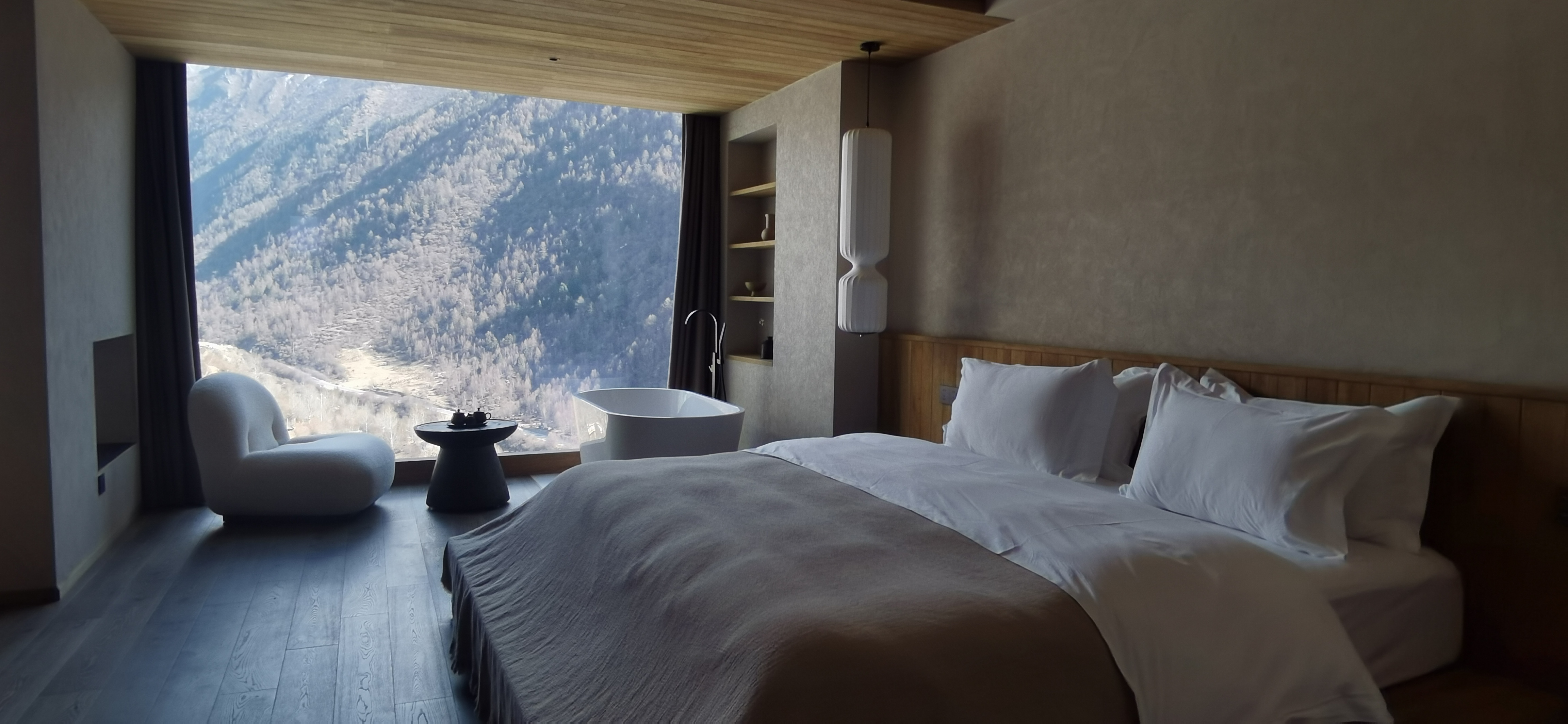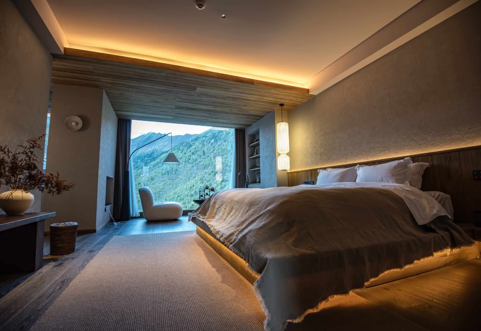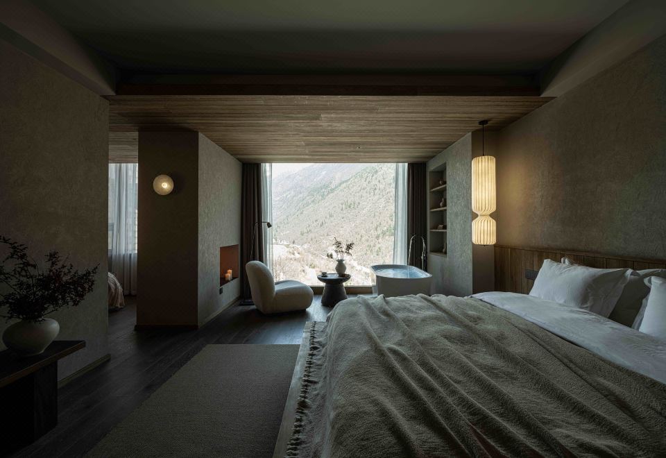 Qingge Snow Mountain Color Forest Landscape Bathtub Big Bed Room
