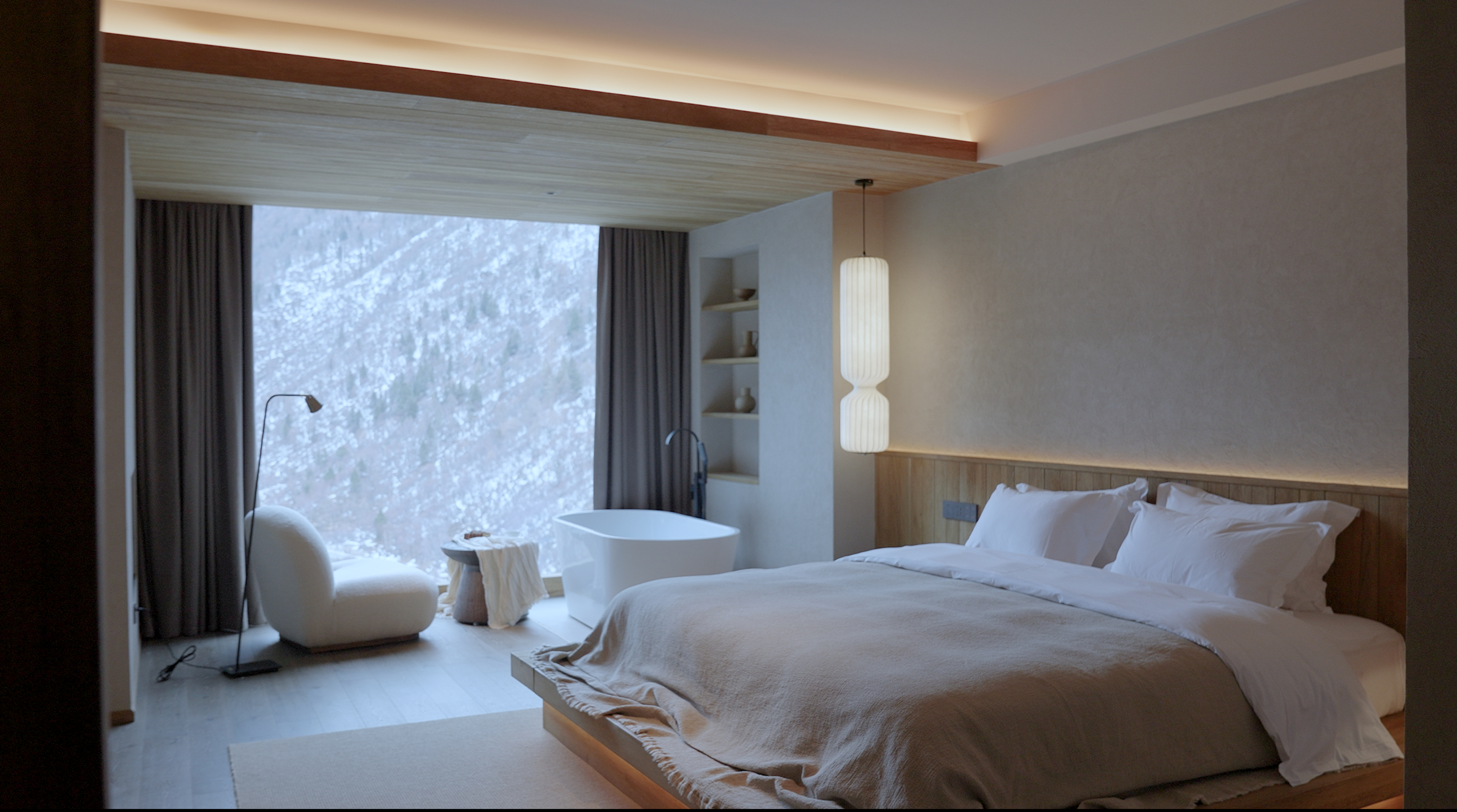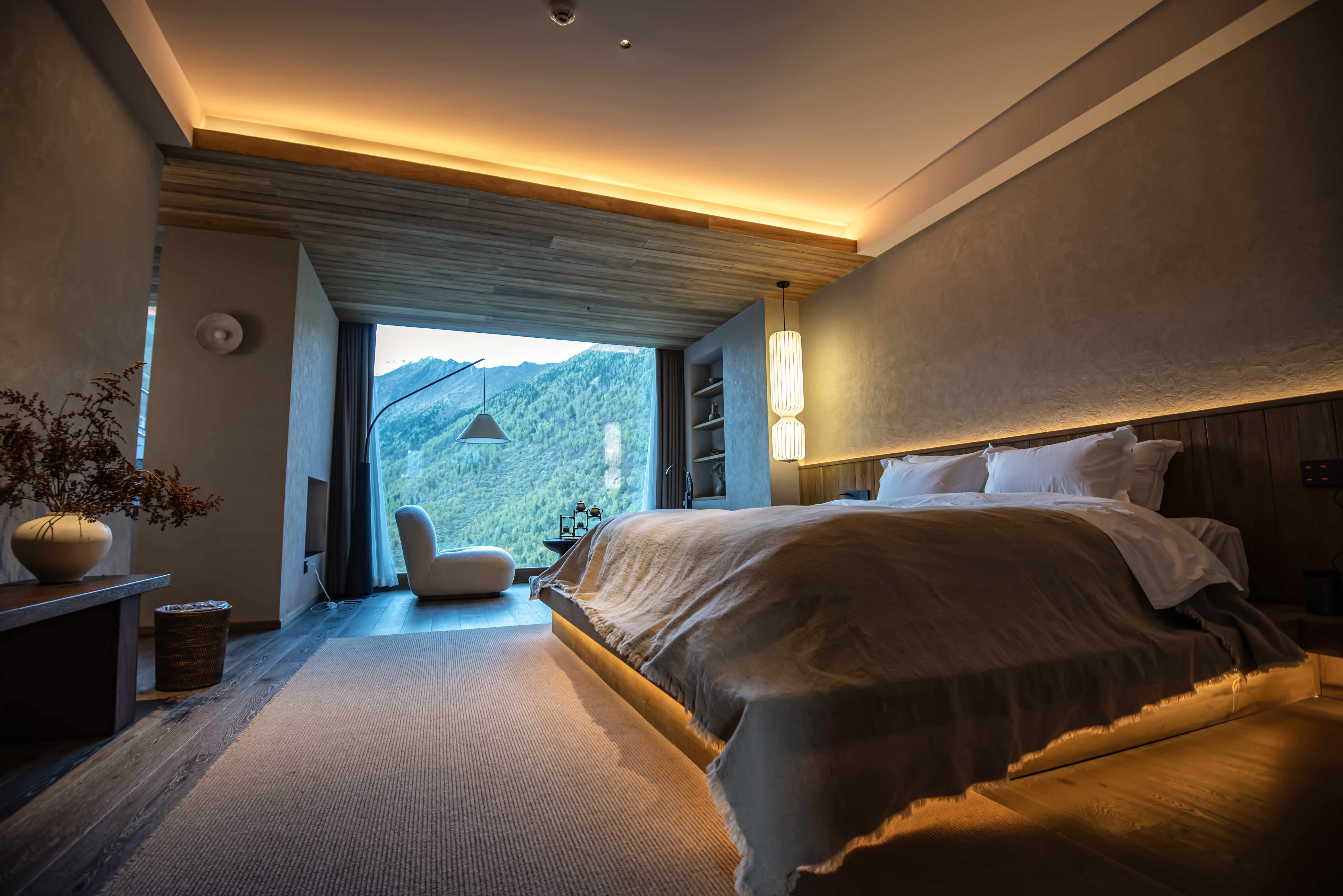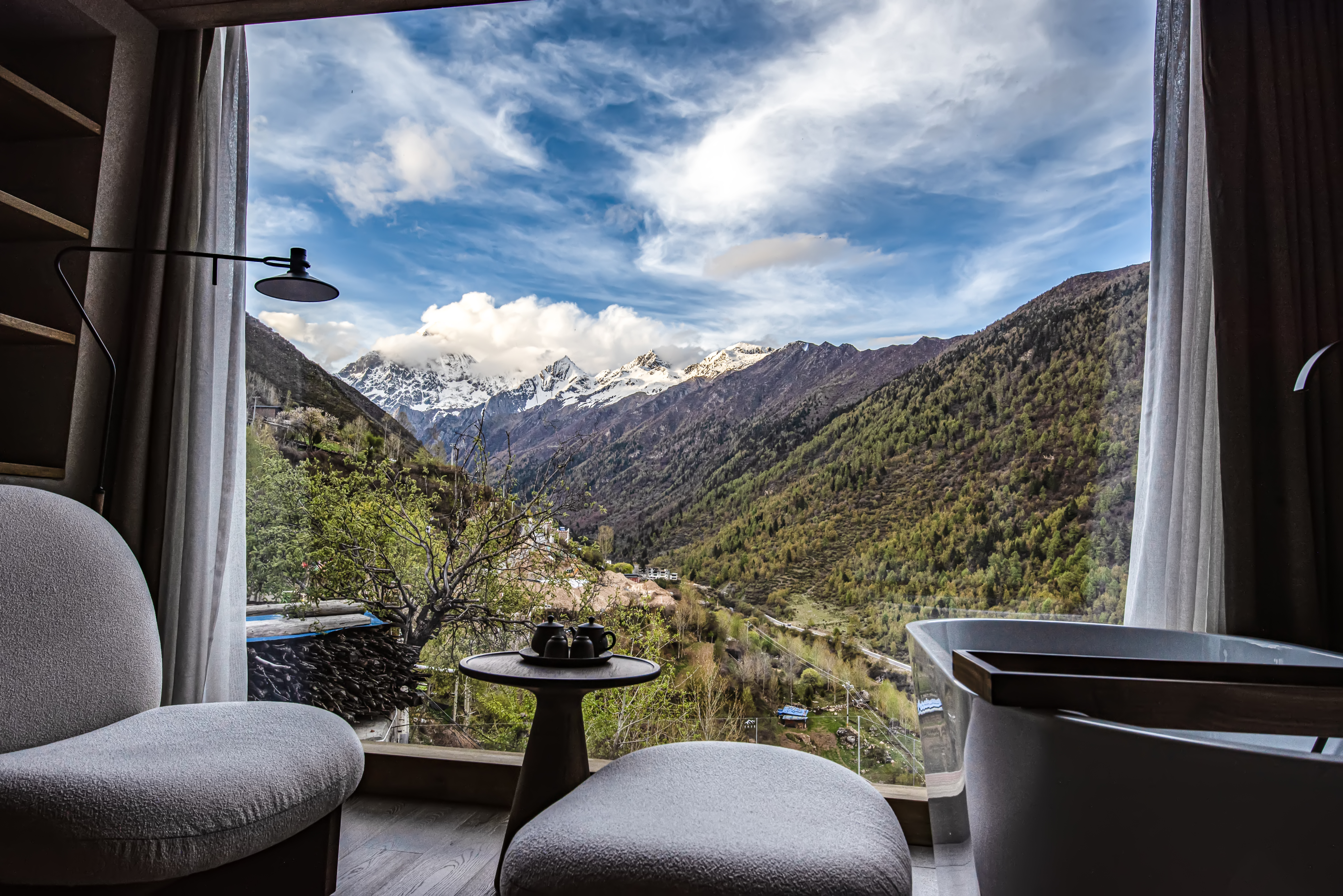 Qingge Snow Mountain Color Forest Landscape Bathtub Big Bed Room