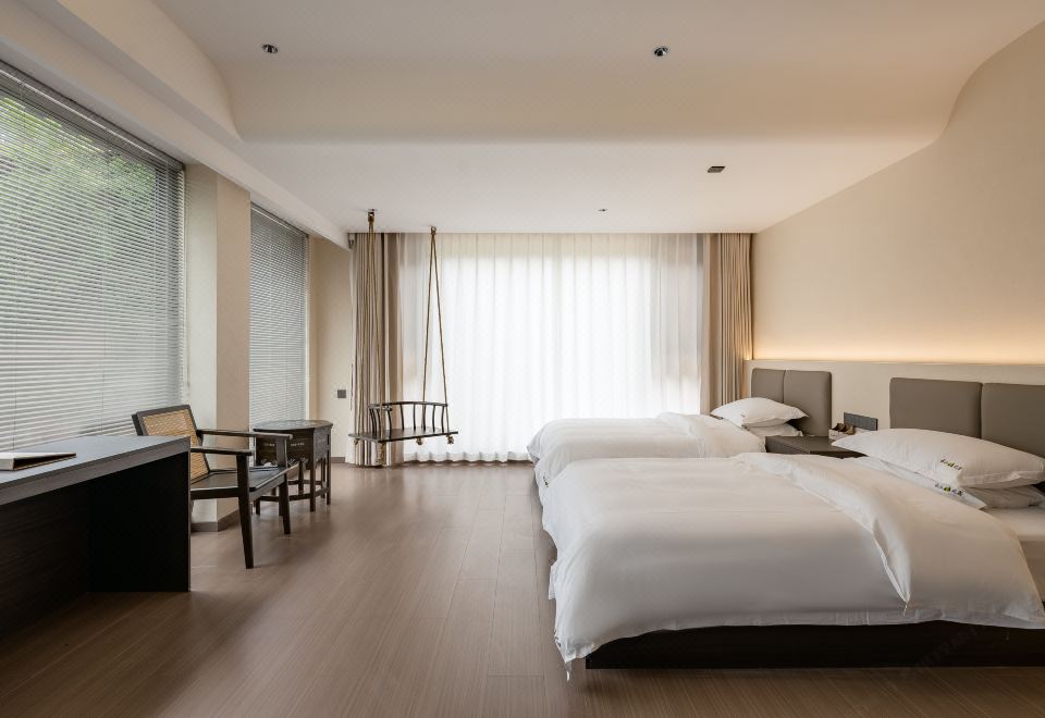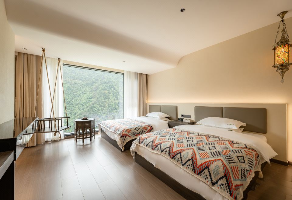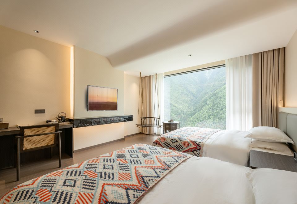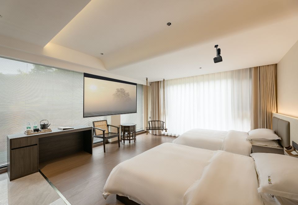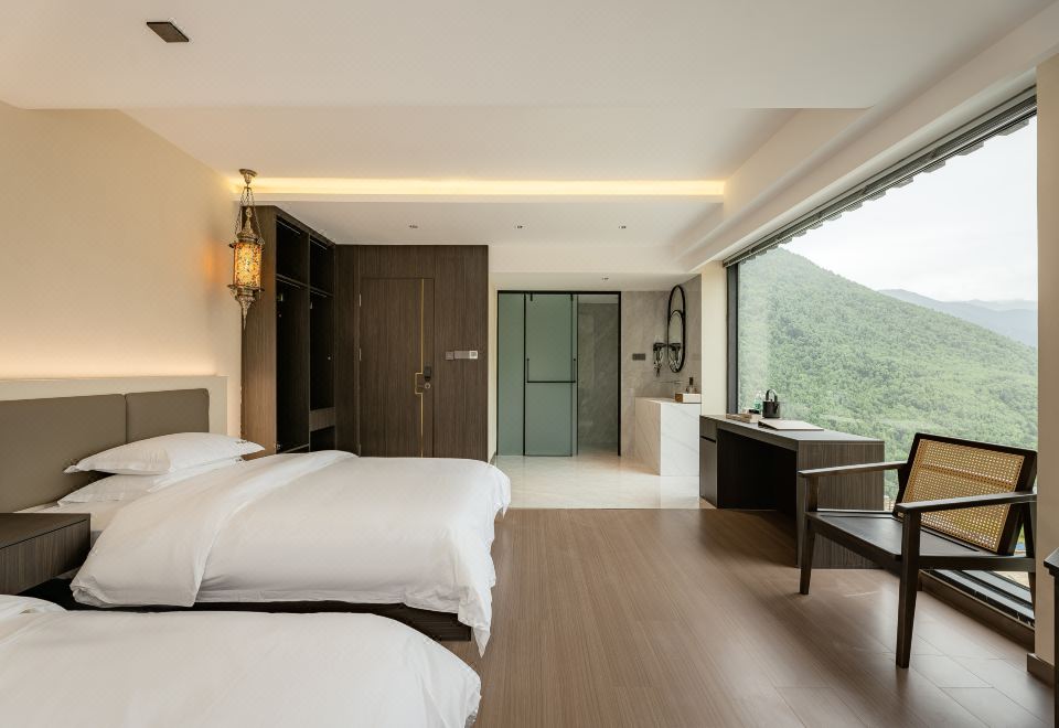與秋眠·依山觀景雙床房(地暖+白鵝絨被+智能客控+乳膠床墊+乳膠枕頭)