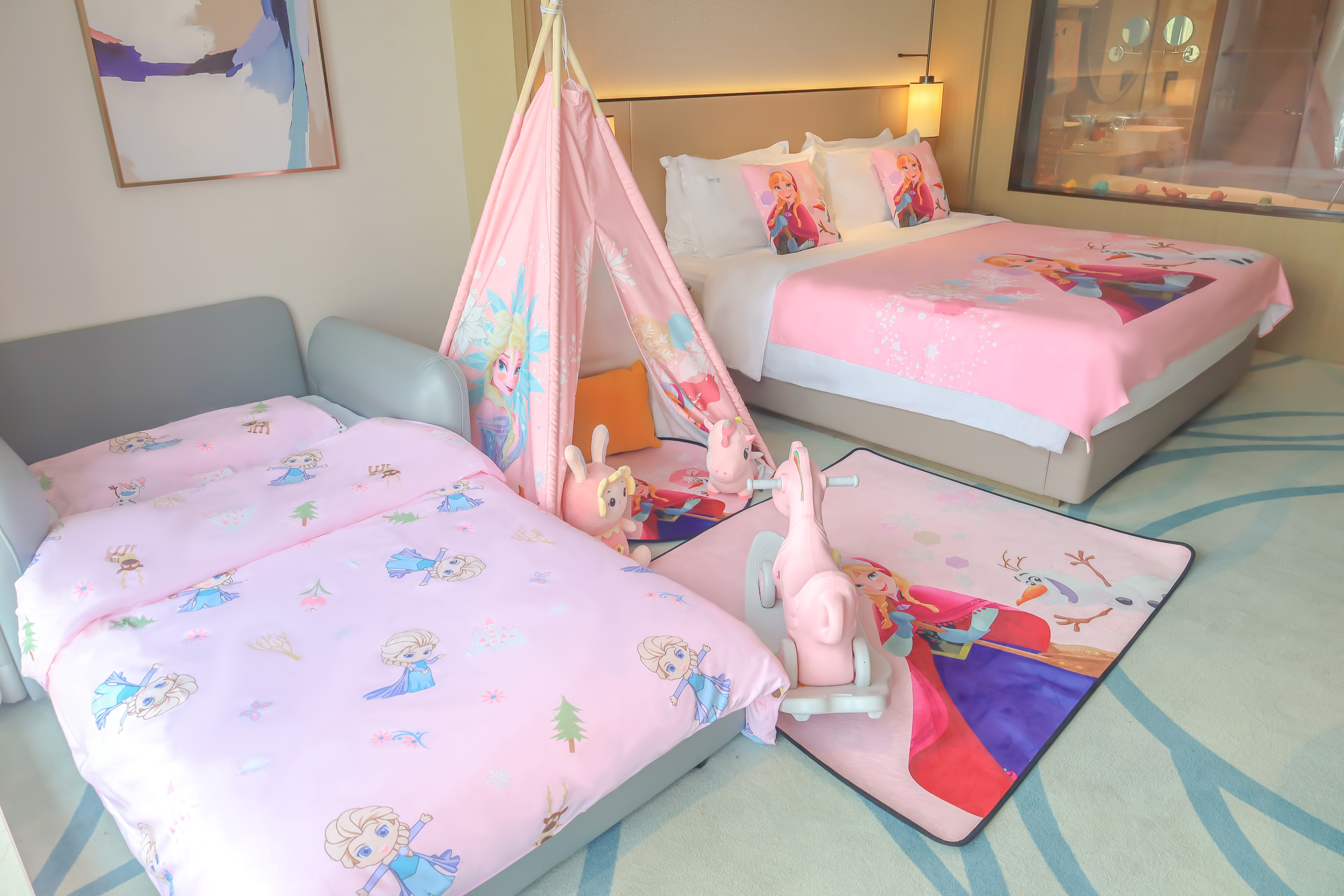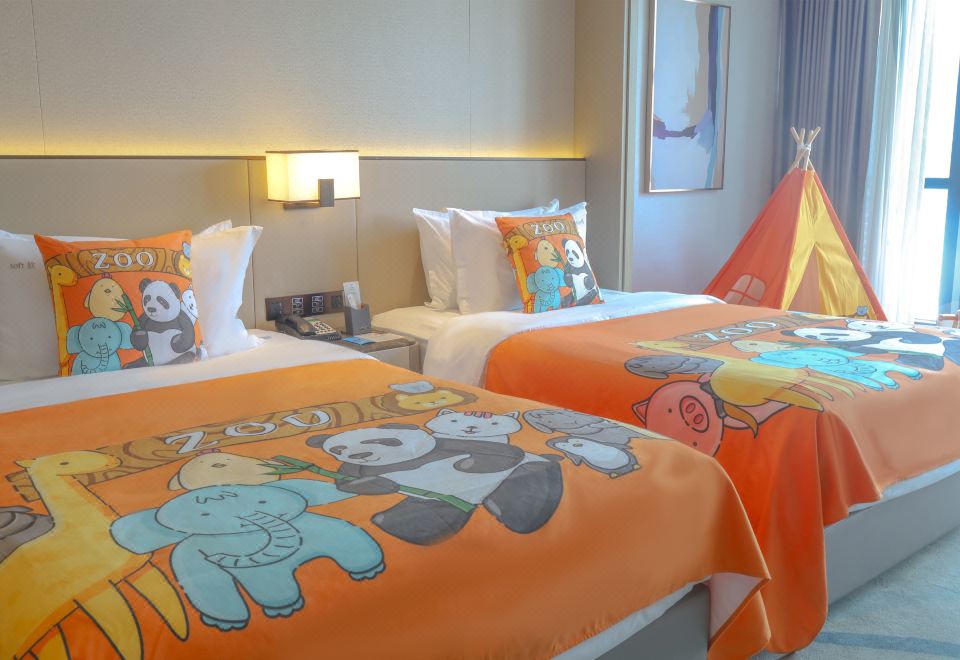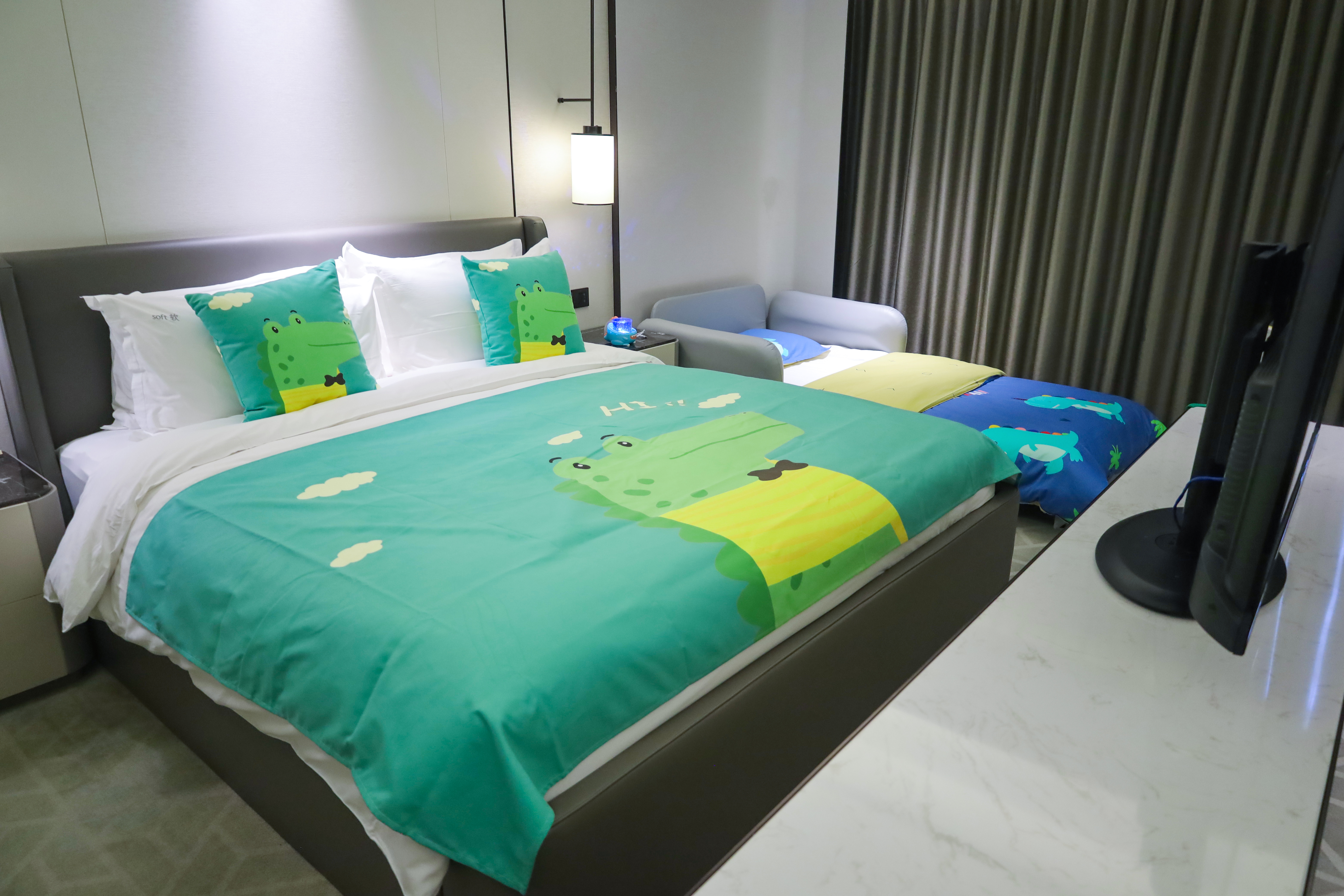 豪华房 一张超大床 单人梳化床 小童主题