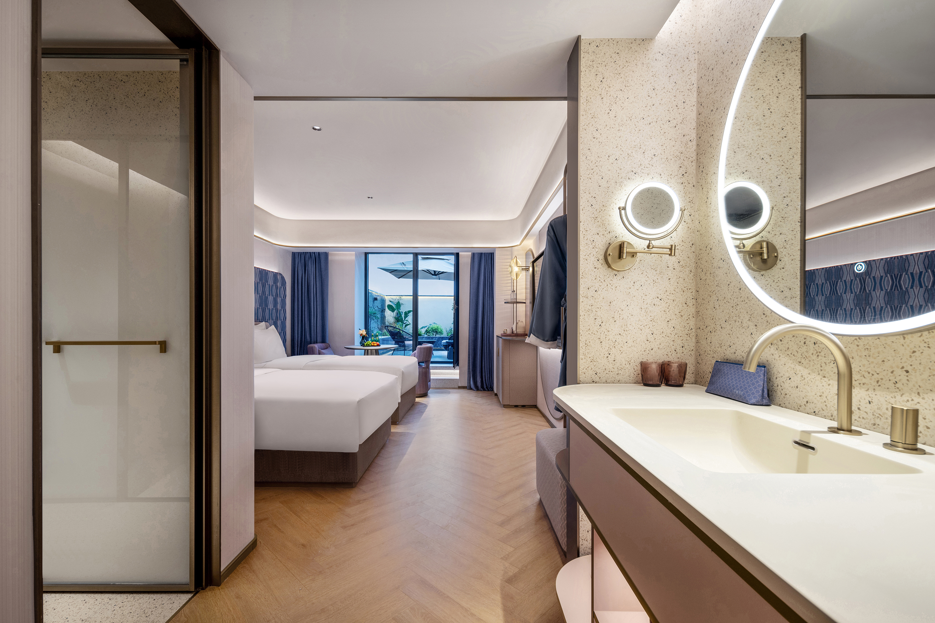 雅落庭院雙床房(電視投屏+小冰箱+絲漣床墊+淋浴頂噴)