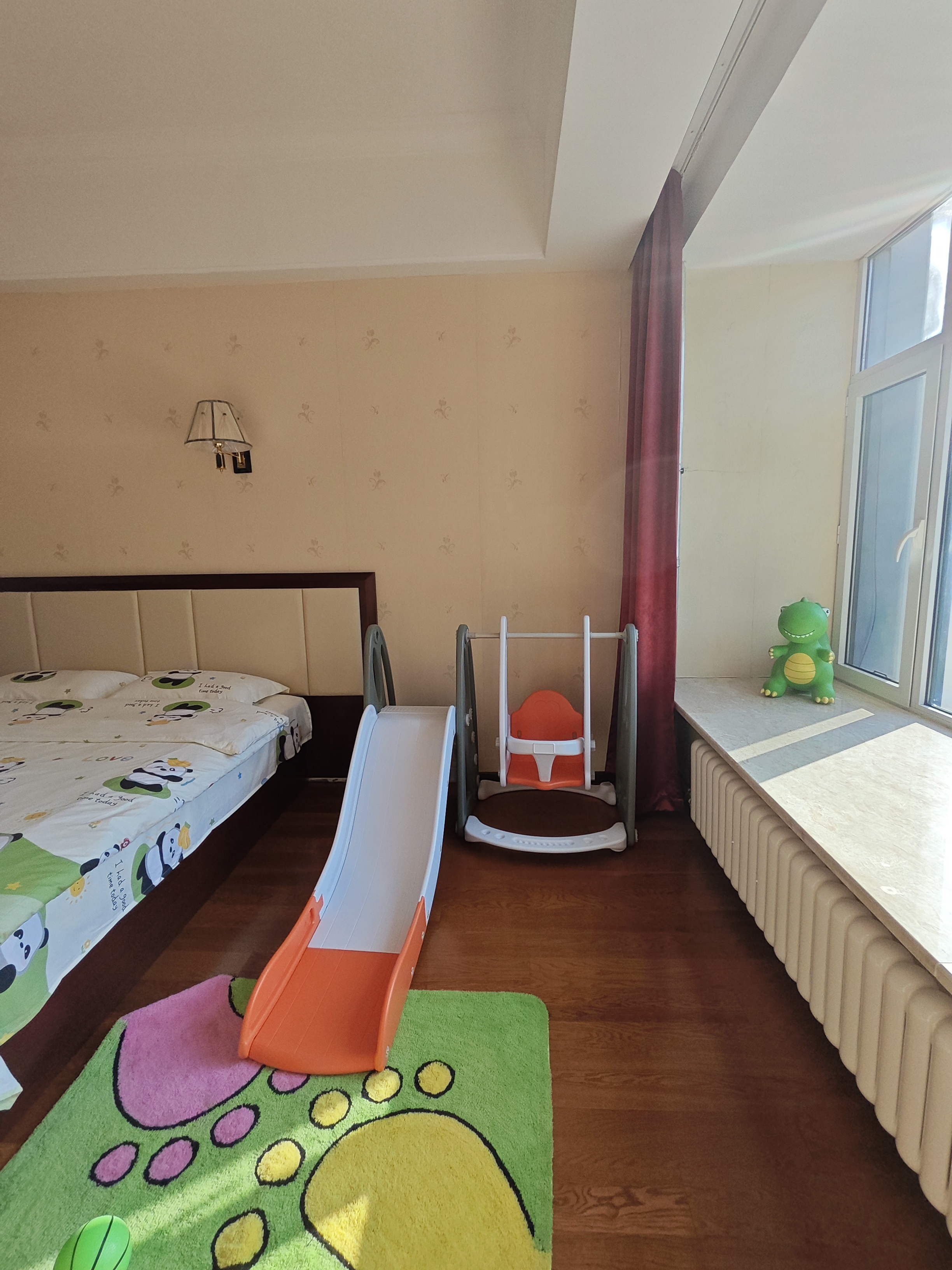 熊猫主题亲子房|小童滑梯·小童篮筐·多彩画笔
