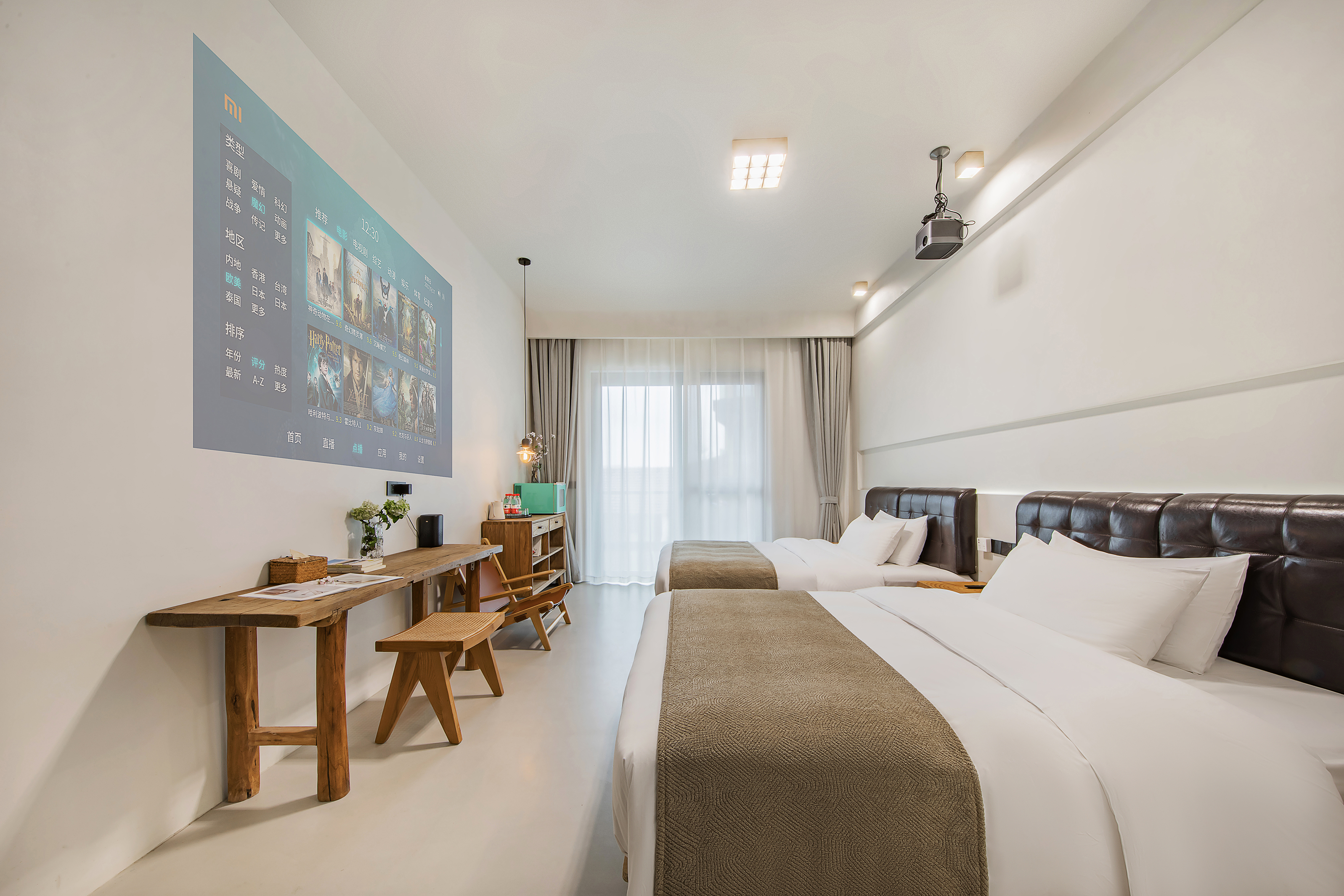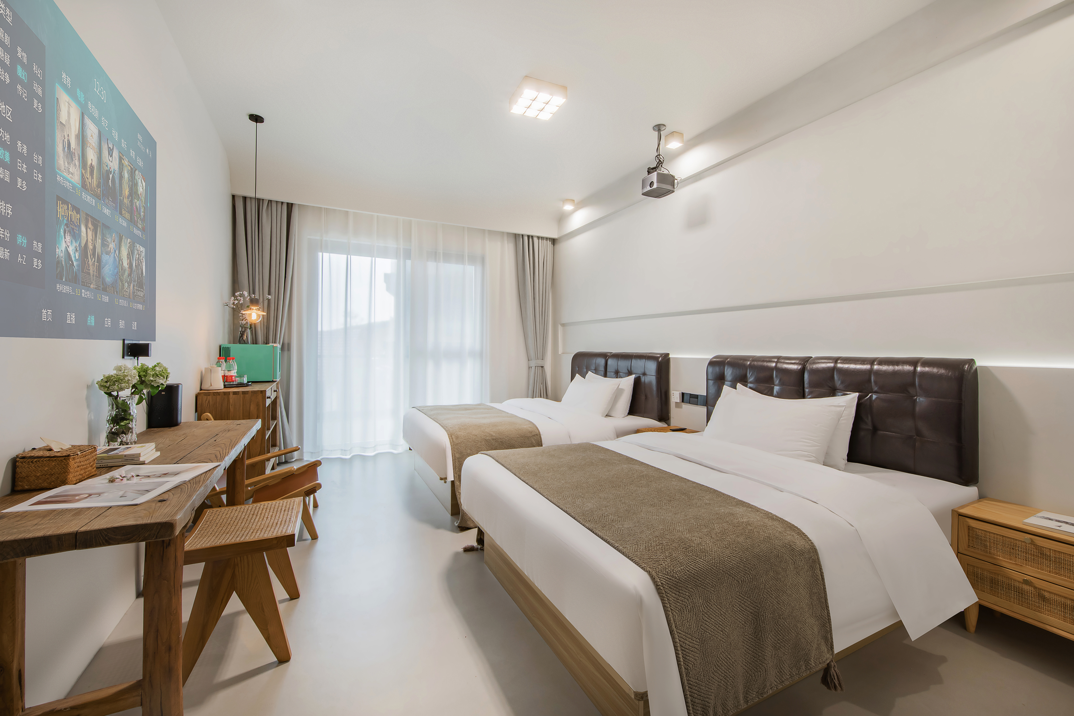 喜乐·阳台双床房【巨幕投影+白鹅绒被芯+小冰箱】