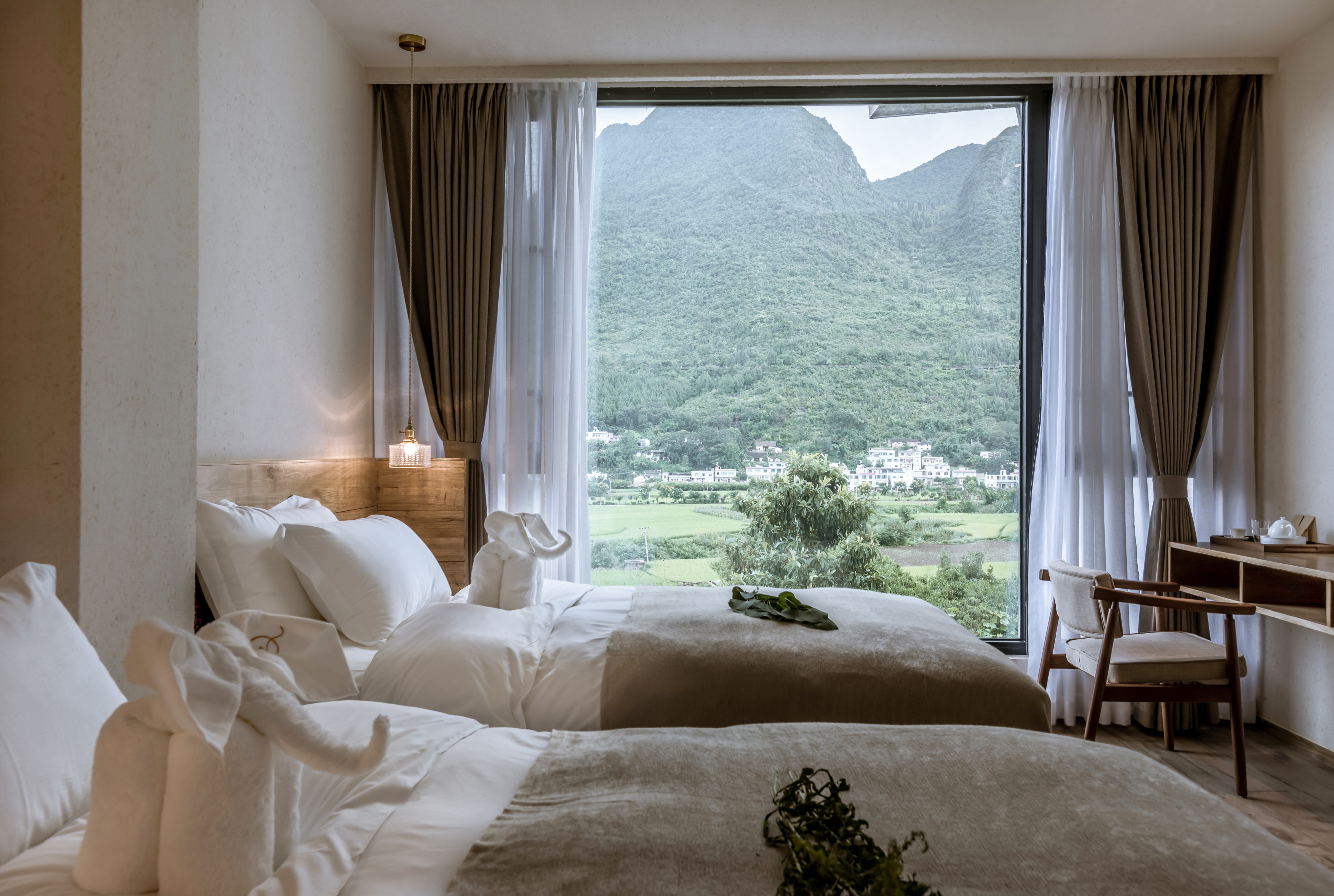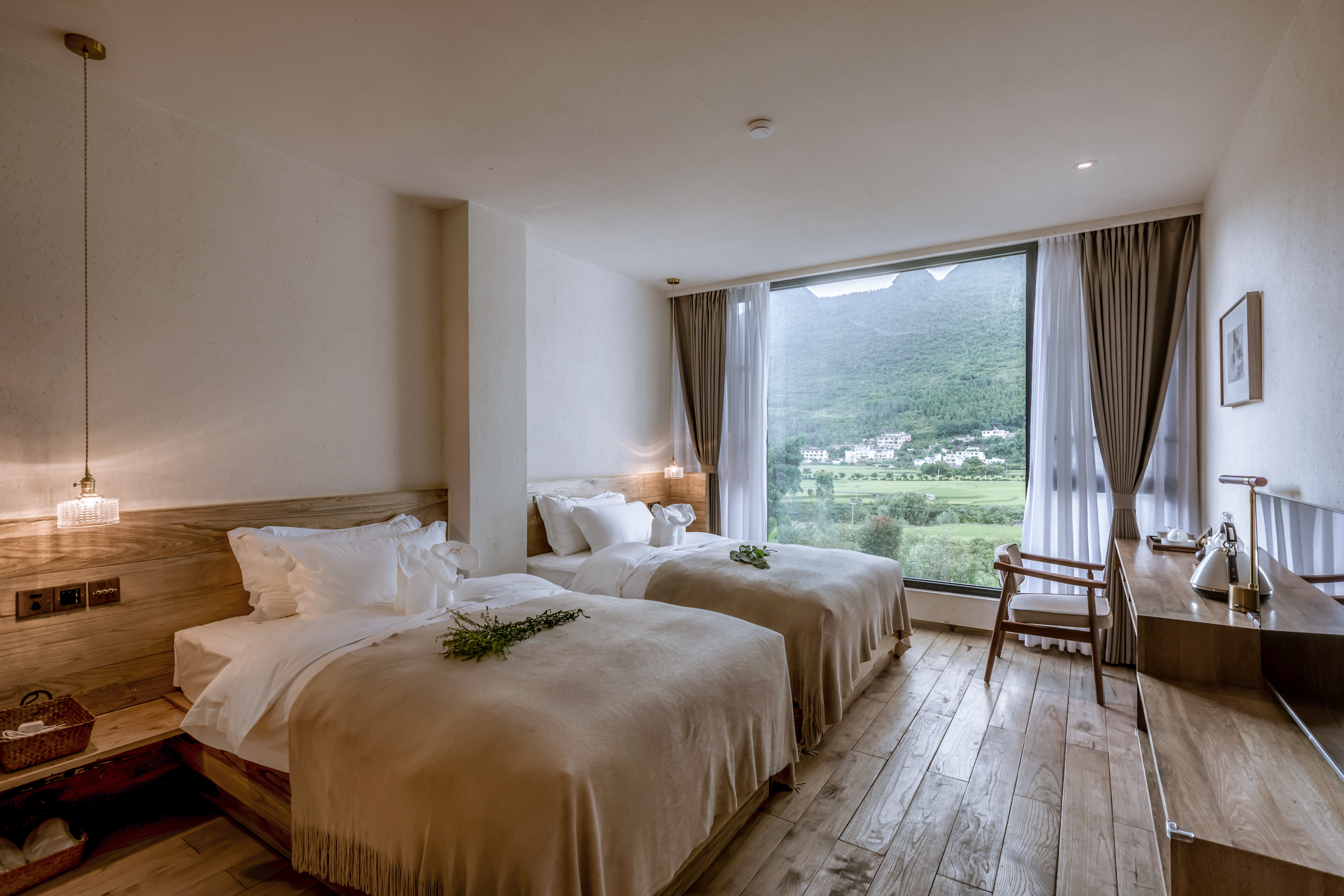 Shaoshi Scenic Courtyard Mountain View Twin Room (with Sunset View, Relaxing Goose Down Duvet, Independent Desk, Mini Fridge)