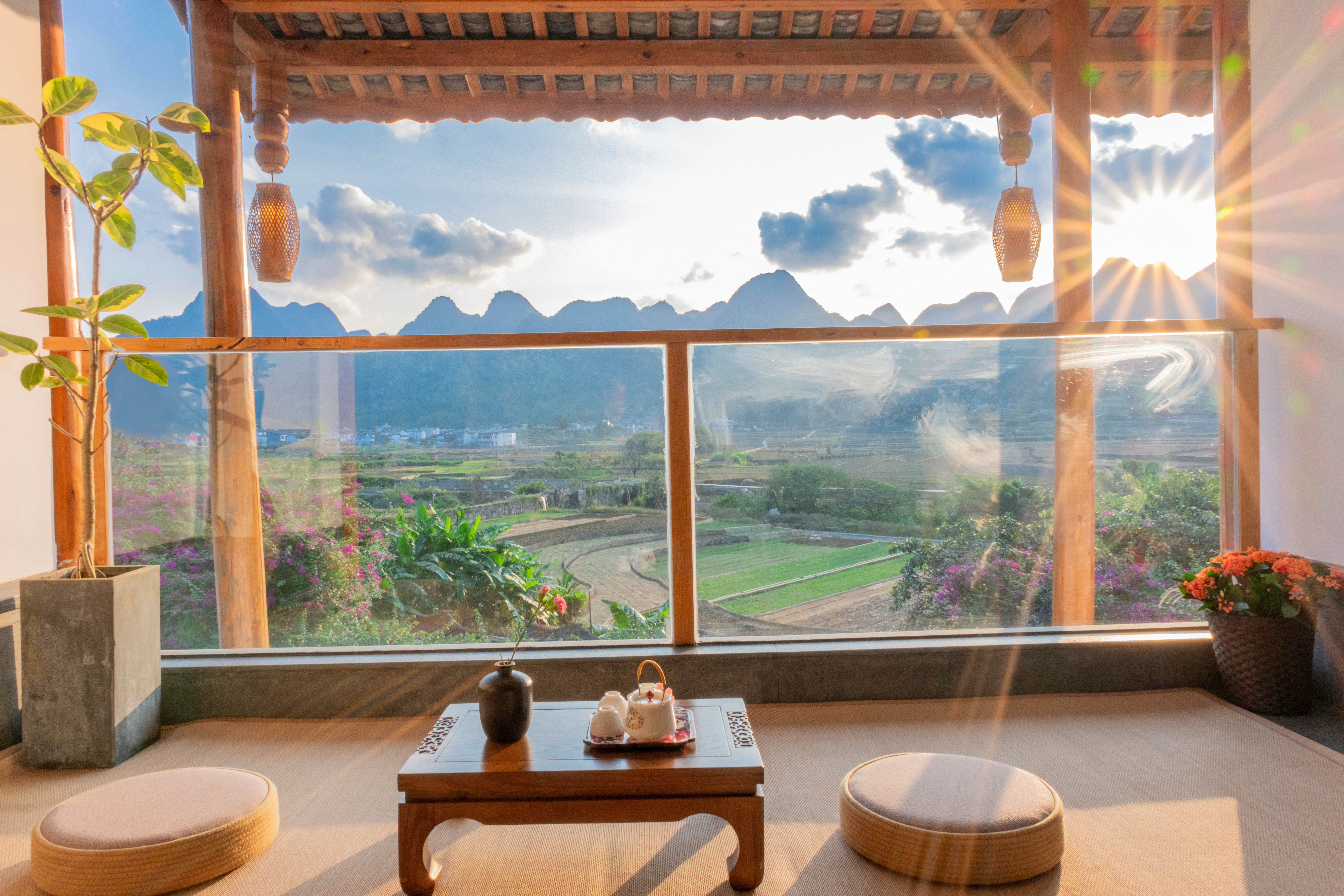 Apricot 2 Tatami Mountain-View Twin Room[Peak View Balcony, Scenic Mountain And Field View, Dual Sinks, Wet-Dry Separation]
