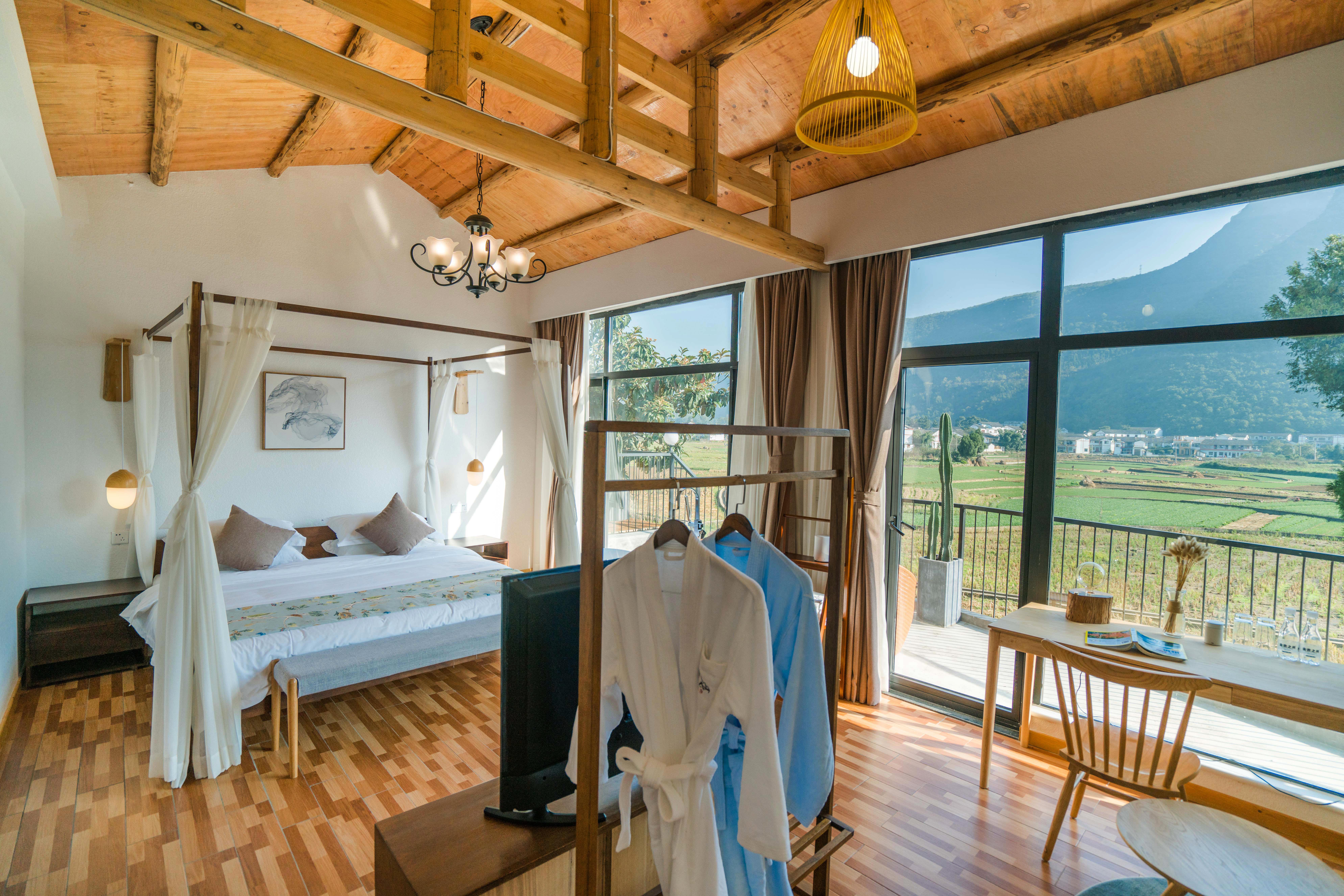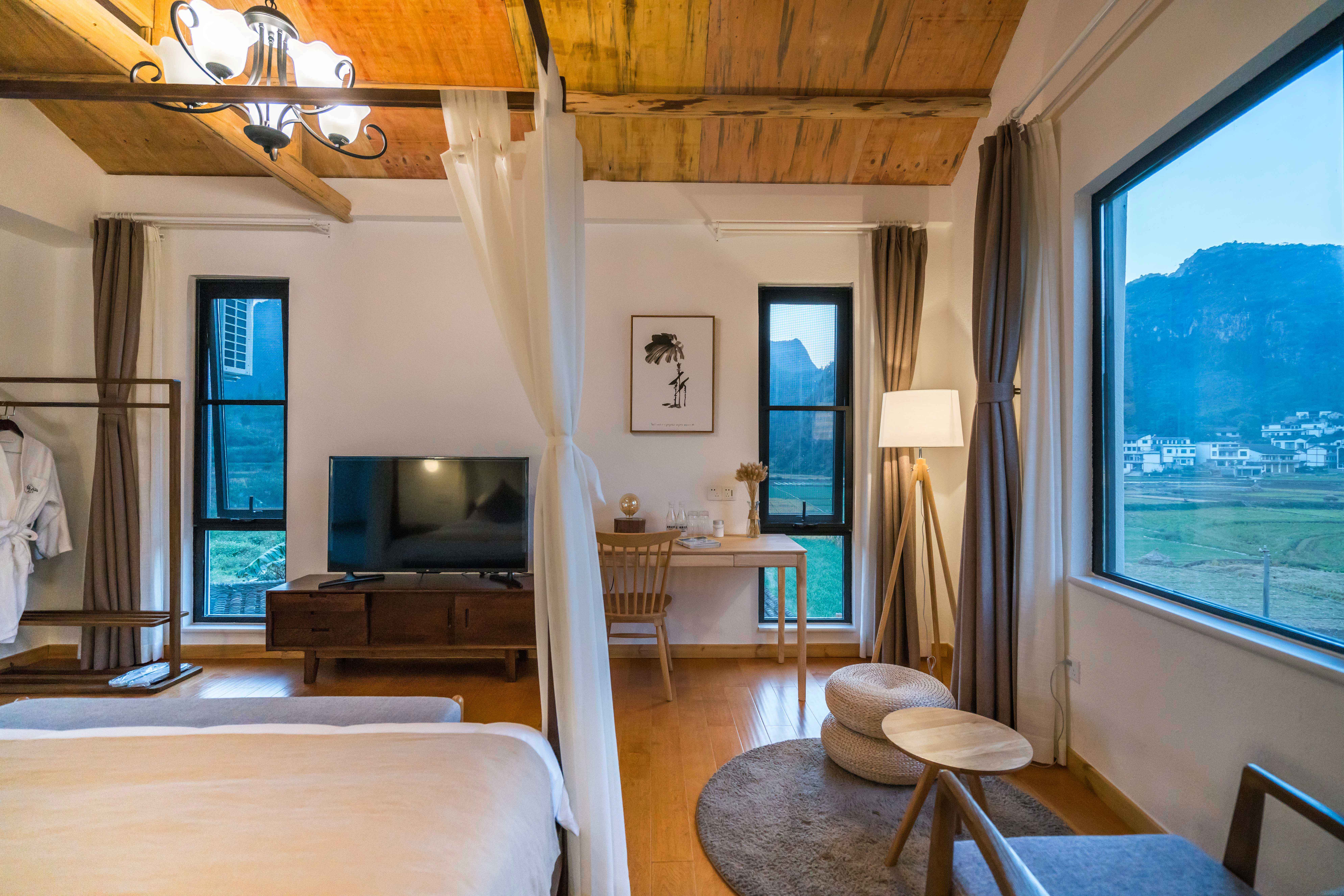 Yinyan Balcony Boutique Double Bed Room (Comfort Tub + Mini Fridge + Beautiful Mountain View + Family Reading Eye Protection Lamp)