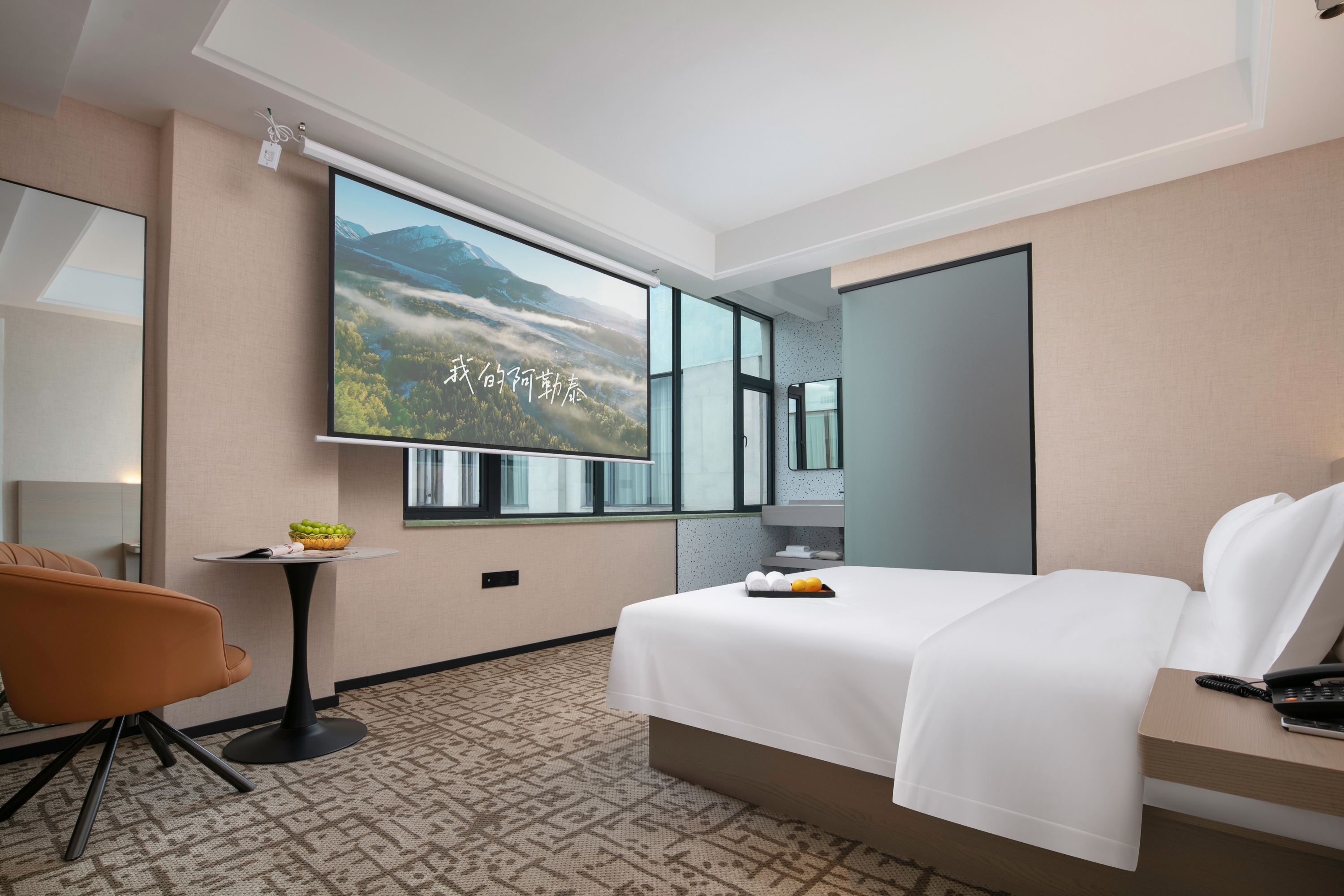 Audio-Visual Double Bed Room With Memory Foam Latex Pillow + Large Screen Projector + Atrium Leisure Balcony
