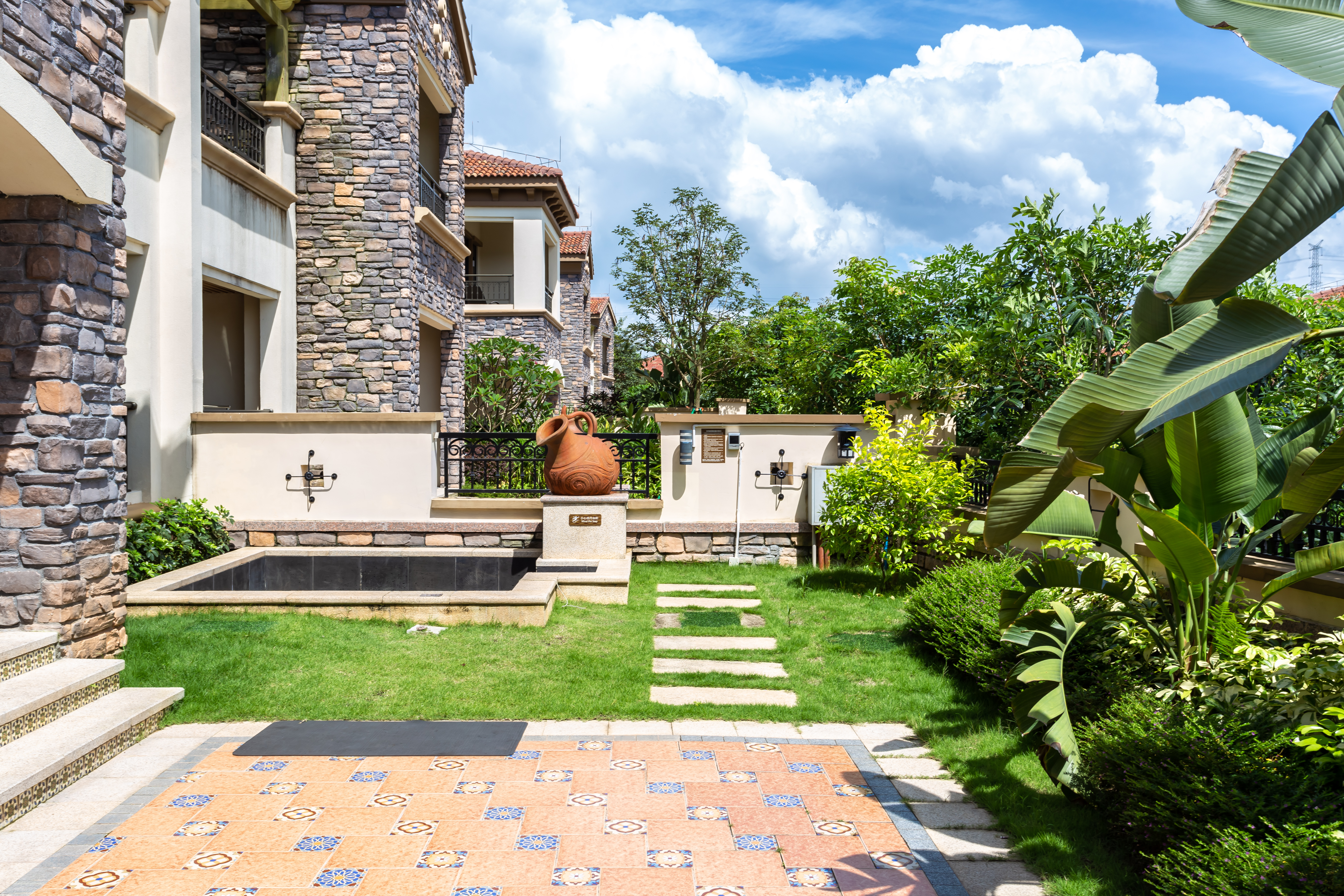 复式温泉两房别墅-花园泡池