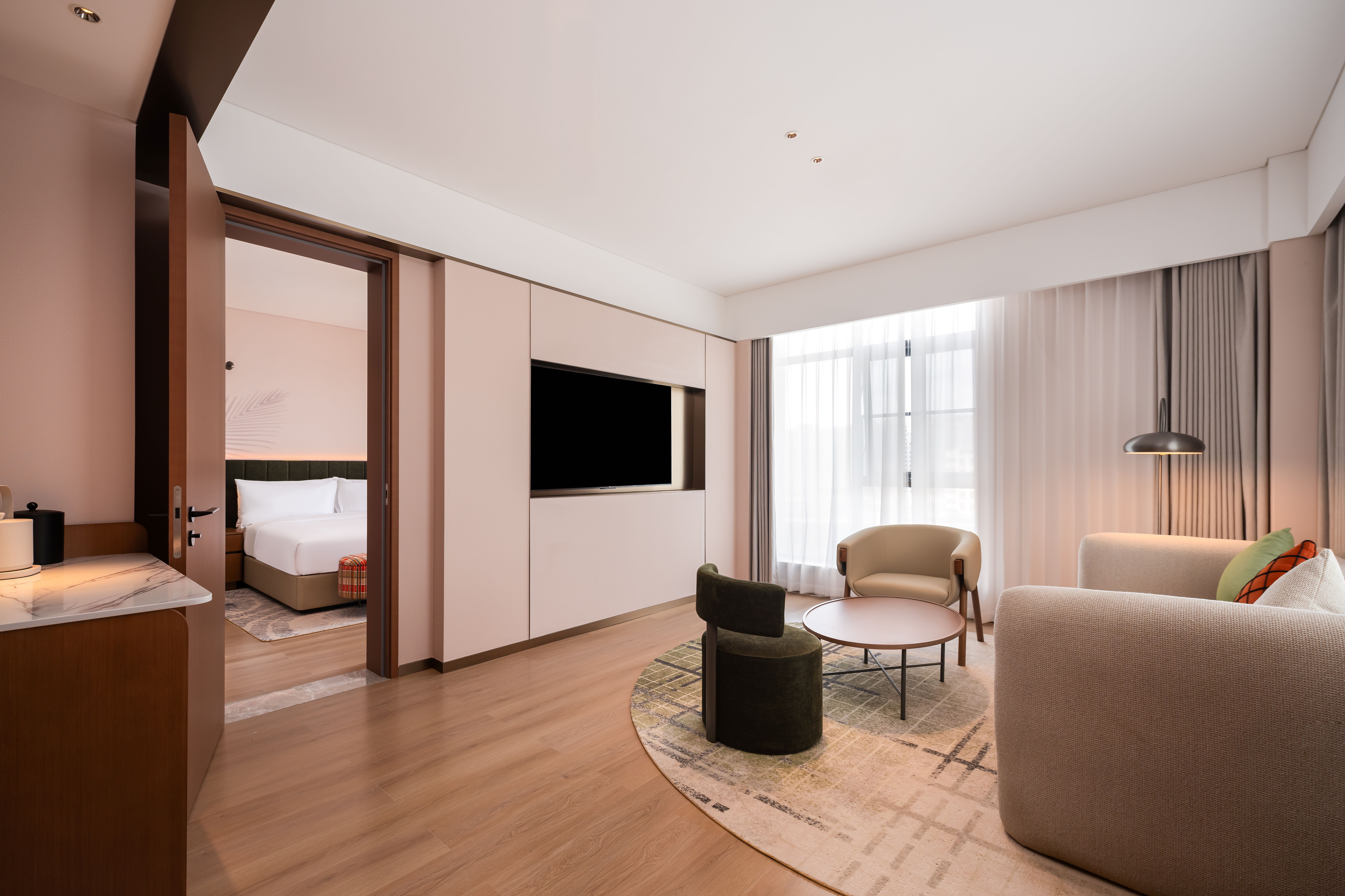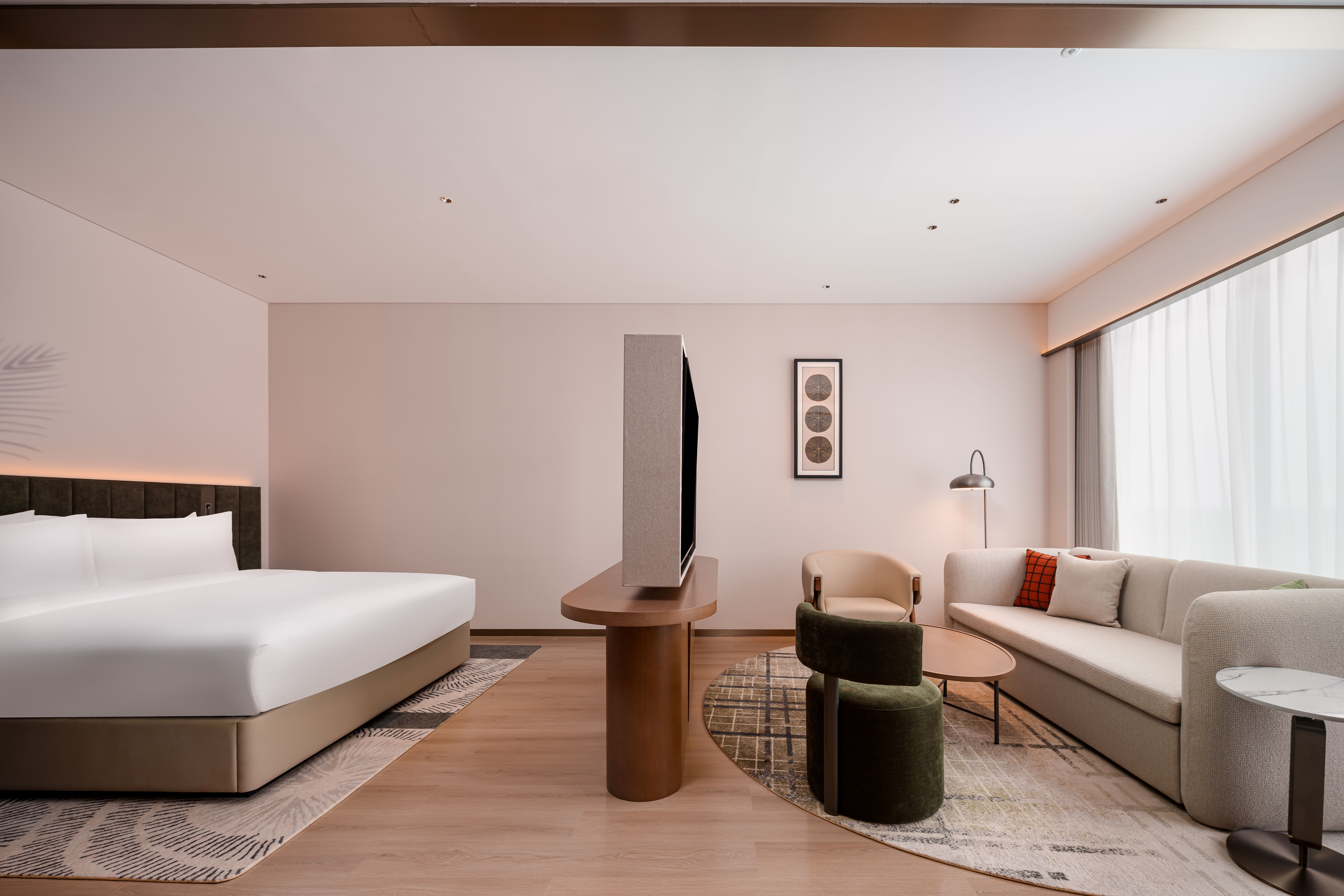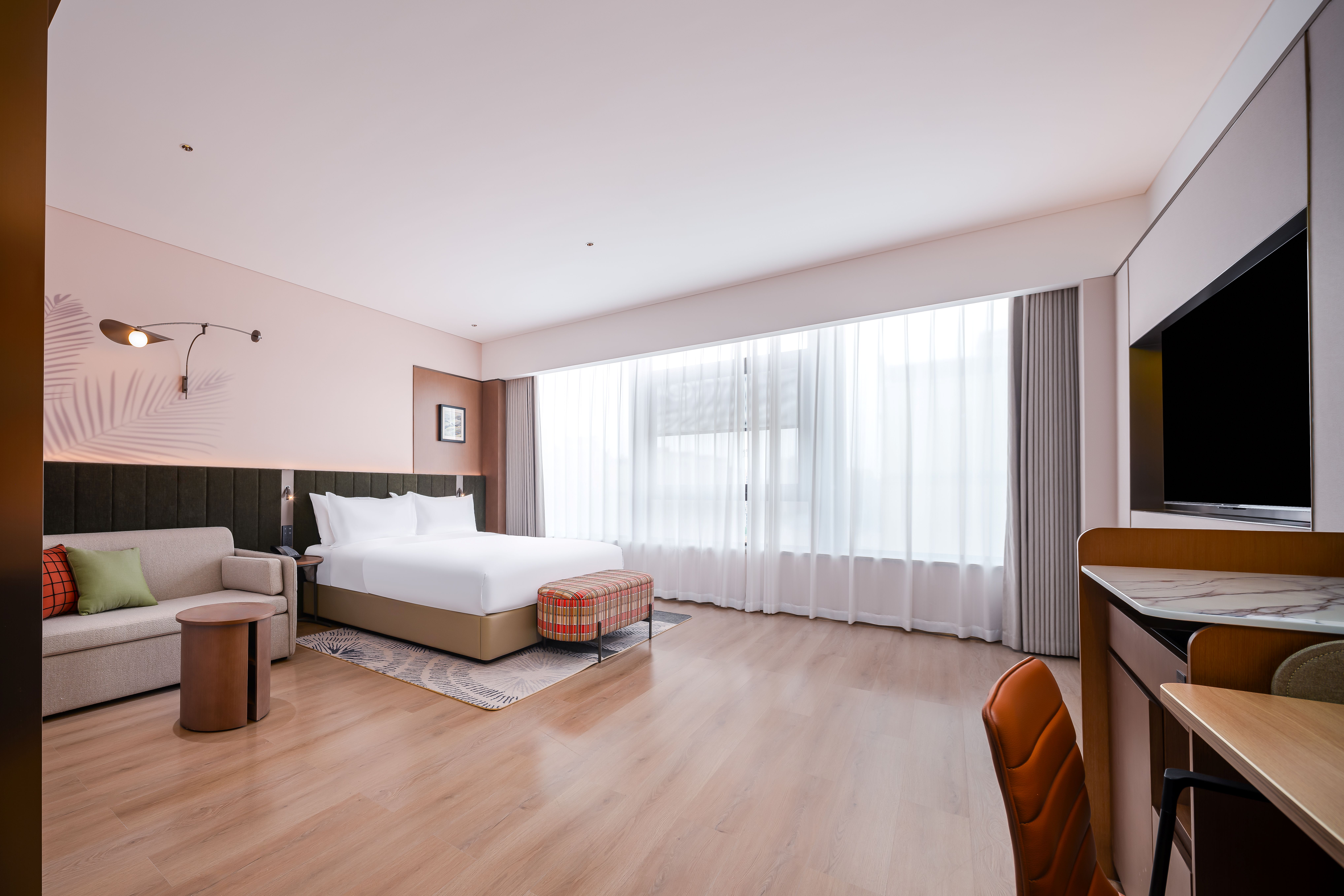 高级大床房【全景落地窗+花园景观+梳化床+升降书桌】