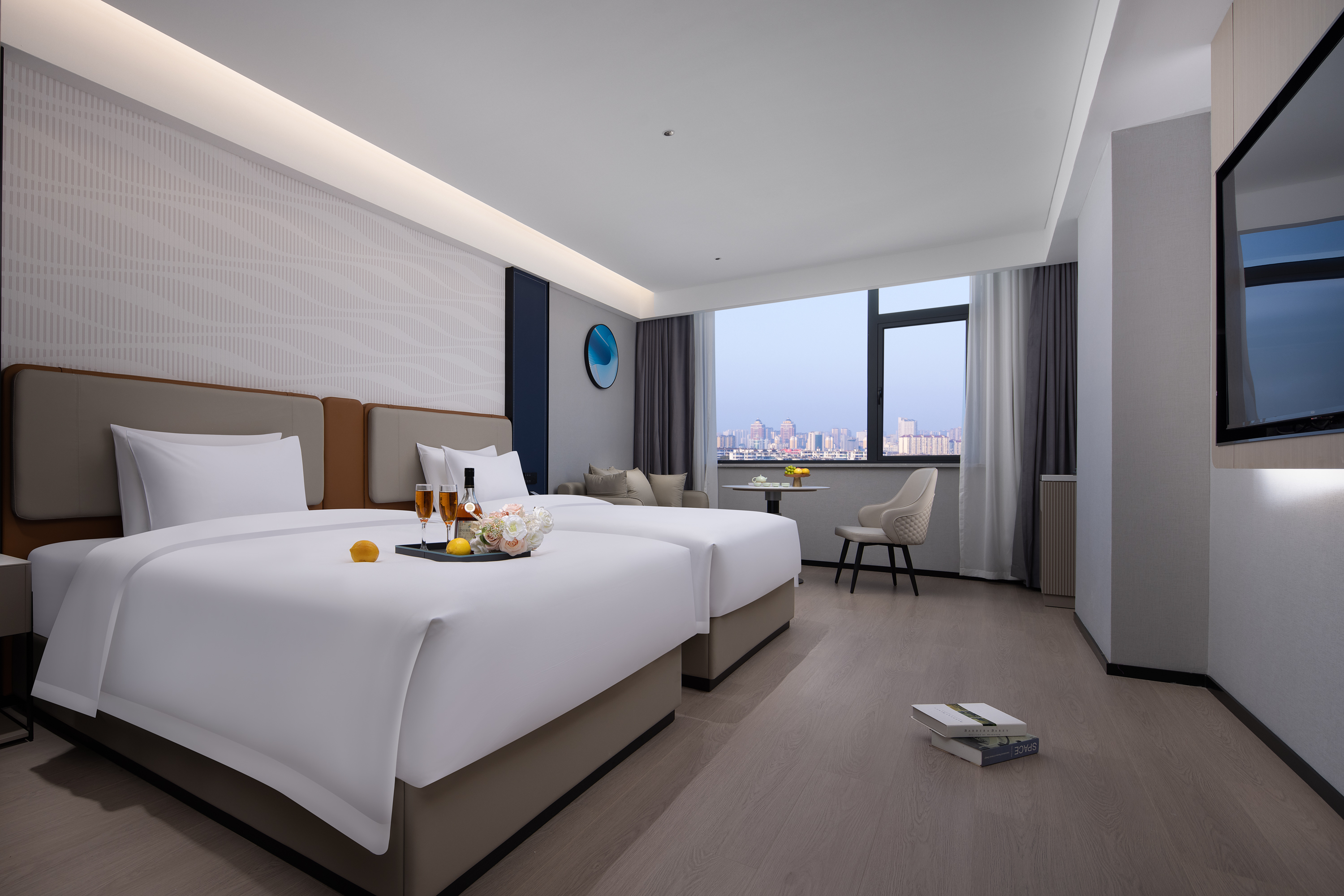 豪华城景双床房(真皮沙发+智能冰箱+梦百合0压床垫)