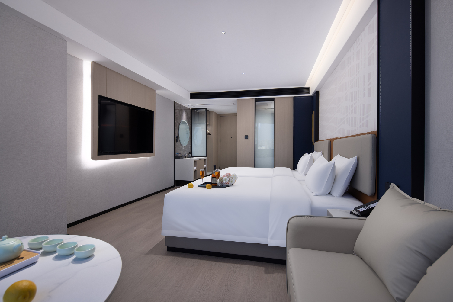 商务套房(深泡浴缸+梦百合人体工学舒眠0压床垫+超柔亲肤布草+迷你冰箱+全屋智能)