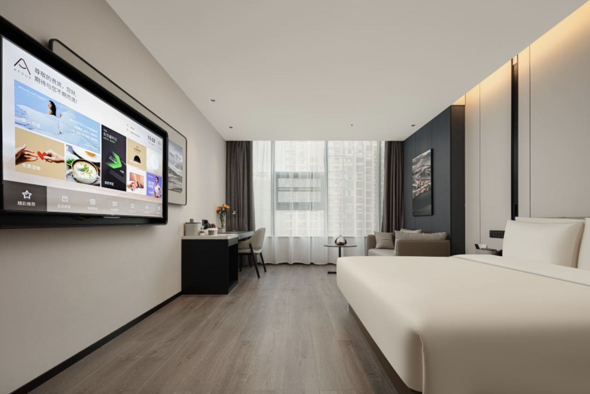 行政城景大床房(小冰箱+水吧+智能客控+手机投屏+裸棉床品+深睡记忆枕)