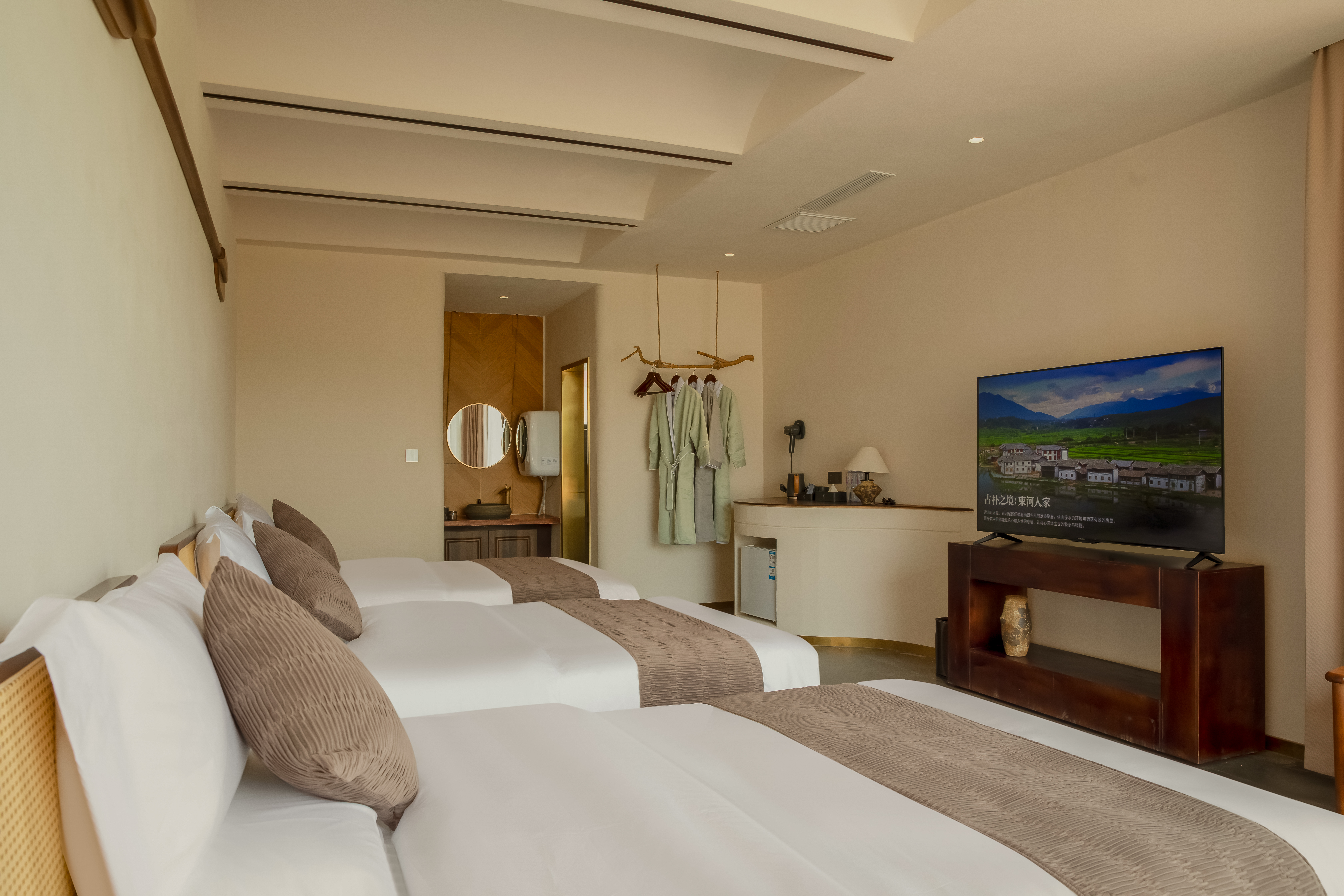 观景夕阳·豪华三人间(记忆床枕+冰箱+洗衣机)