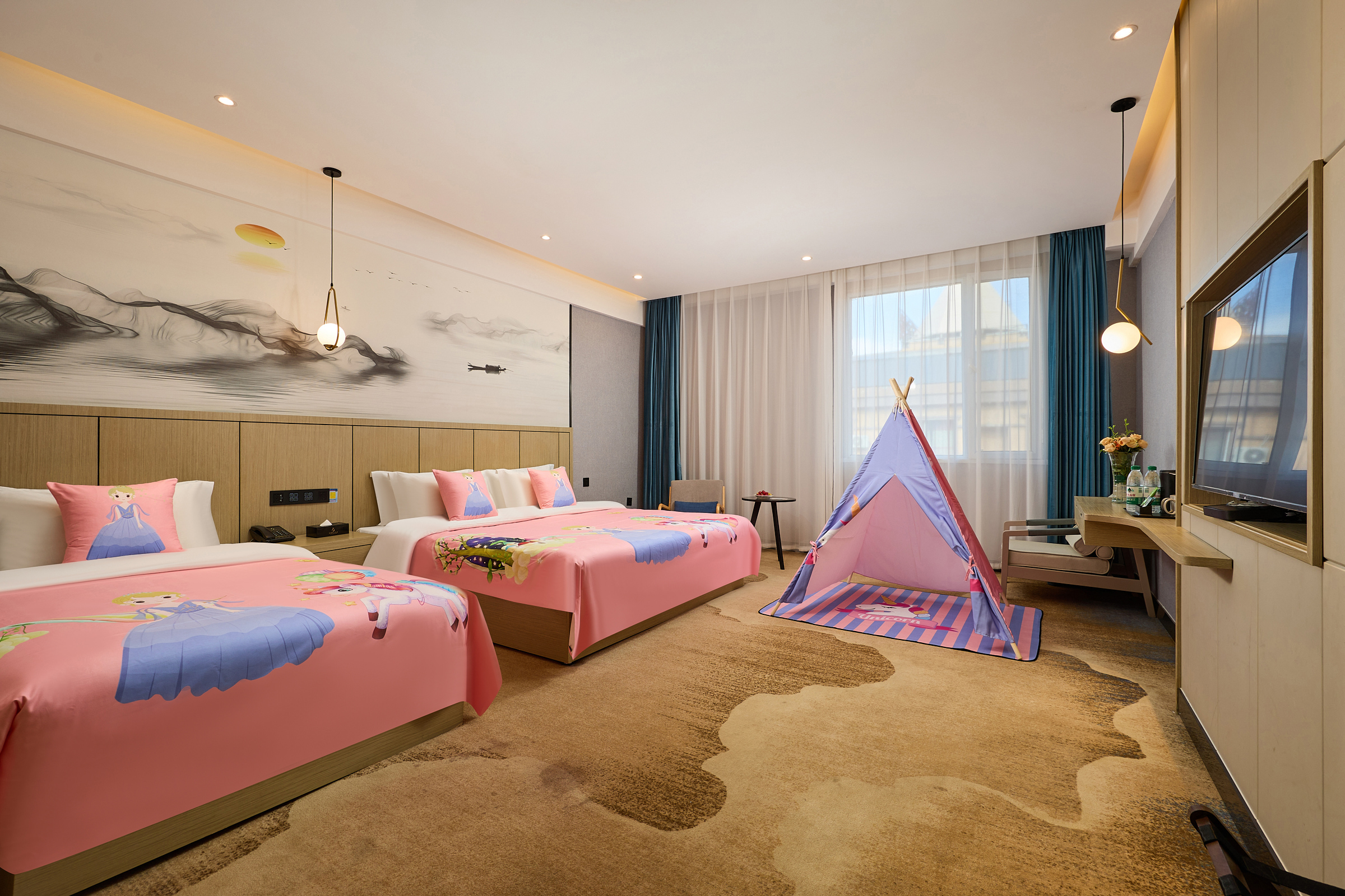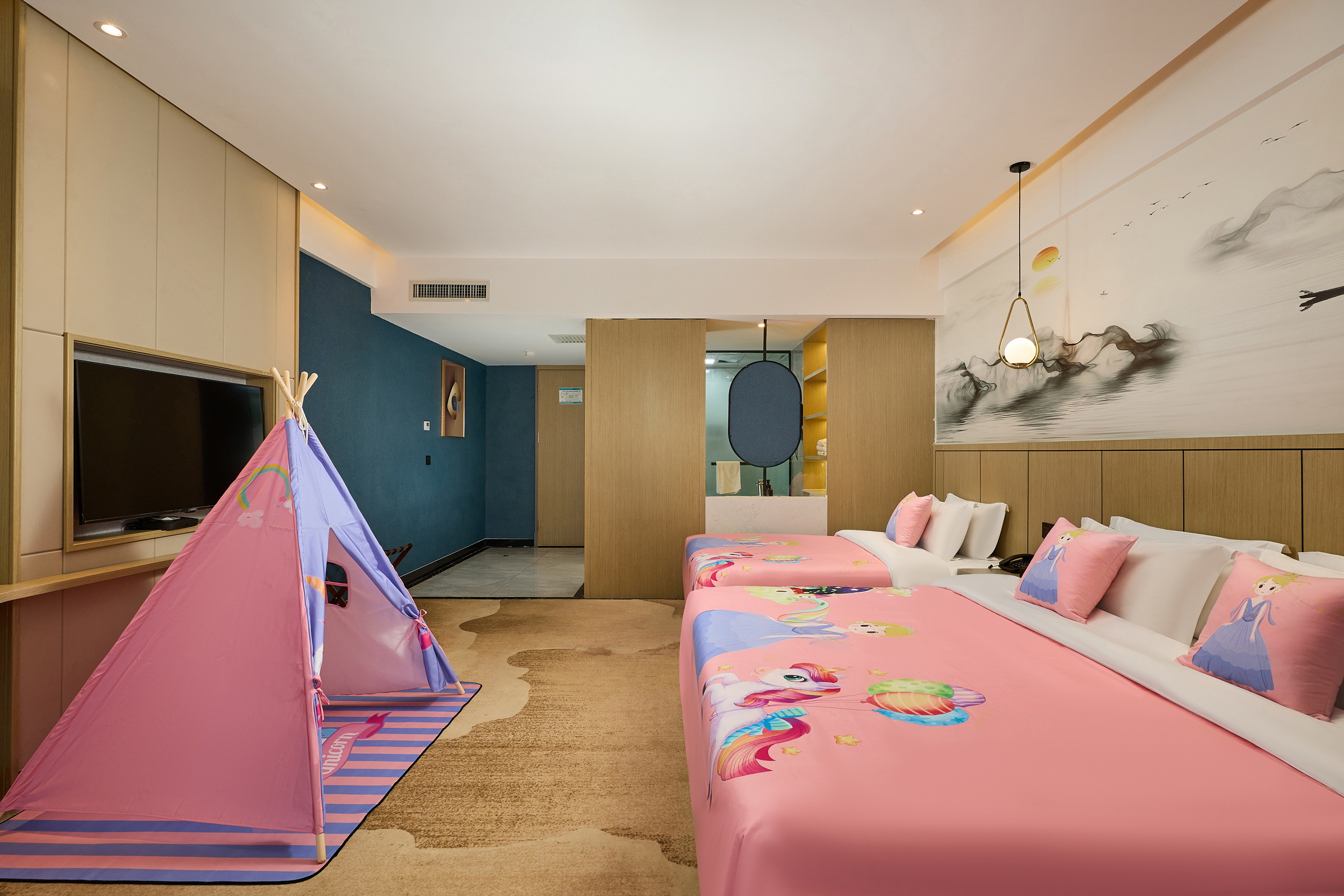 豪華三人間【手機投屏+零壓床墊+親膚床品+超大空間】