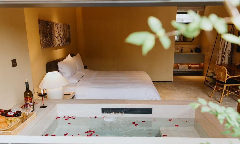 春夏|慵懒大床房「私汤温泉泡池·挑高设计」