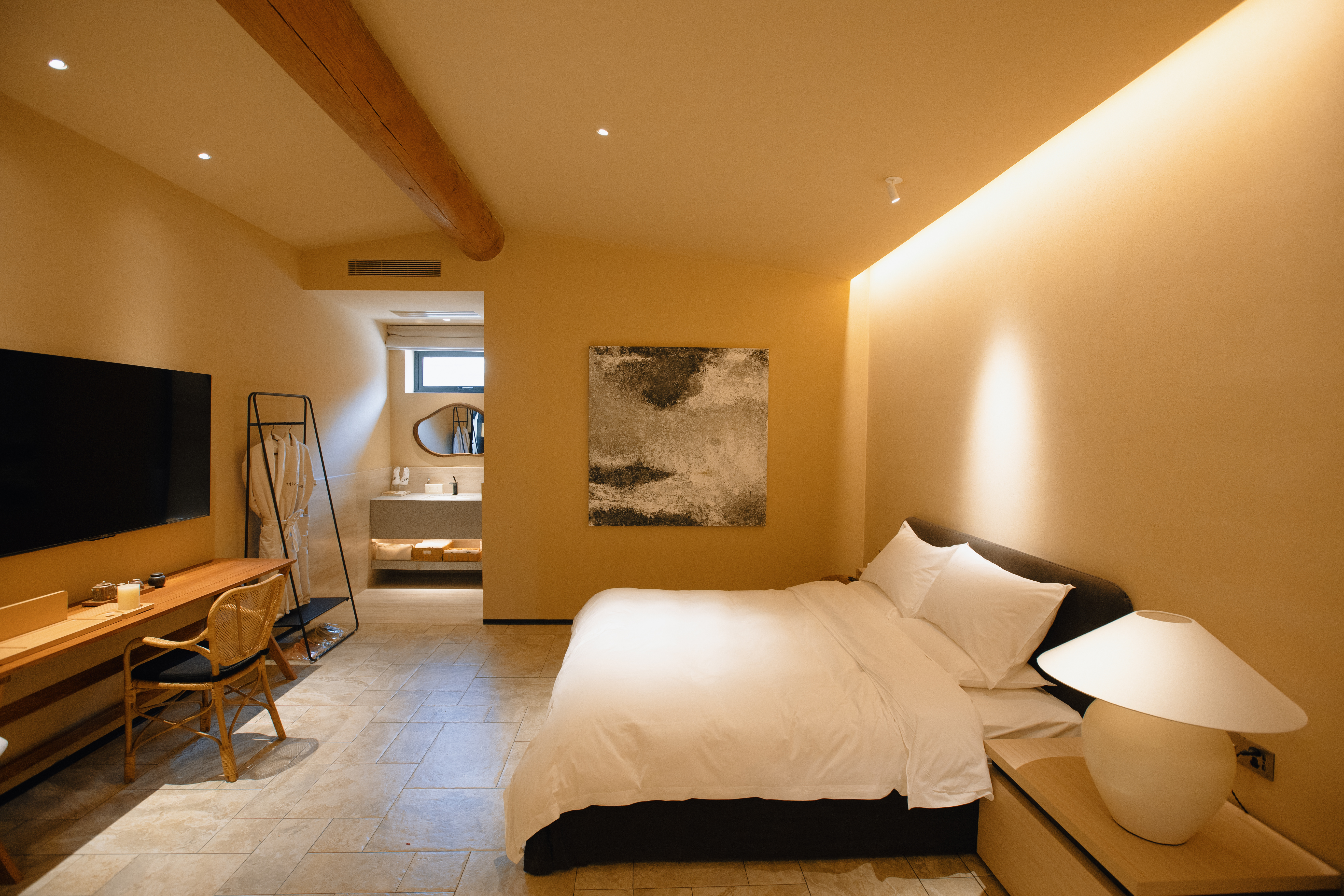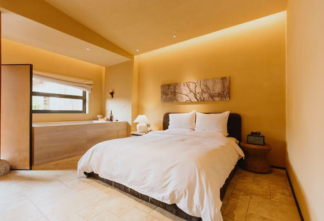 初知|阳光大床房「私汤温泉·挑高设计·马歇尔音响」