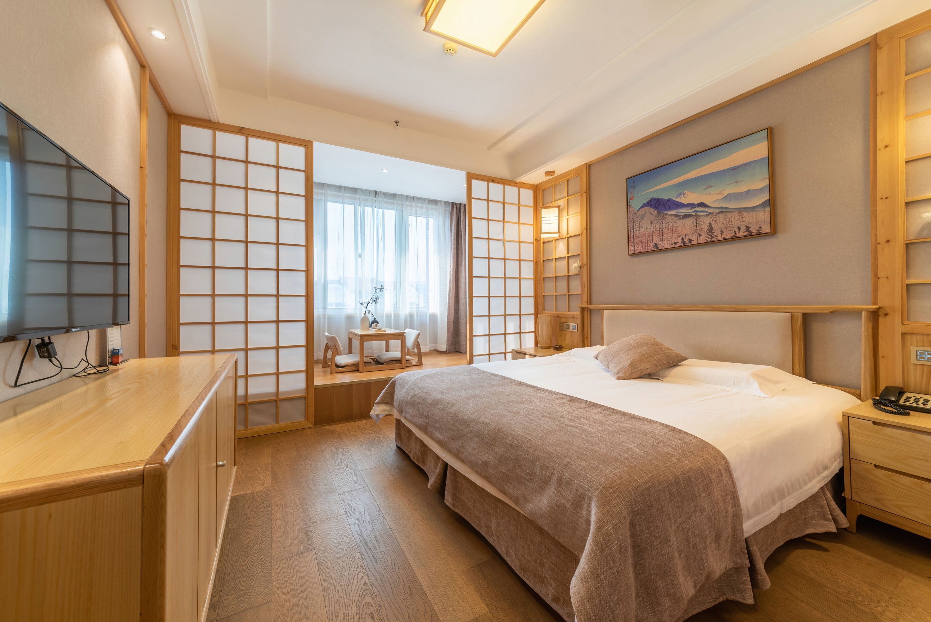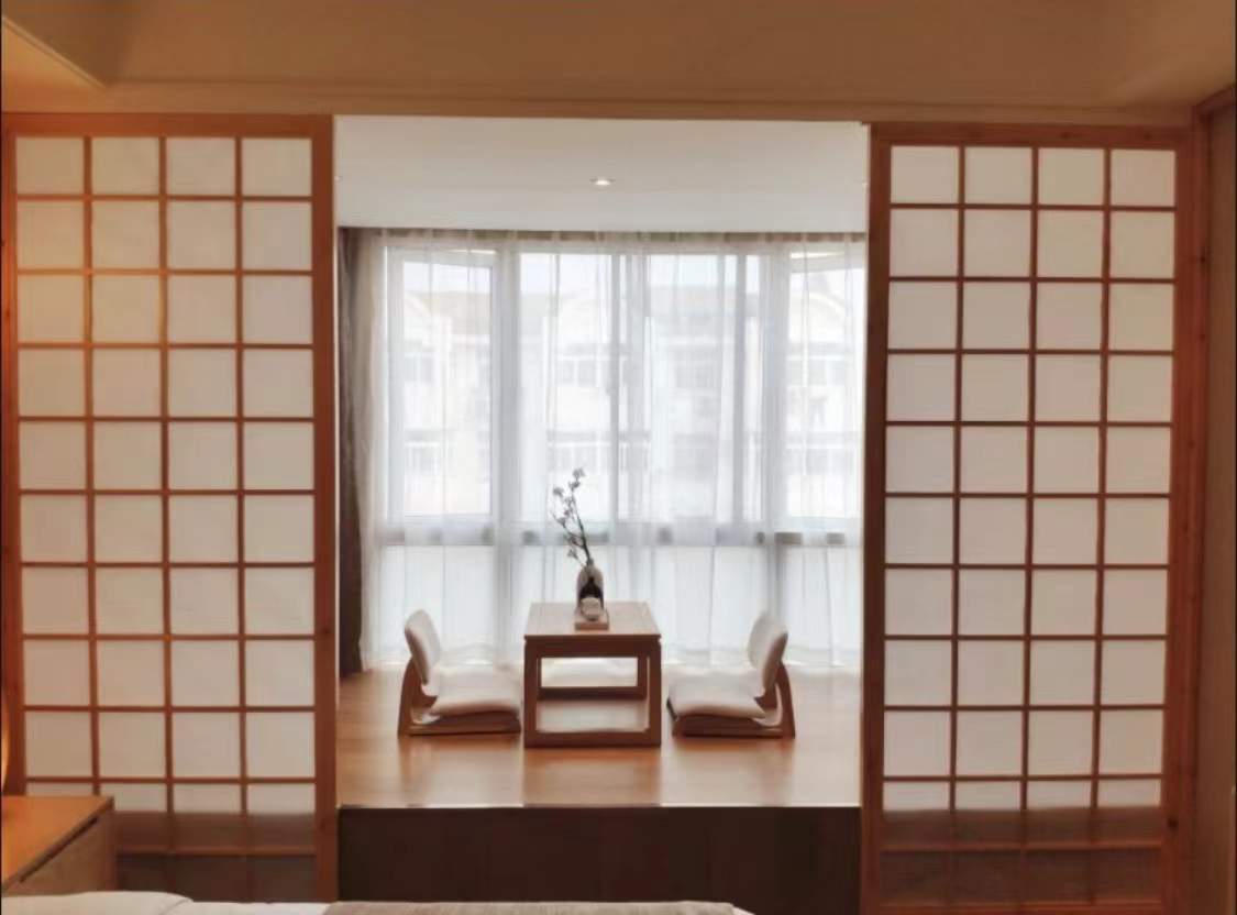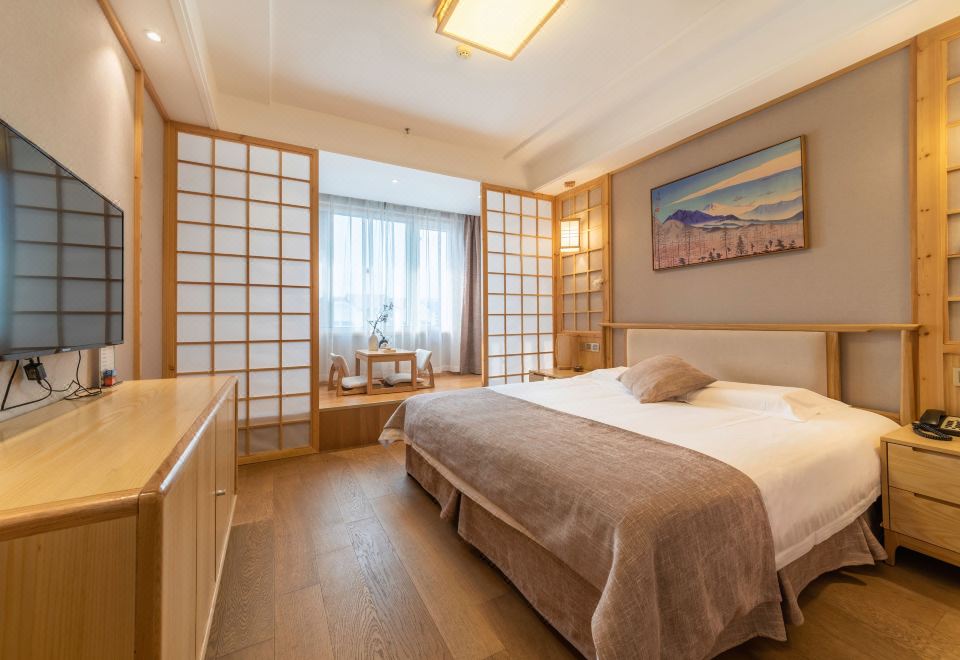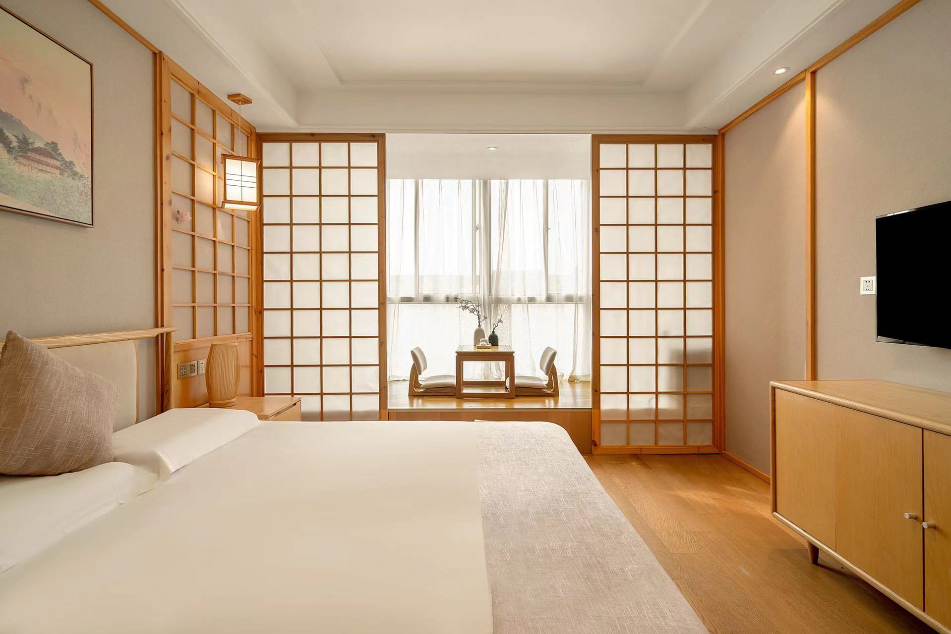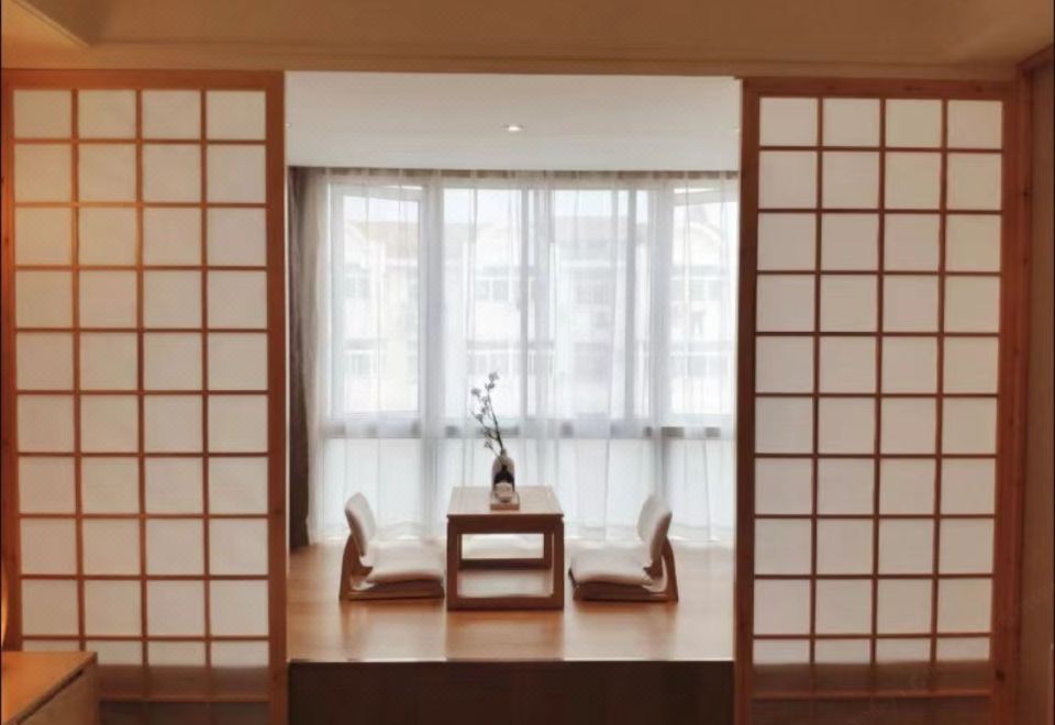 Japanese-Style Extended Stay Double Bed Room (Floor-to-Ceiling Window, Tea Table, Tatami Lounge)
