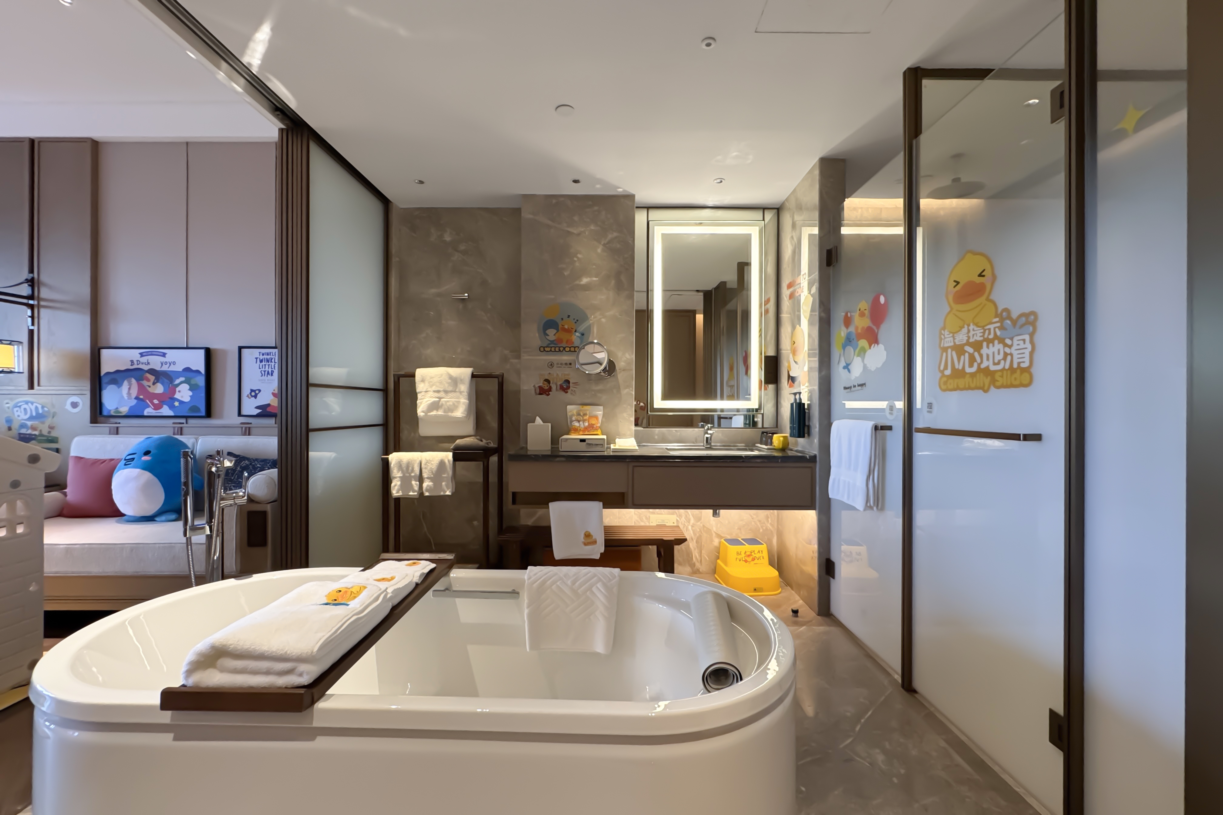 小黄鸭主题 亲子房 双床