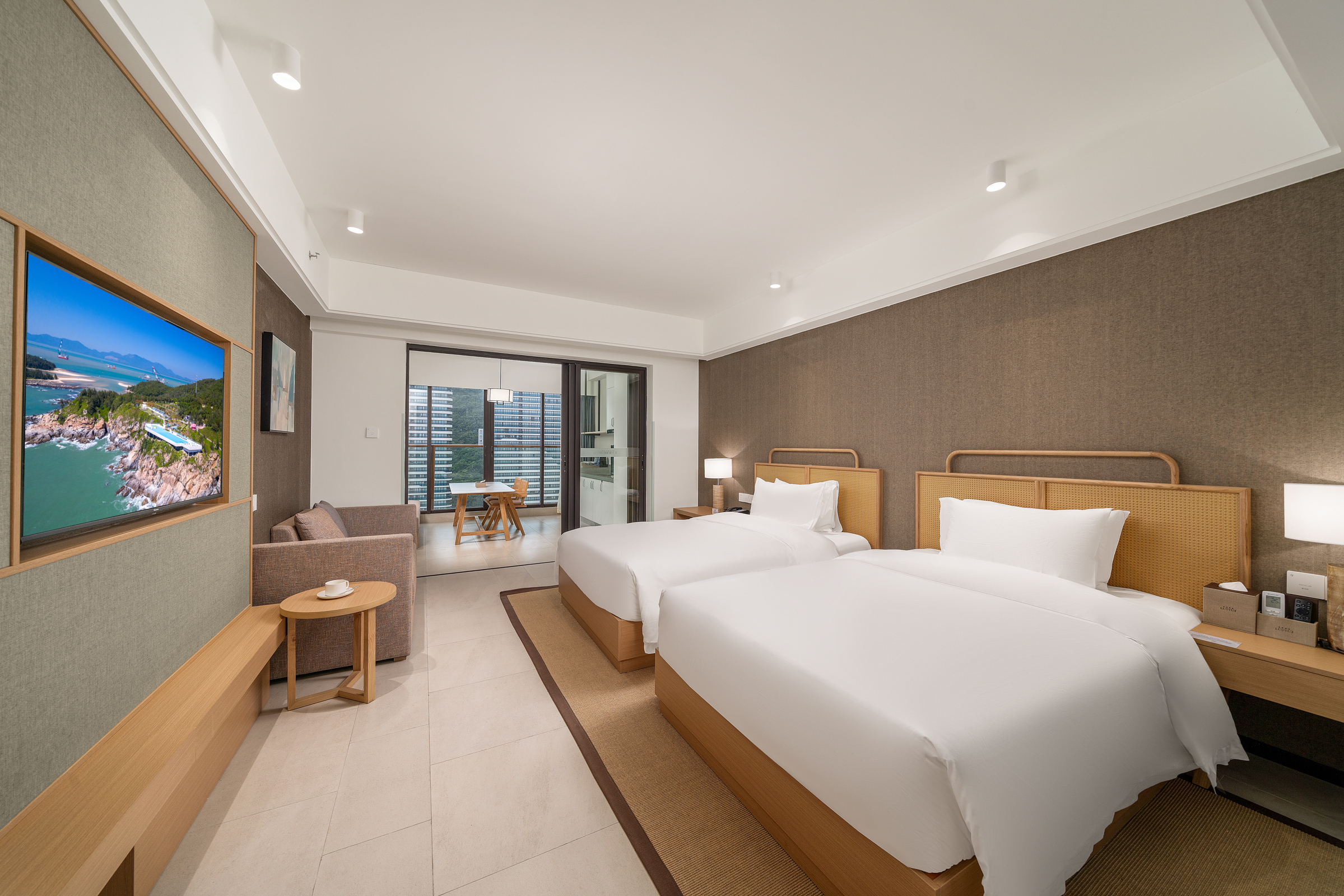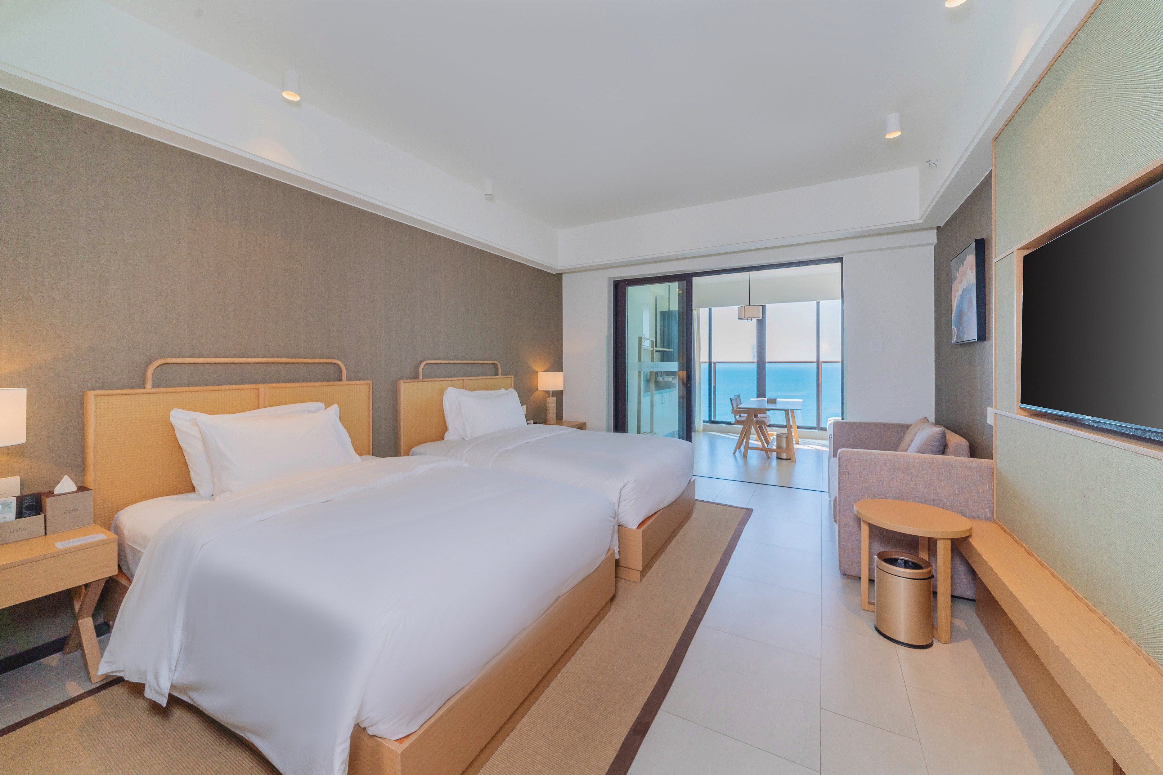 Deluxe Haiyue Sea-View 2-Bedroom 1-Living Room (Three Beds)