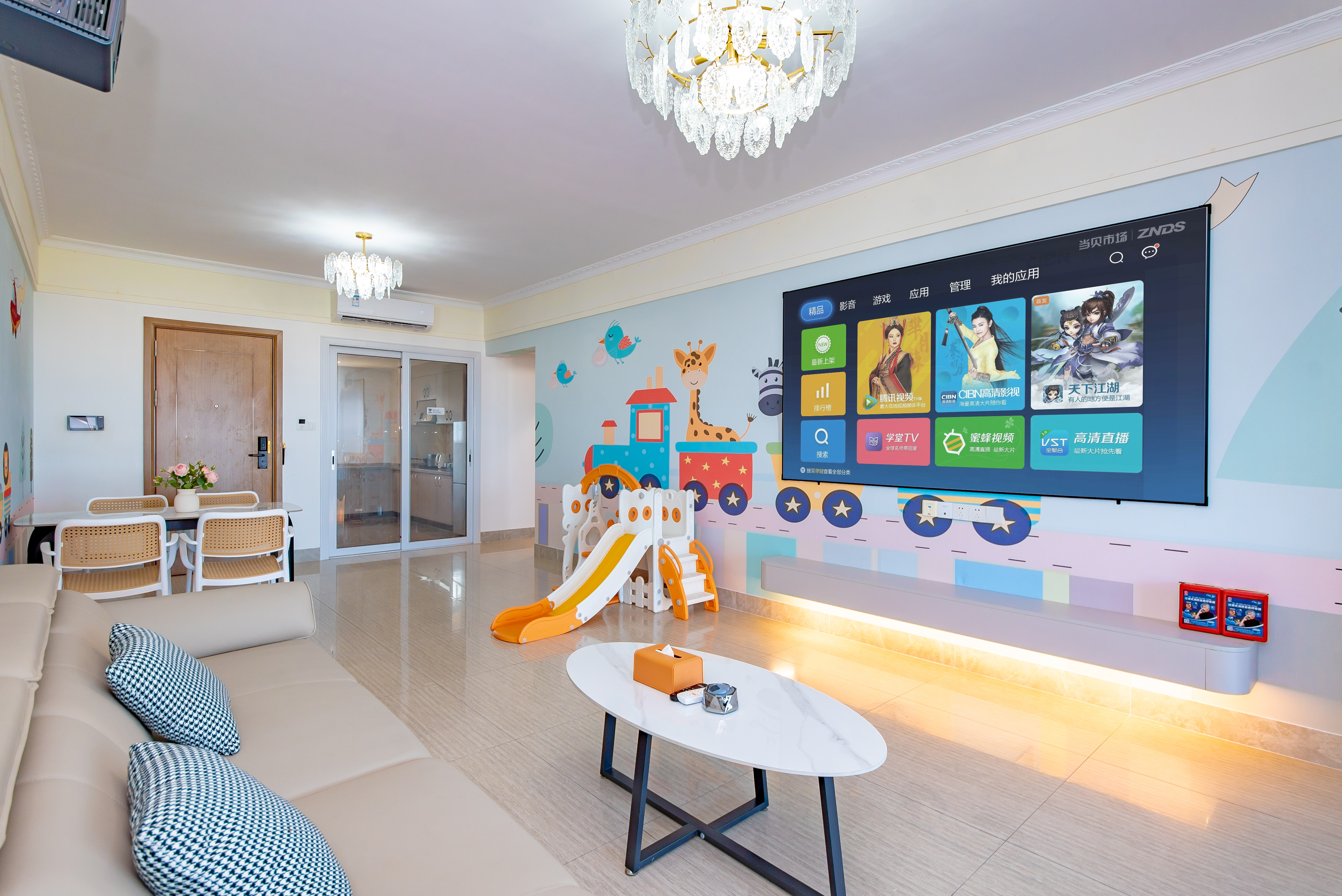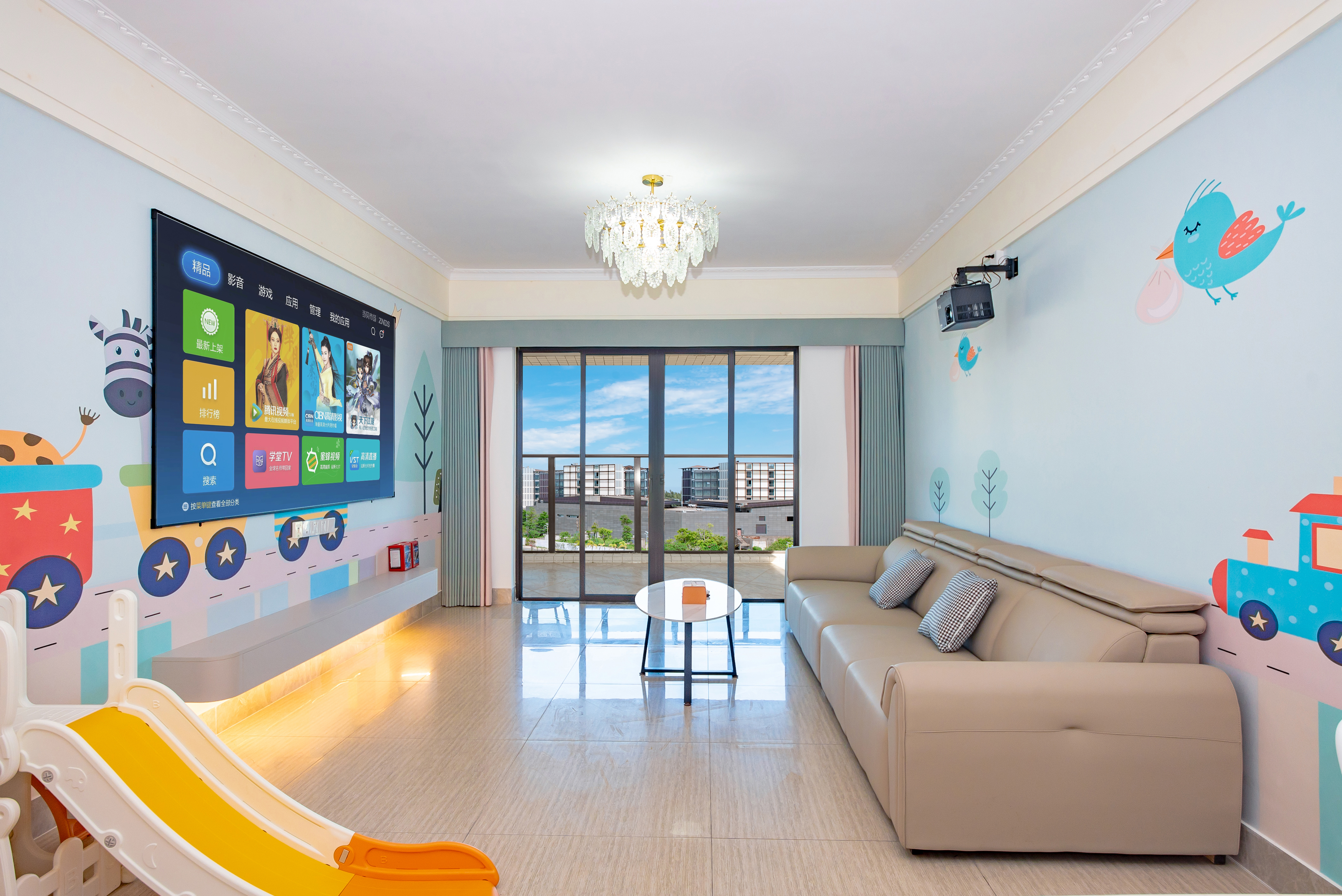 舒适投影三房五床(超大观景阳台+100寸巨幕投影)