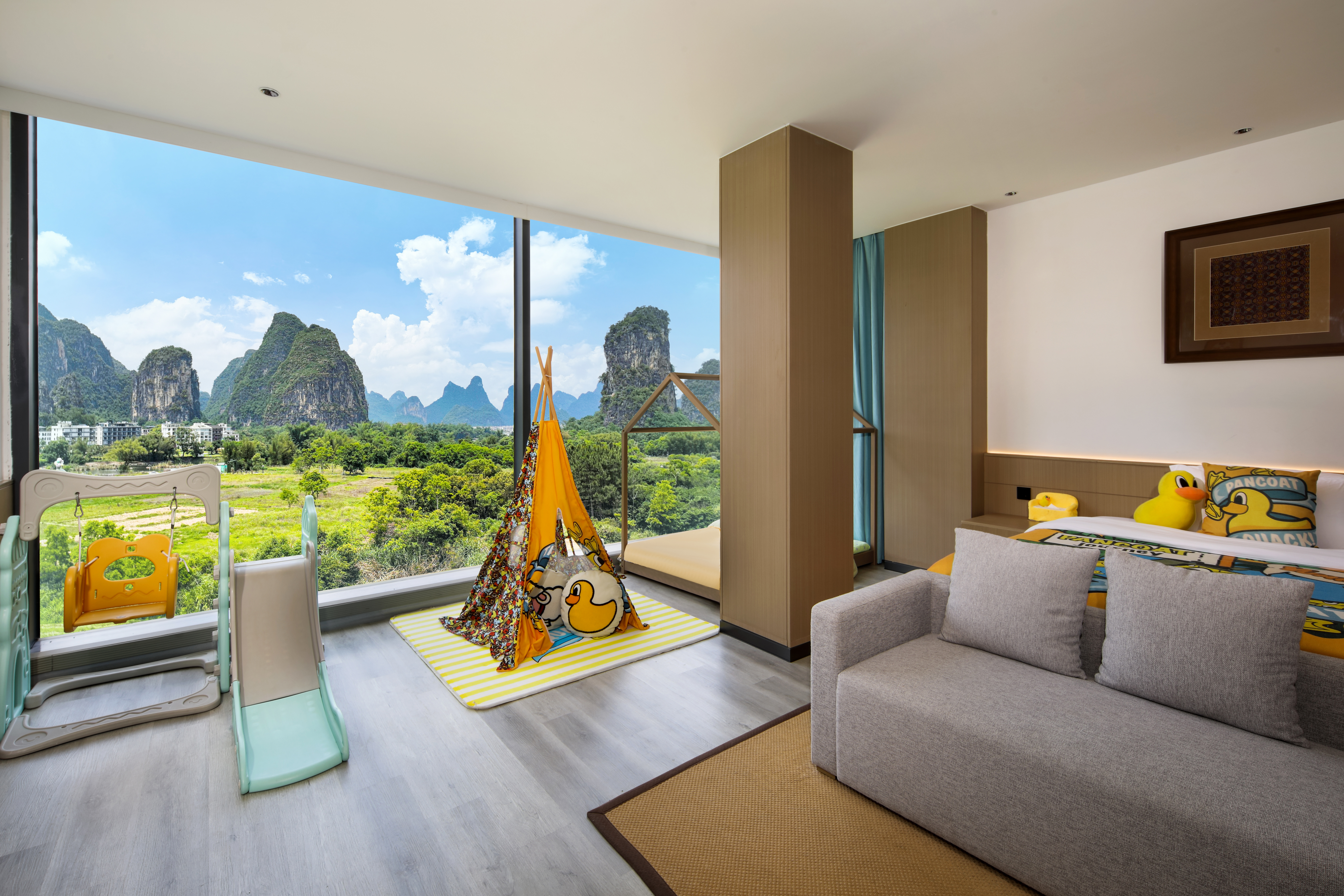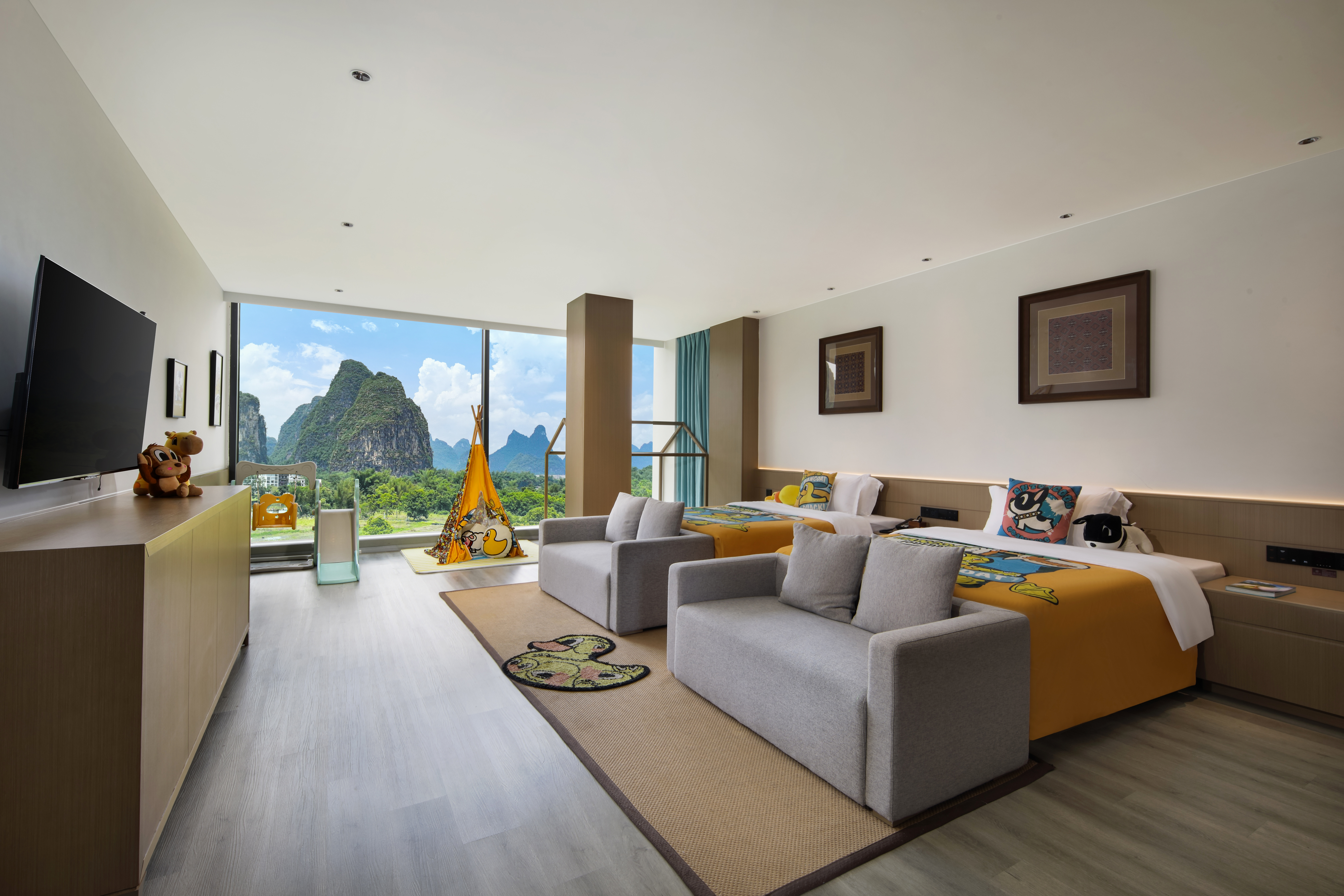 小黄鸭亲子双床房(全落地玻璃+小童帐篷+小童滑梯)