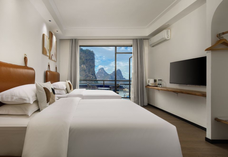 悦山阳台双床房(观景阳台+山景与城景的交融)