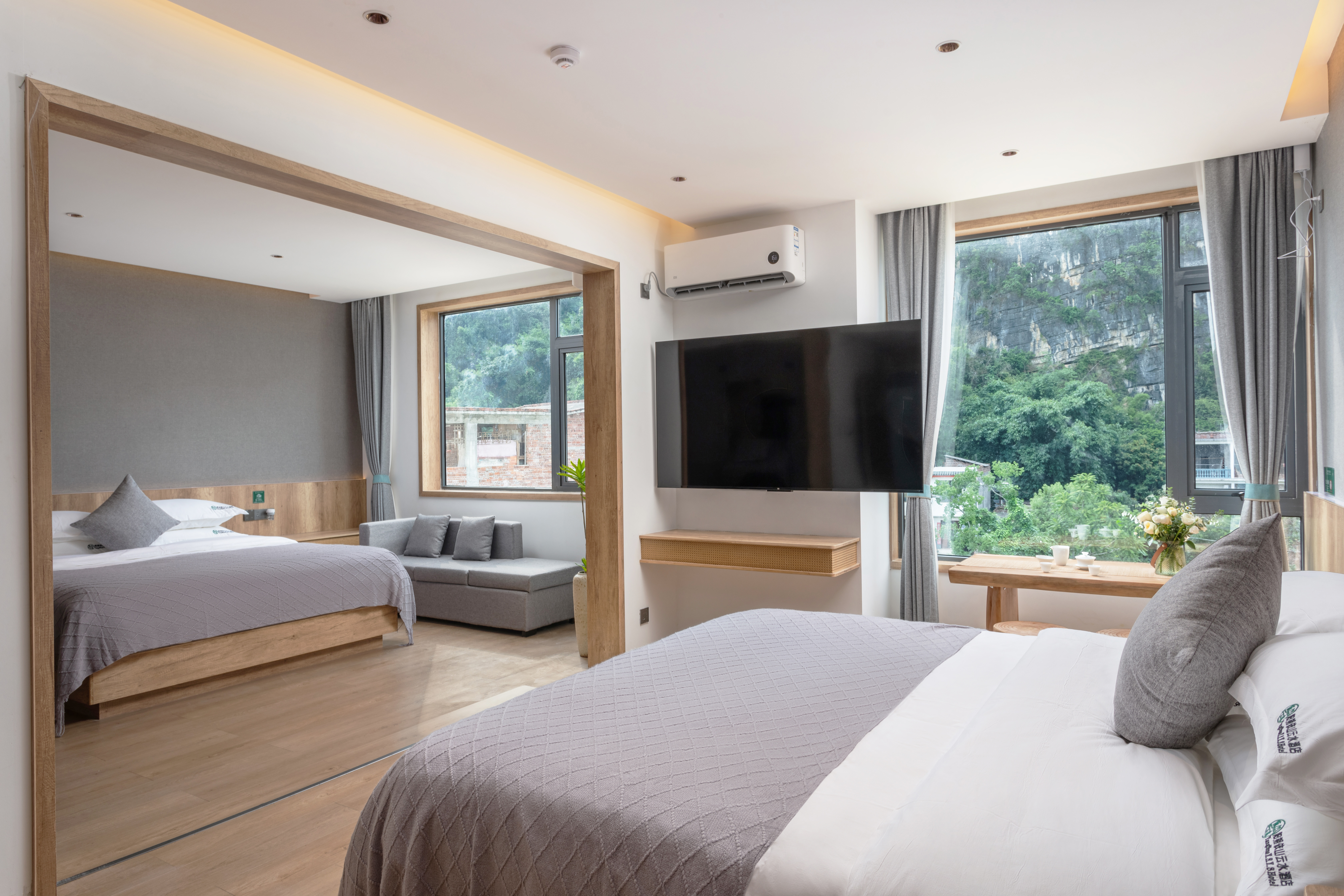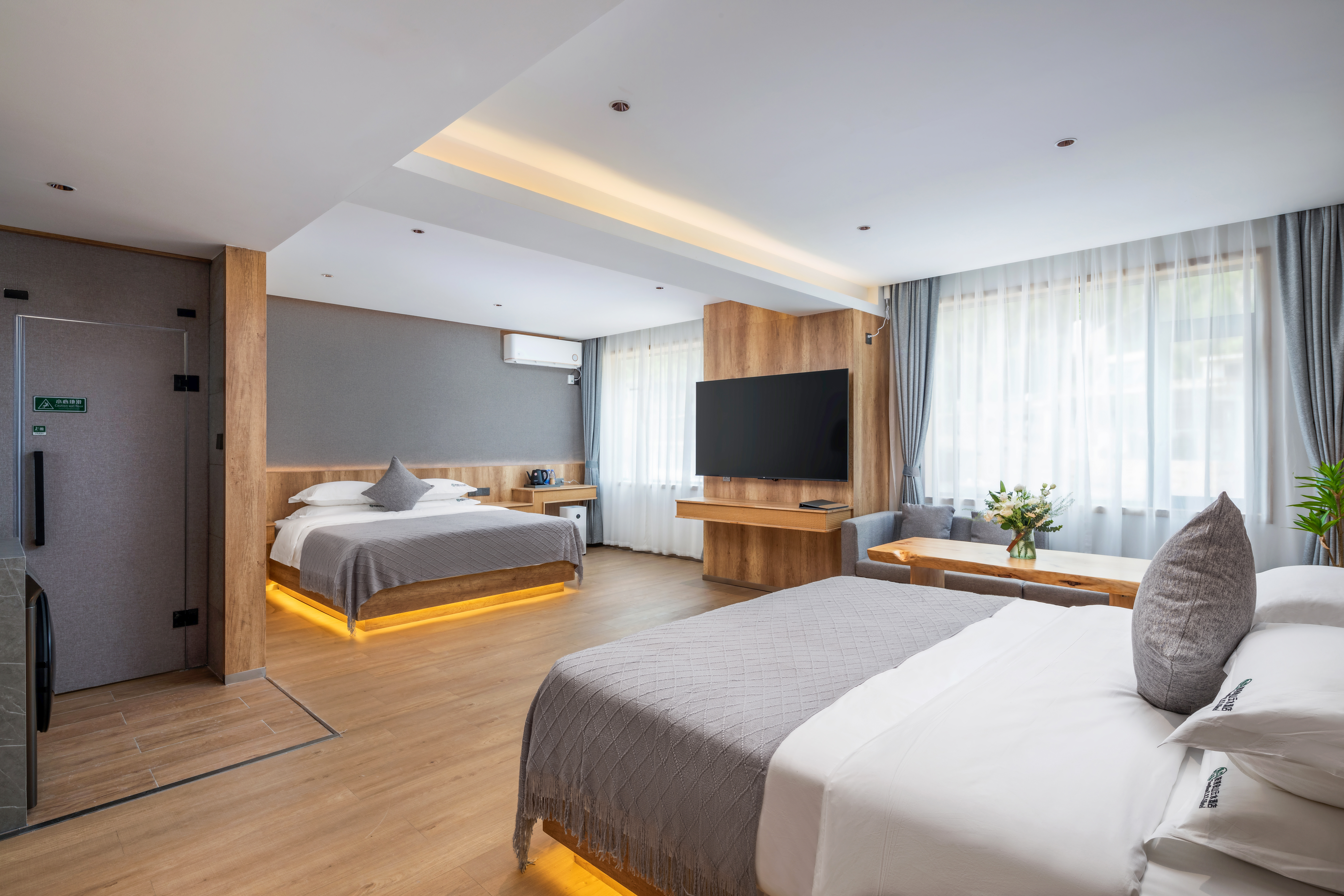 云水观景双床套房-独立小米洗衣机-空气净化-冰箱